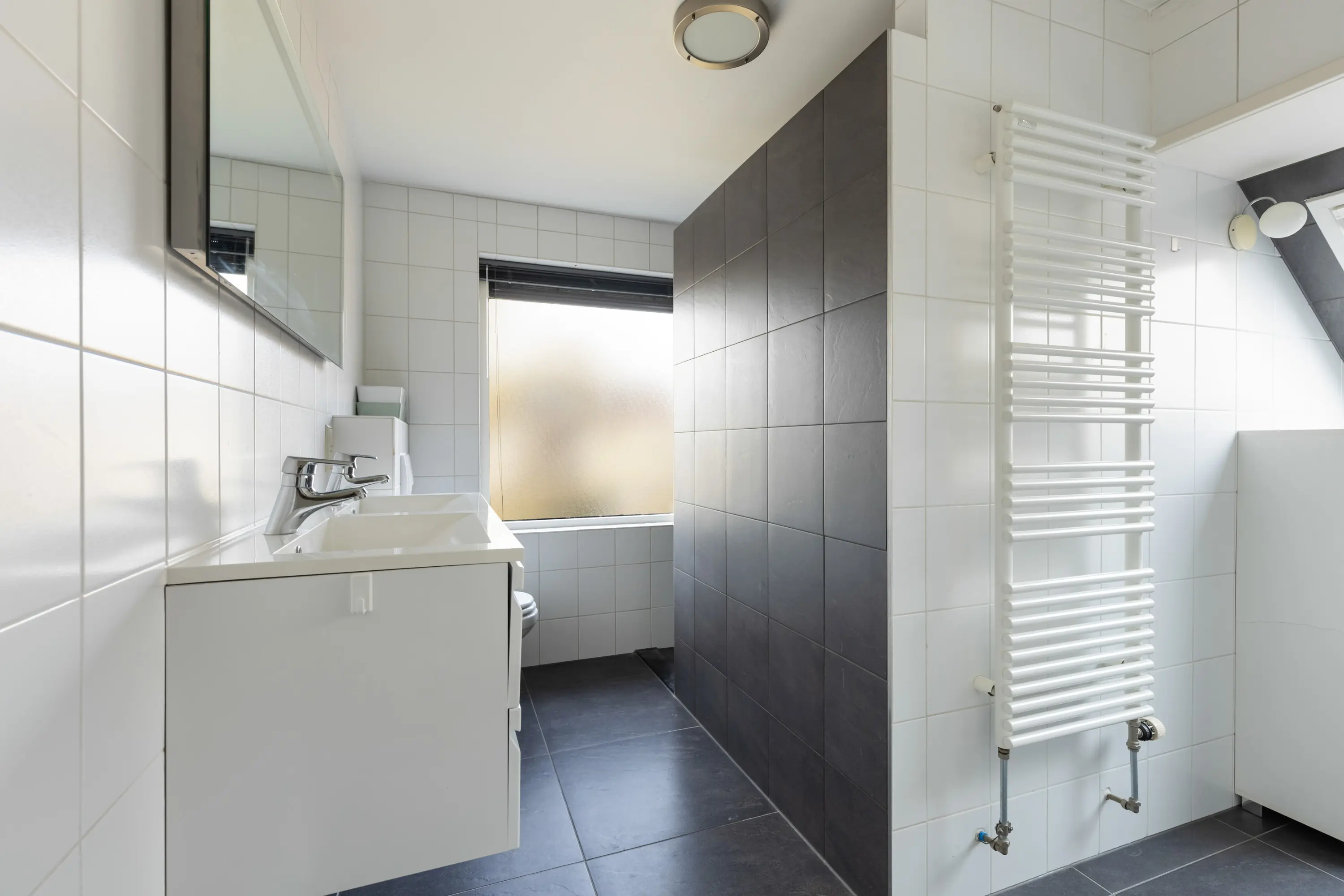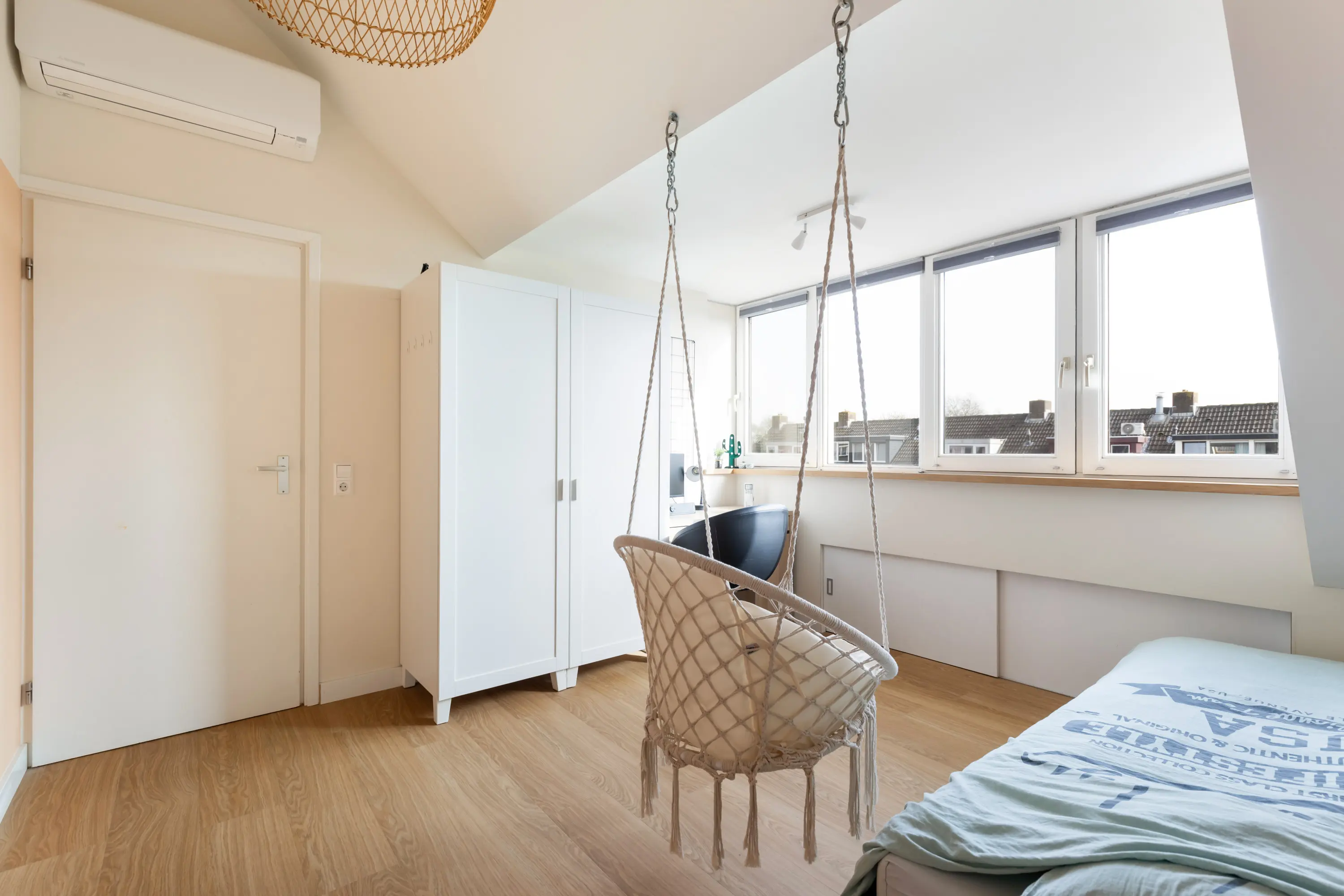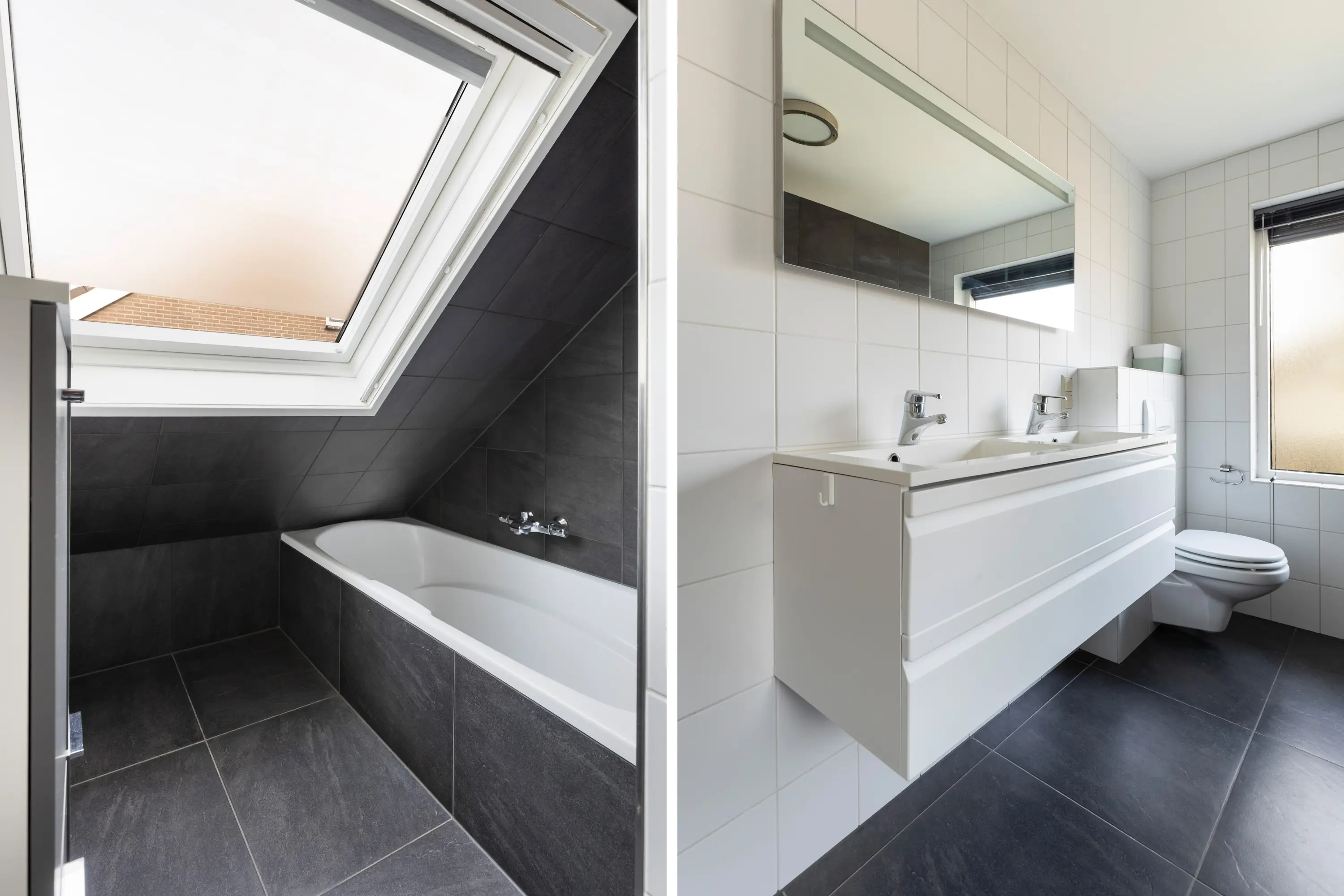 Op de geheel vernieuwde tweede verdieping bevinden zich twee slaapkamers met airconditioning en een dakkapel met kunststof kozijnen (bouwjaar 2023). In de voorste slaapkamer is tevens de opstelplaats van de CV-ketel (2017) netjes weggewerkt. Deze verdieping biedt verrassend veel extra ruimte en beschikt over een tweede badkamer (2024) met regendouche, dubbele wastafel en een derde toilet. Daarnaast is er een aparte wasruimte met aansluitingen voor een wasmachine en droger en een raam voor natuurlijke ventilatie.