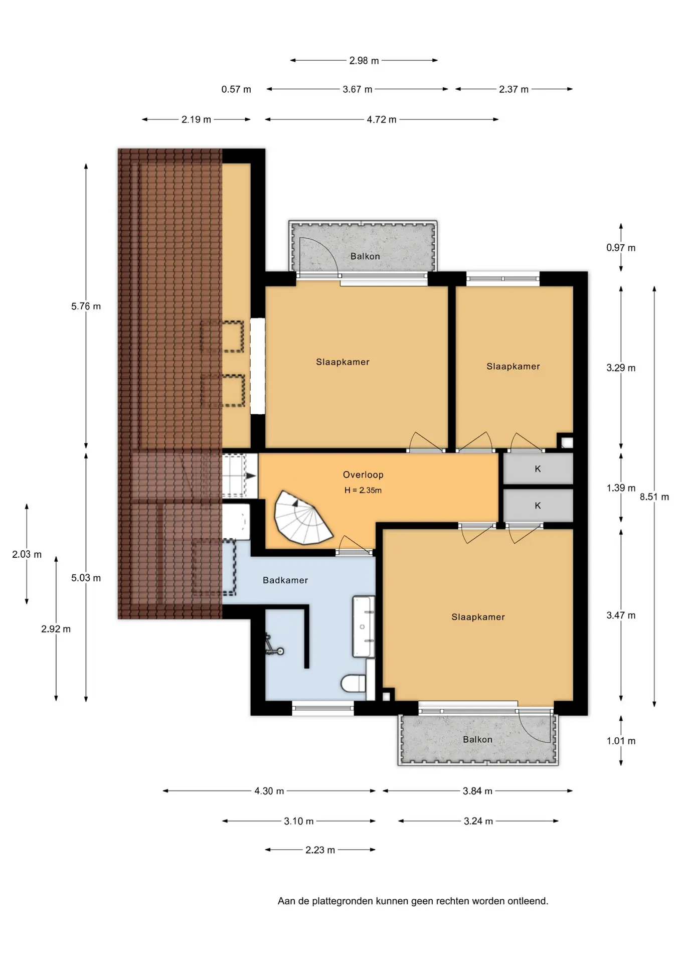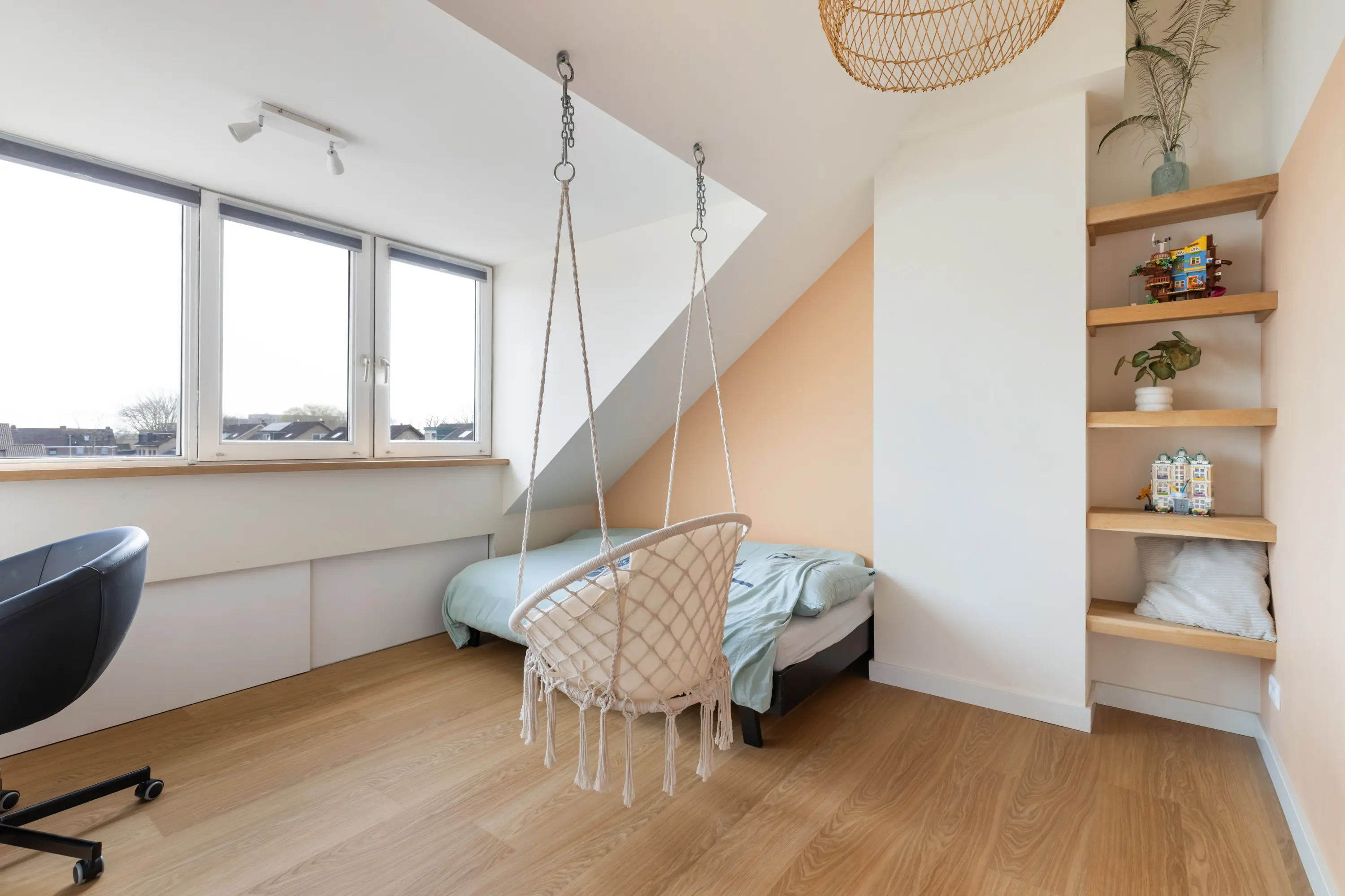 Op de eerste verdieping bevinden zich drie ruime slaapkamers. Twee slaapkamers hebben toegang tot een balkon en twee kamers beschikken over een vaste kast. De gehele verdieping is afgewerkt met een moderne click-PVC vloer.