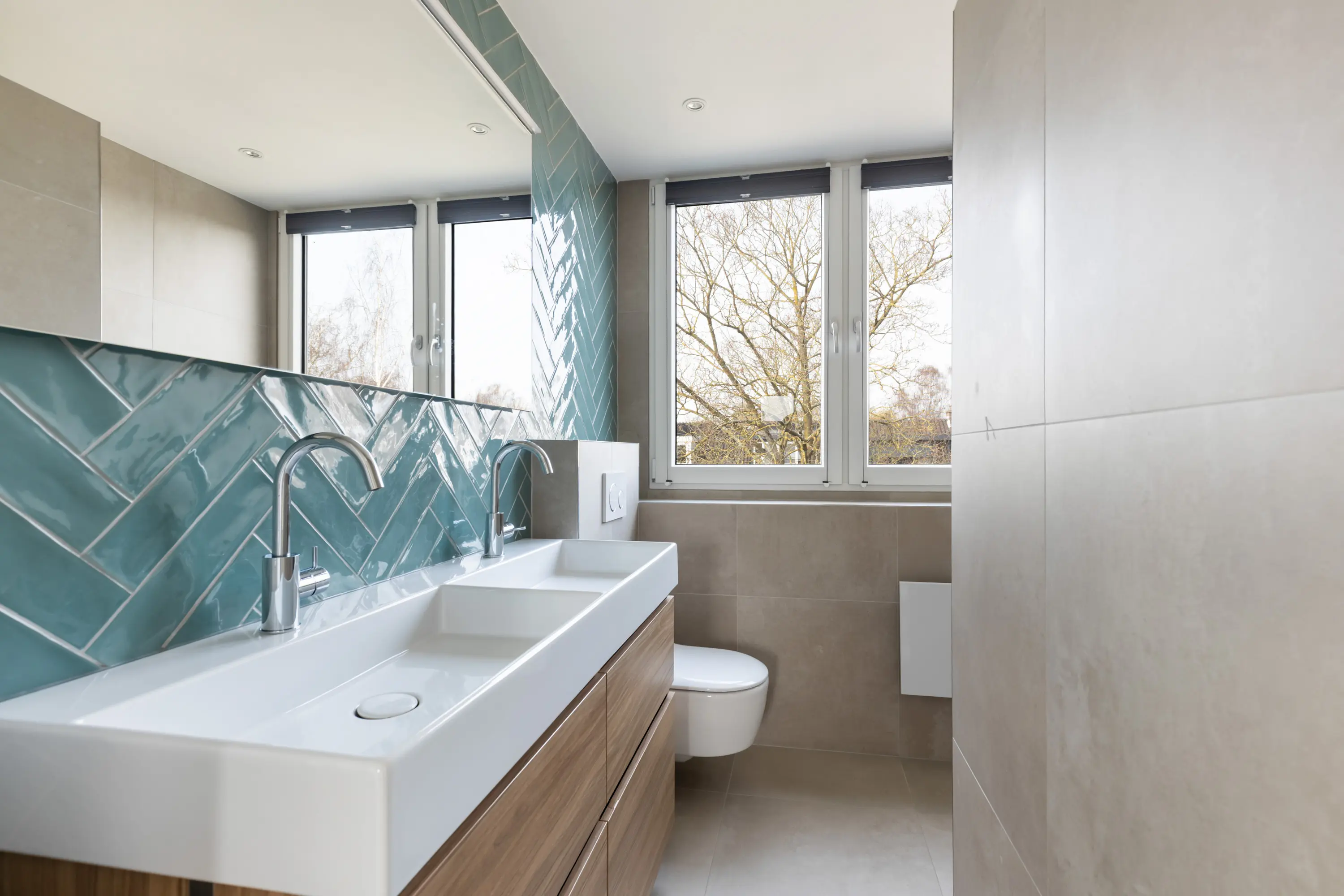 De ruime badkamer is compleet uitgevoerd met een dubbele douche, ligbad, tweede toilet, dubbele wastafel, handdoekradiator en een tweede aansluiting voor een wasmachine.