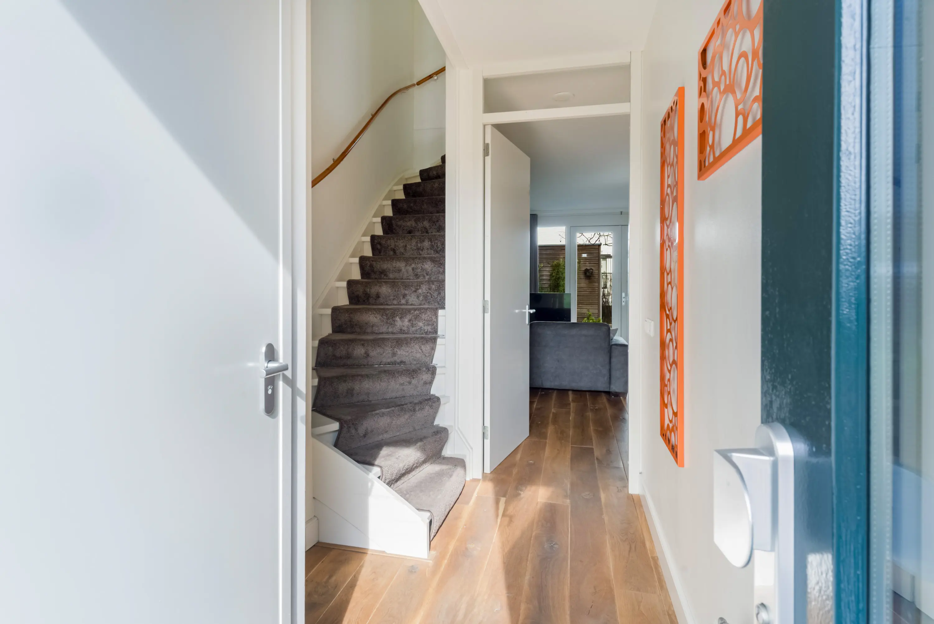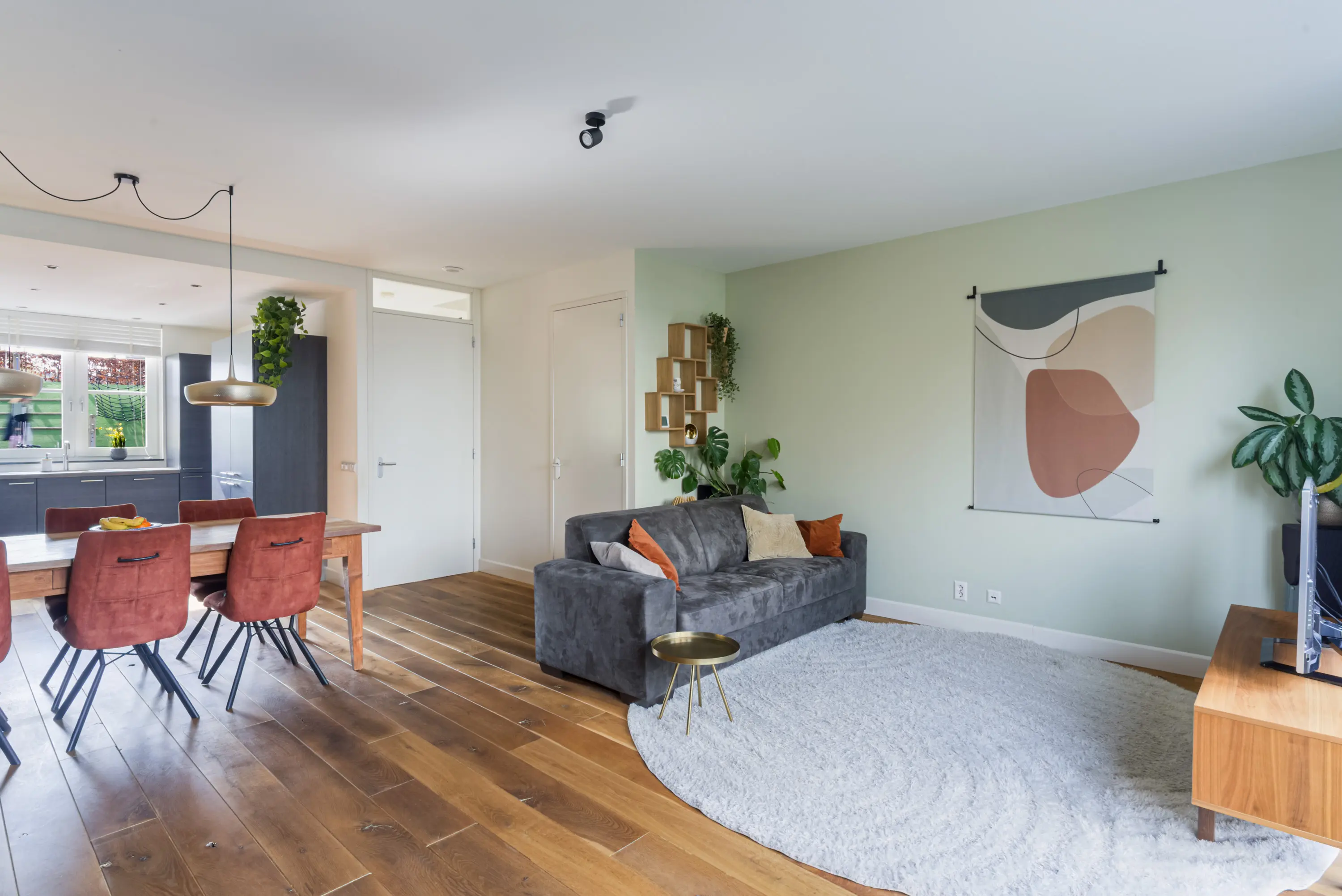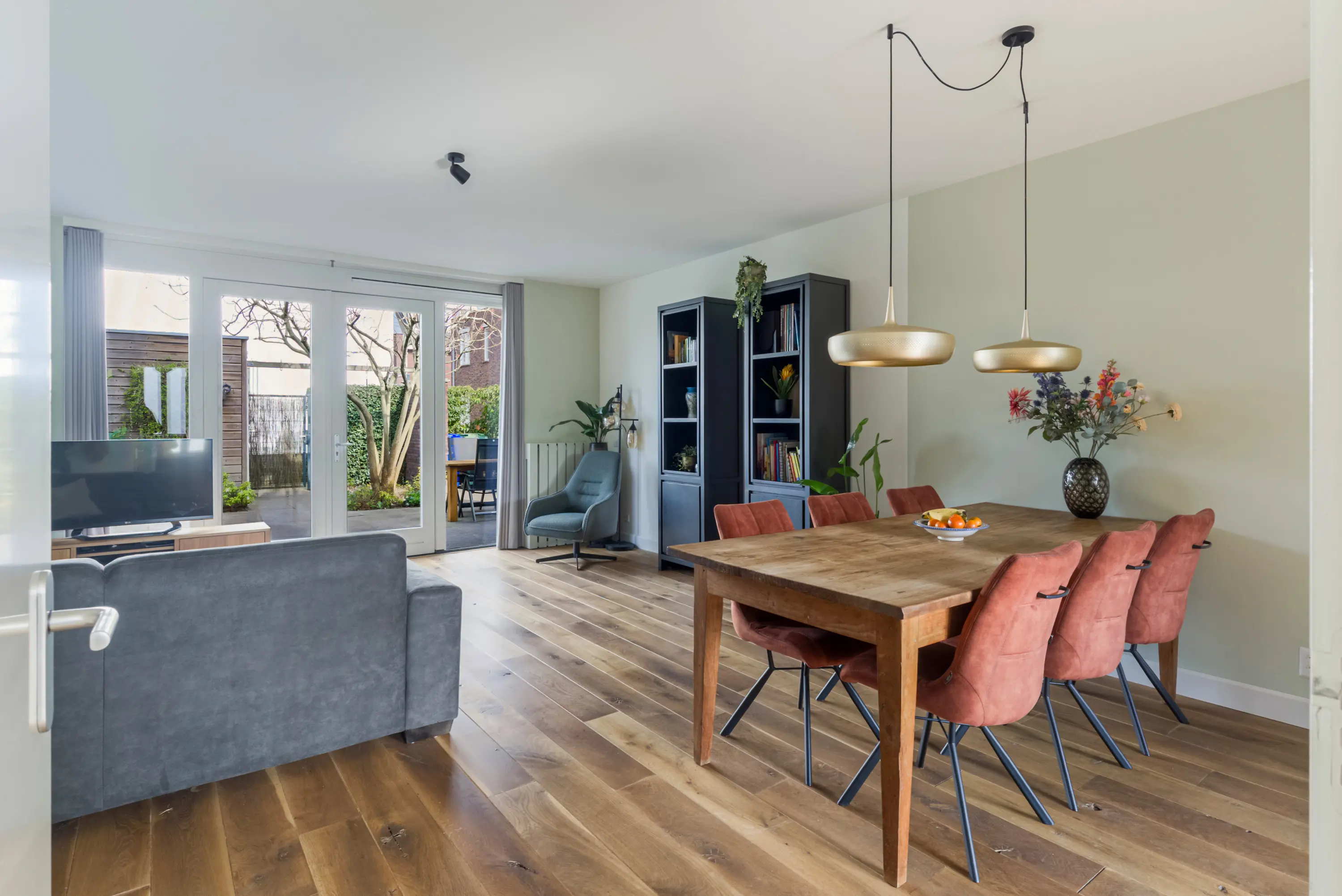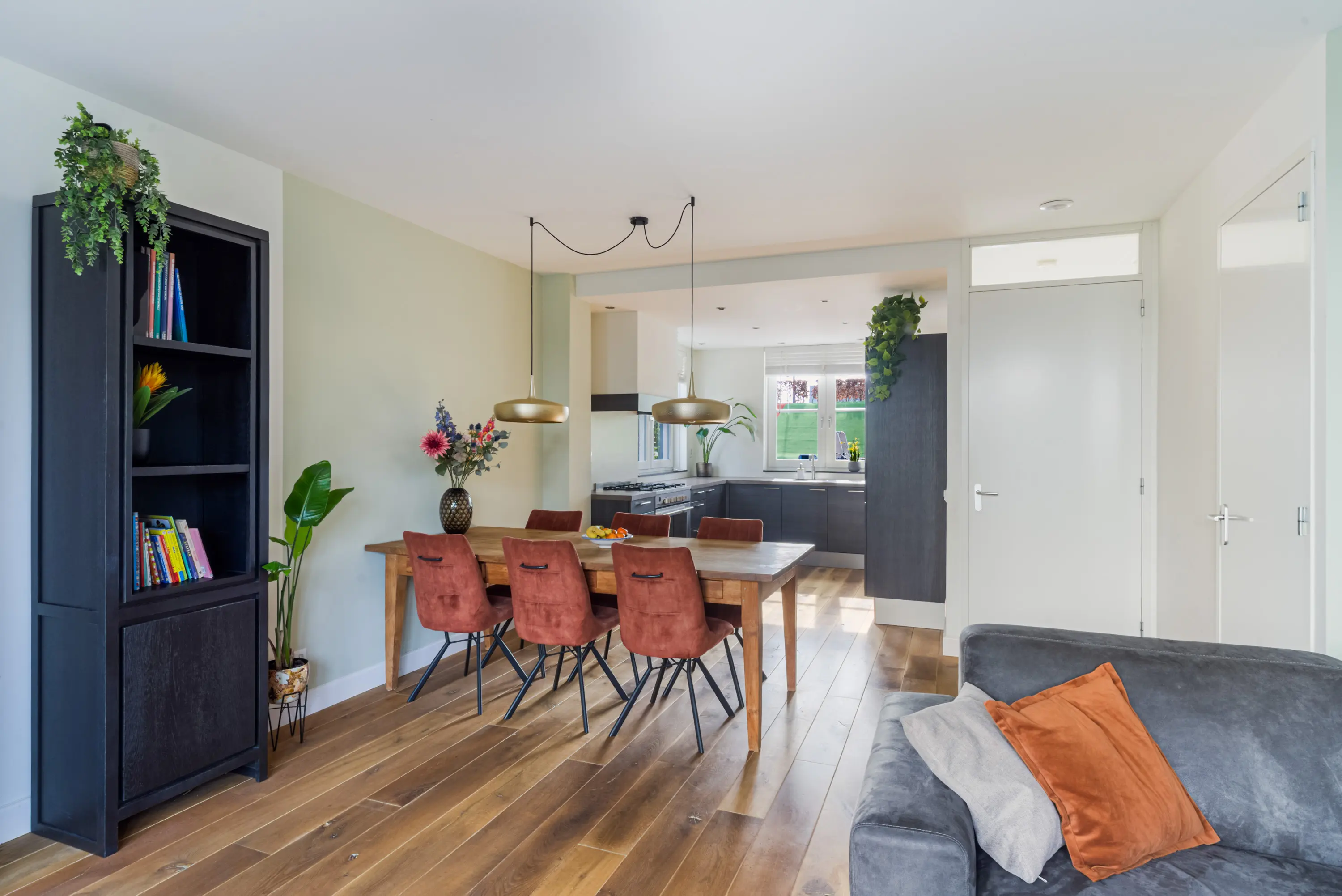 De gehele begane grond is voorzien van een stijlvolle eikenhoutenvloer.