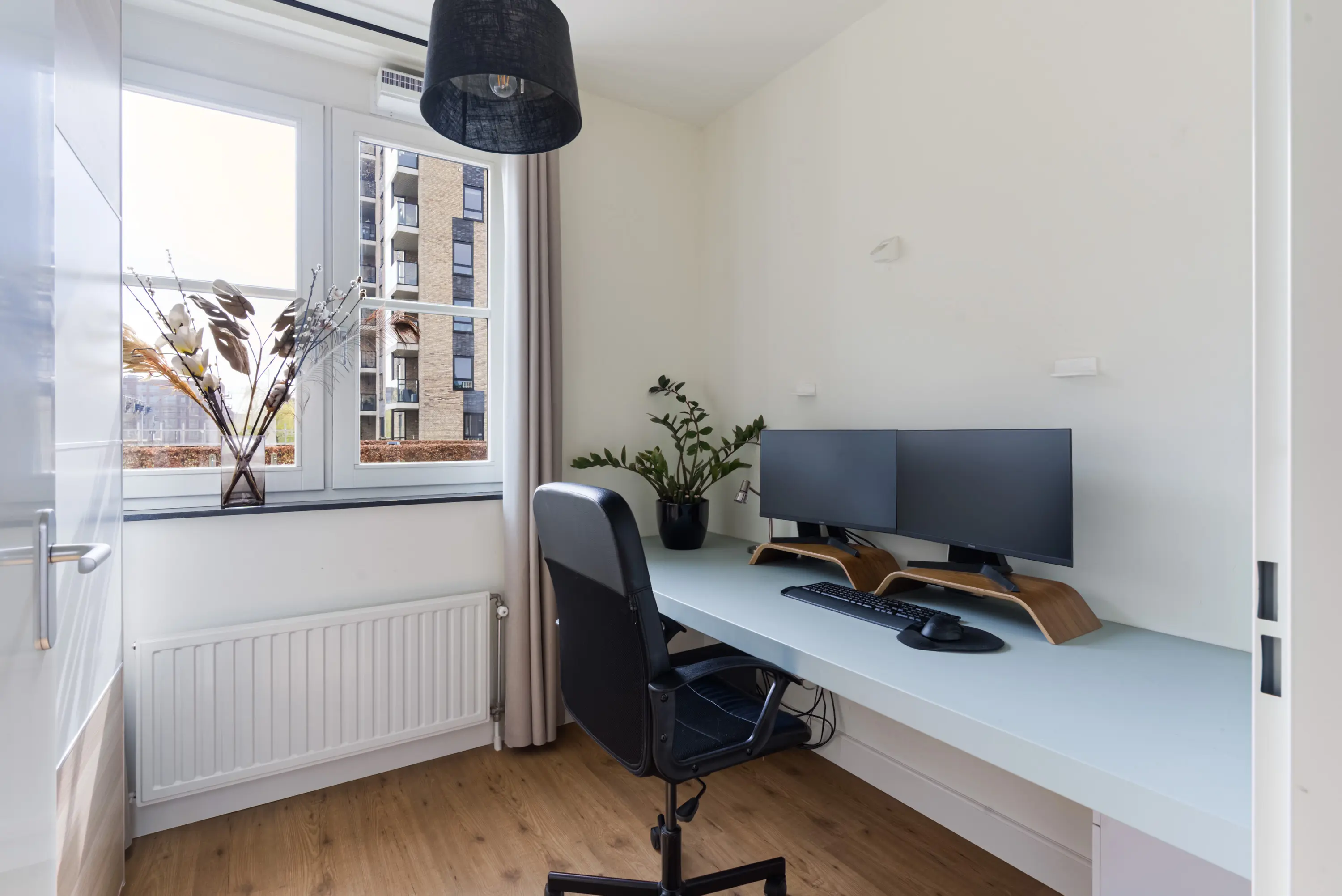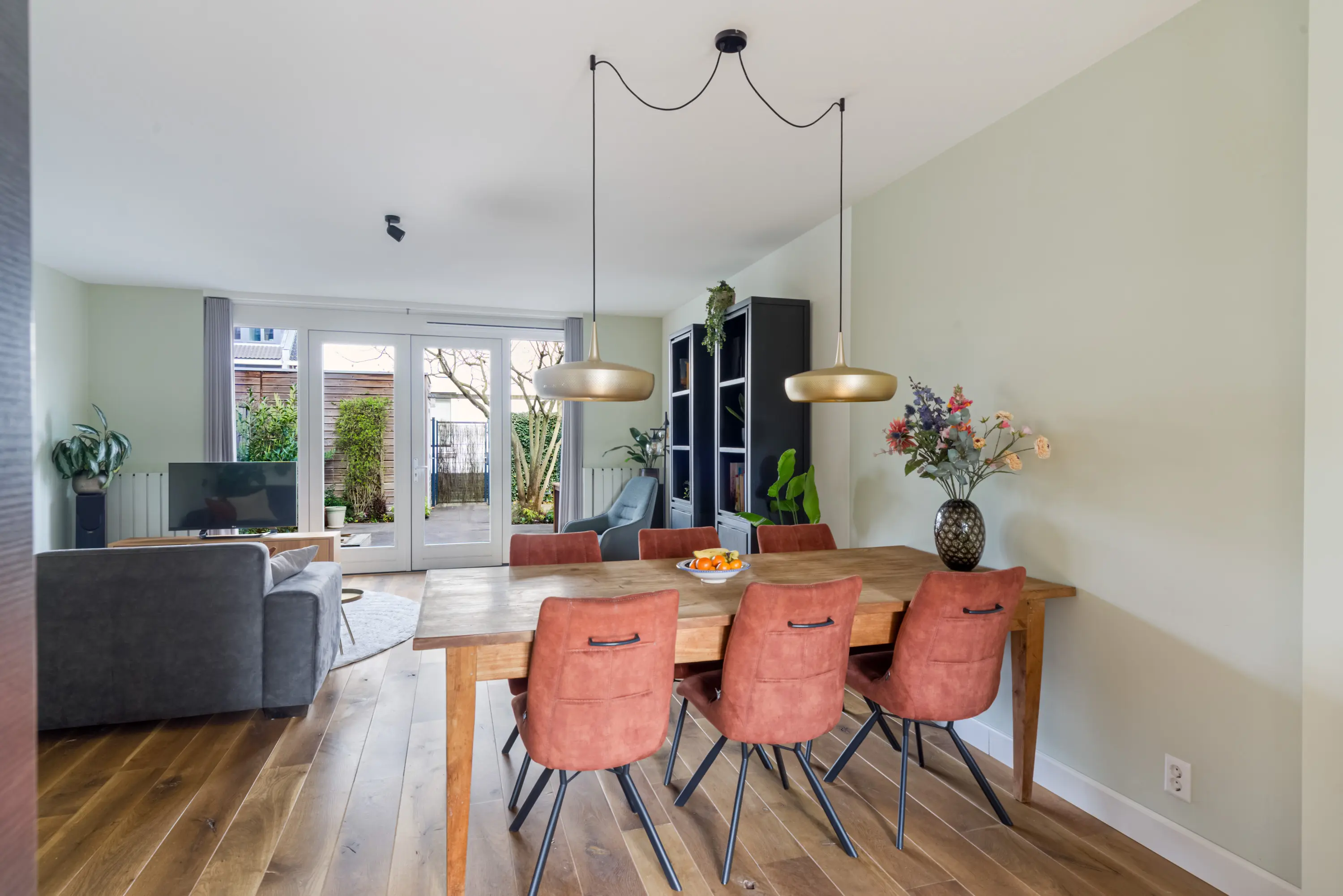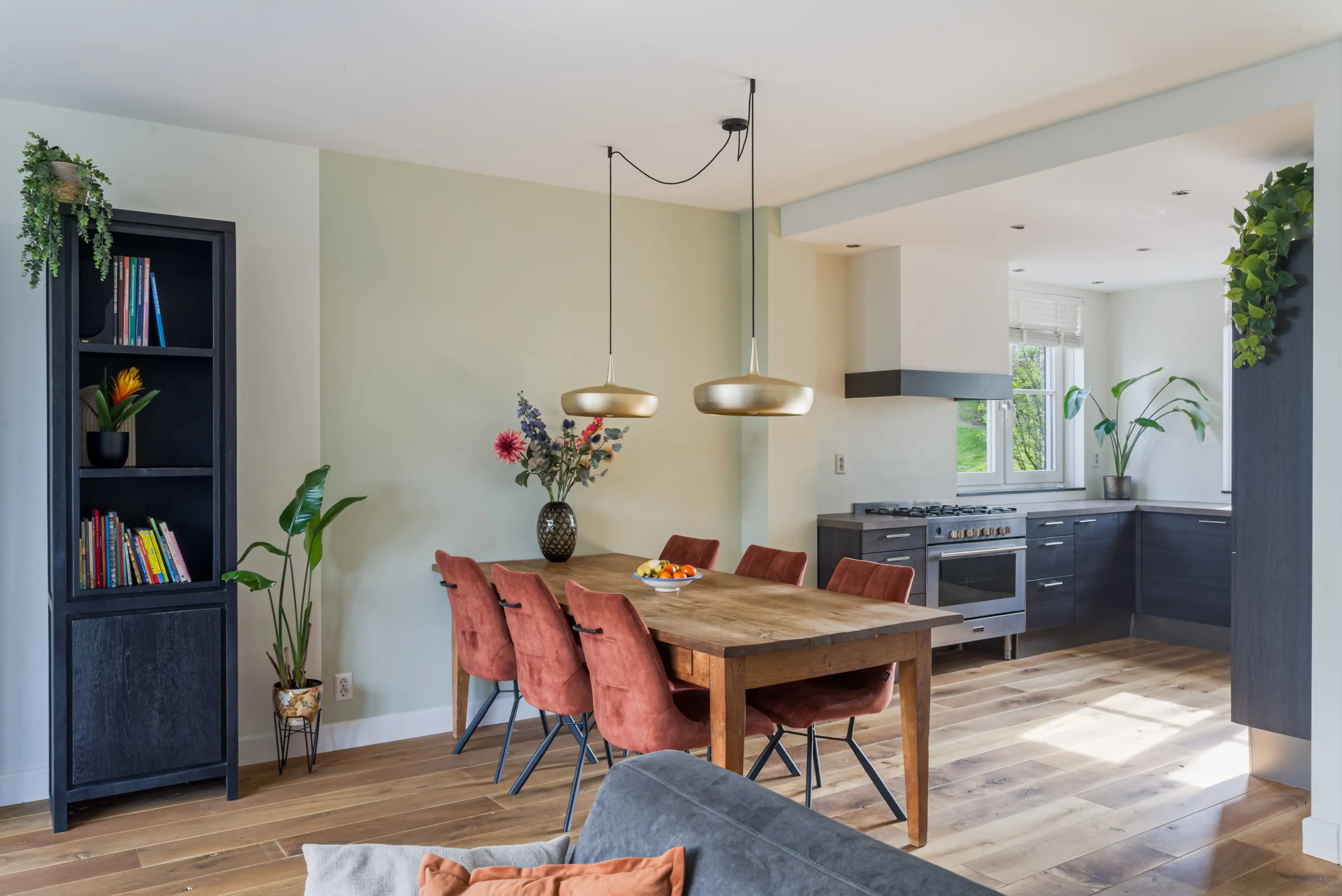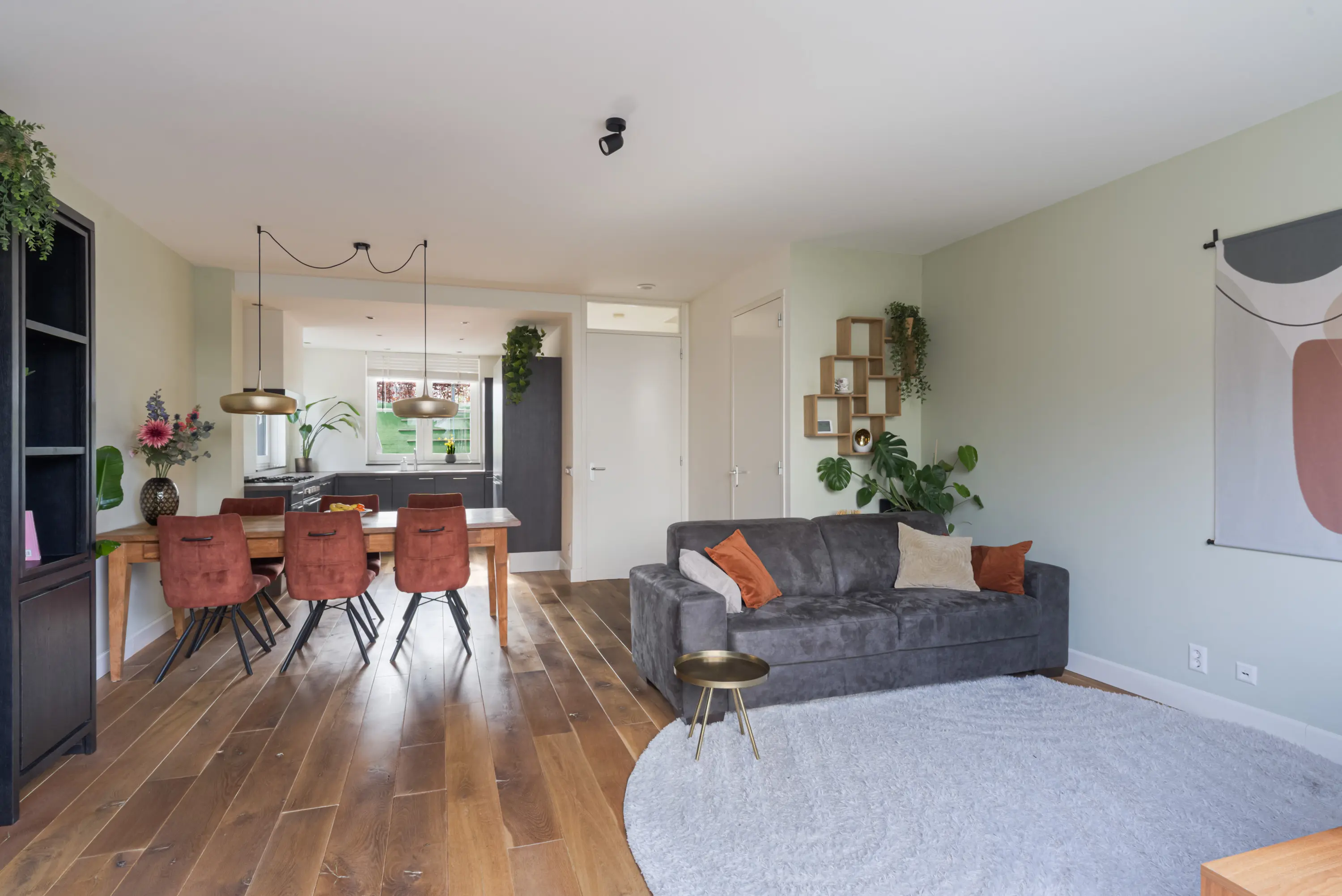 De gehele begane grond is voorzien van een stijlvolle eikenhoutenvloer.