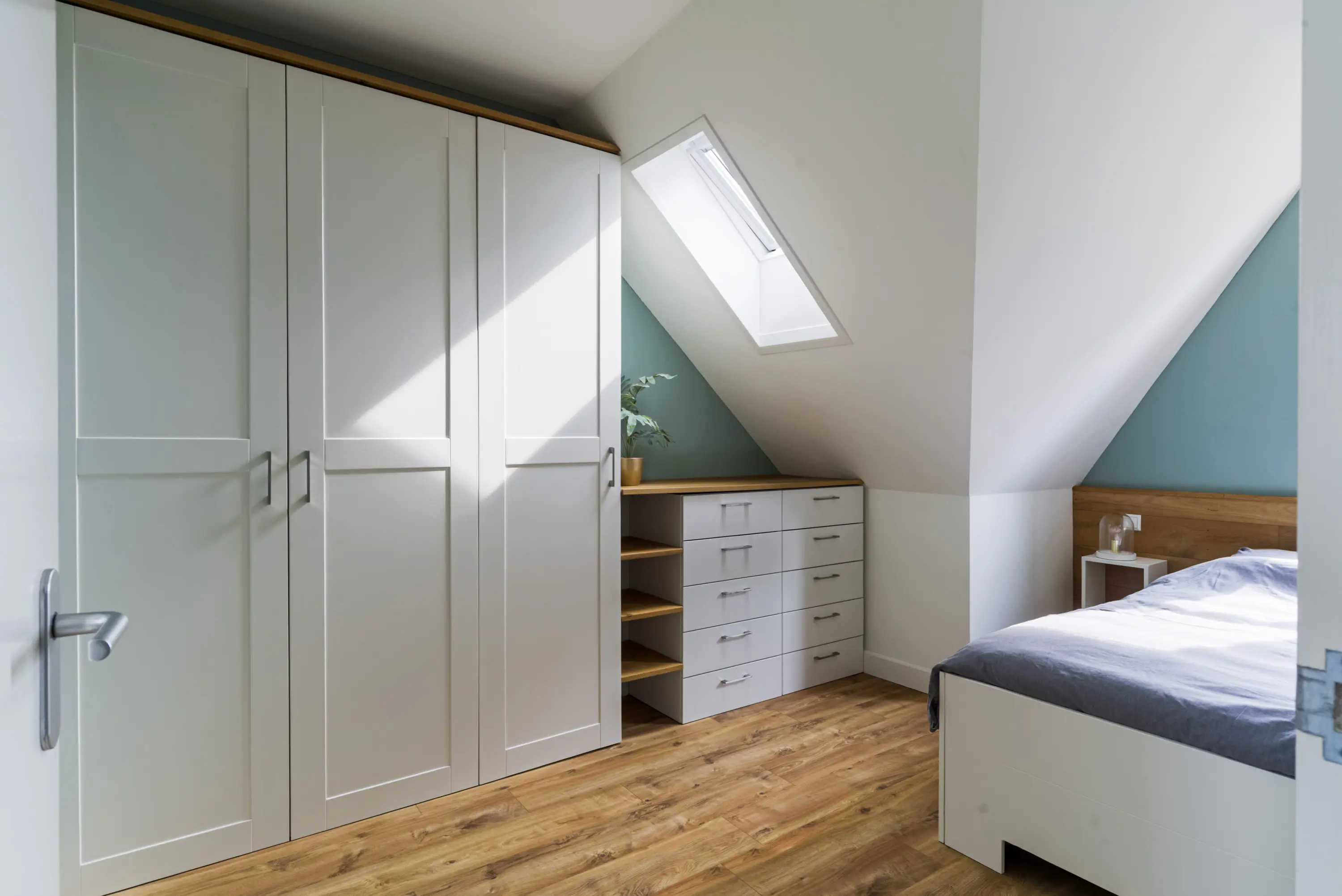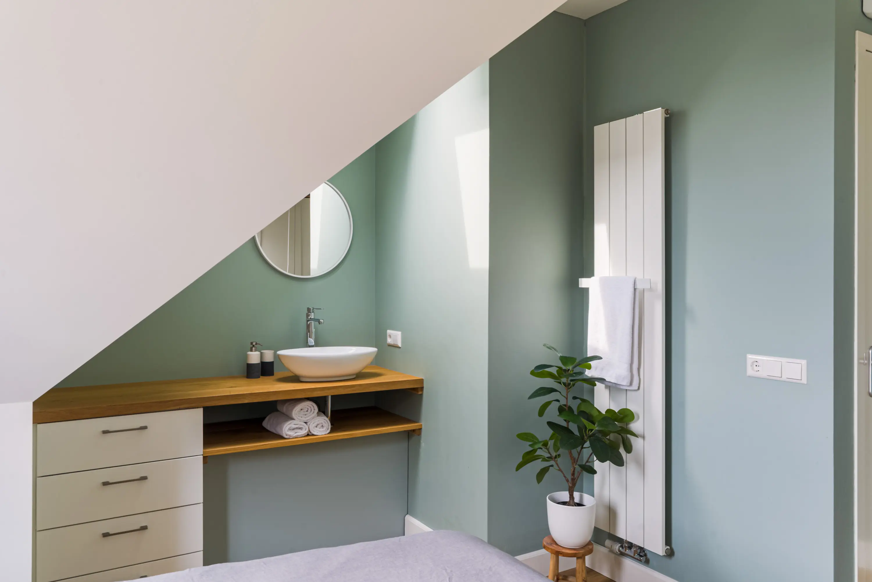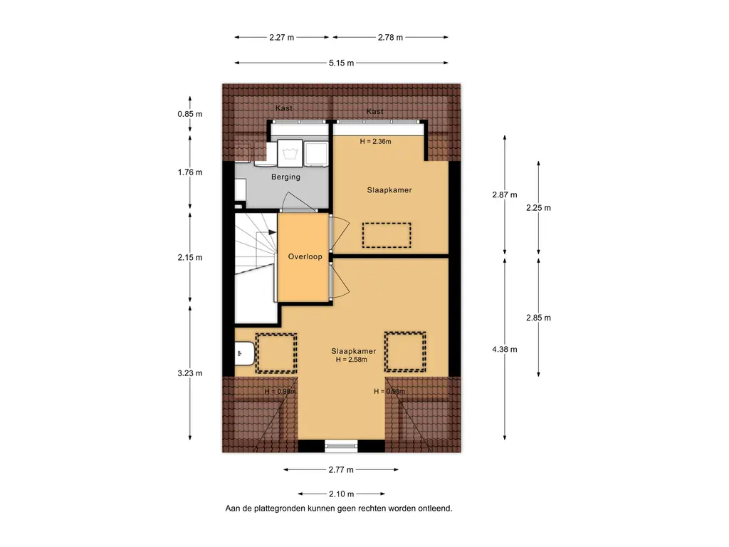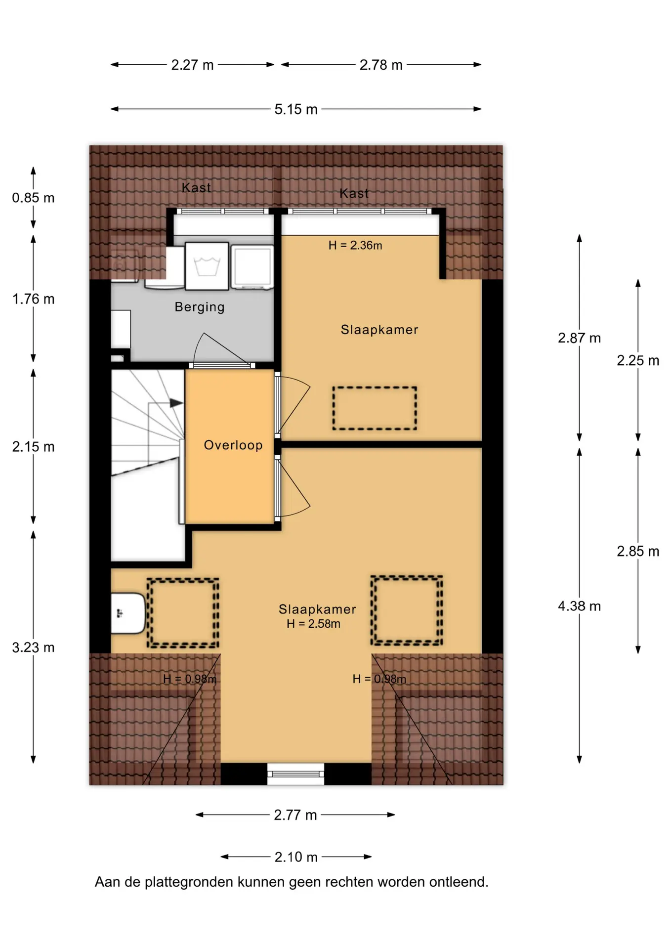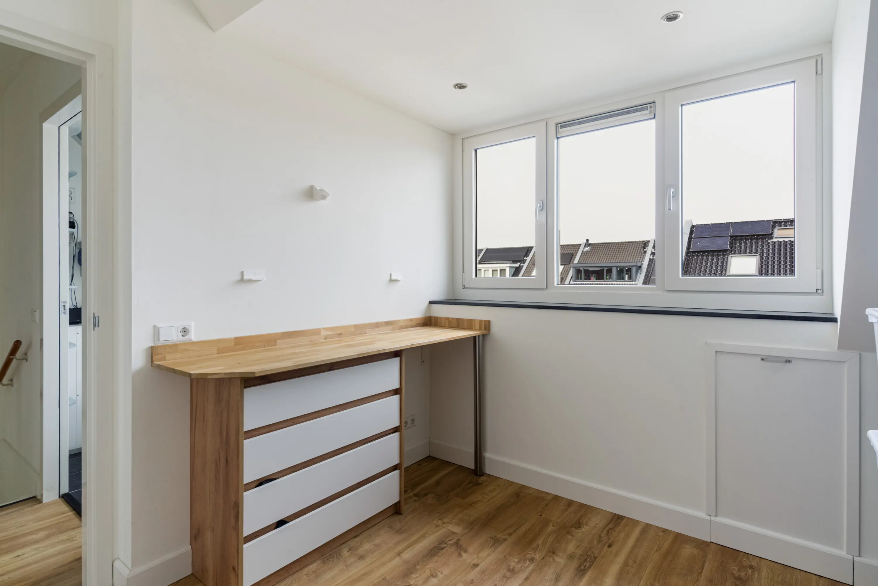 Voorzolder met waskamer met aansluitingen voor wasmachine en droger, cv-opstelling en mechanische ventilatie. Daarnaast bevinden zich hier nog twee (slaap)kamers waarvan één met een bergzolder, waarvan één lichte master bedroom met wastafel.