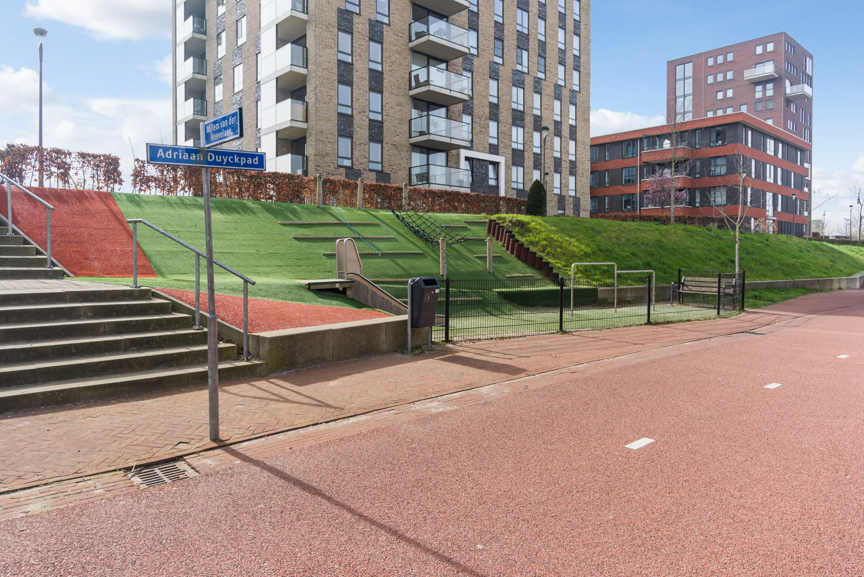 Dankzij de gunstige hoekligging geniet u van een extra brede achtertuin met veel privacy en een praktische zijom. De woning ligt aan het rustige Adriaan Duyckpad, een fietspad dat de wijk direct verbindt met het centrum. Voorzieningen zoals winkels, scholen, sportfaciliteiten en uitvalswegen (A12) bevinden zich in de directe omgeving.