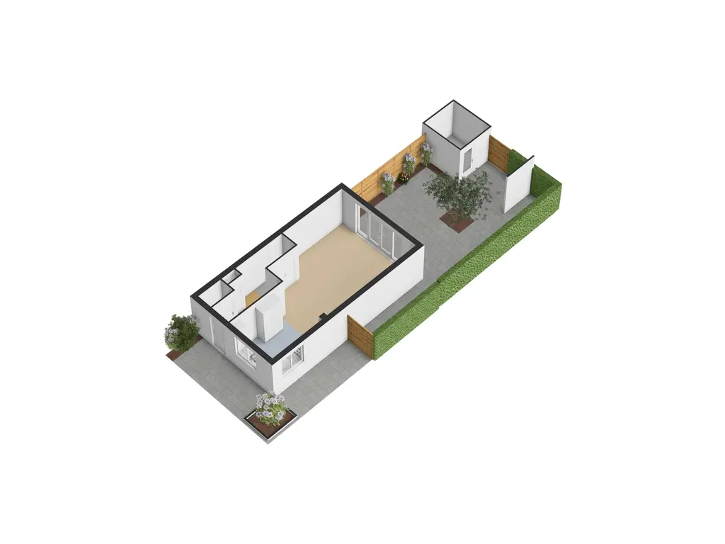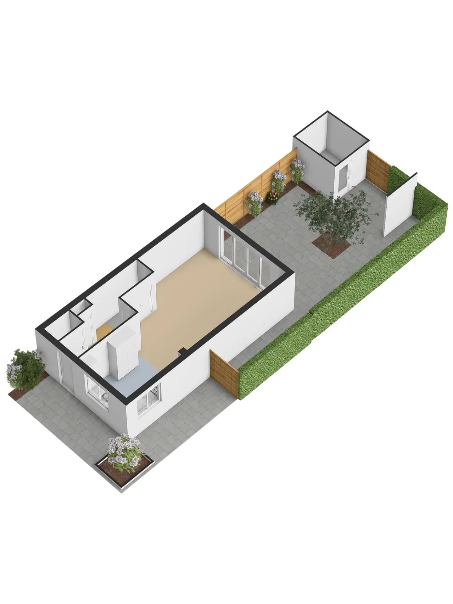 - Extra brede hoektuin met beregeningsinstallatie en zijom