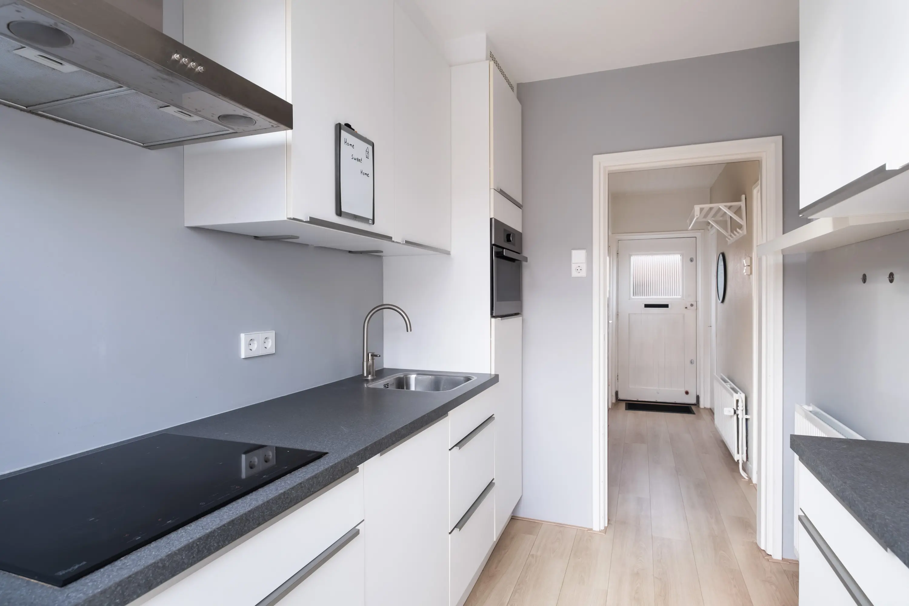 Via de entree met toilet, meterkast en een ruime trapkast kom je in de lichte doorzonwoonkamer. Hier vind je een fraaie laminaatvloer en strak gestucte wanden. De keuken is uitgerust met een afzuigkap, 4-pits inductiekookplaat, vaatwasser, combimagnetron en een koelkast met vriesvak. Vanuit de keuken stap je zo de royale achtertuin in, waar zich ook de berging bevindt. De zij-tuin is voorzien van een praktische overkapping.