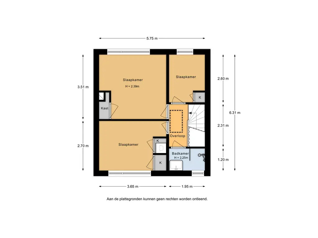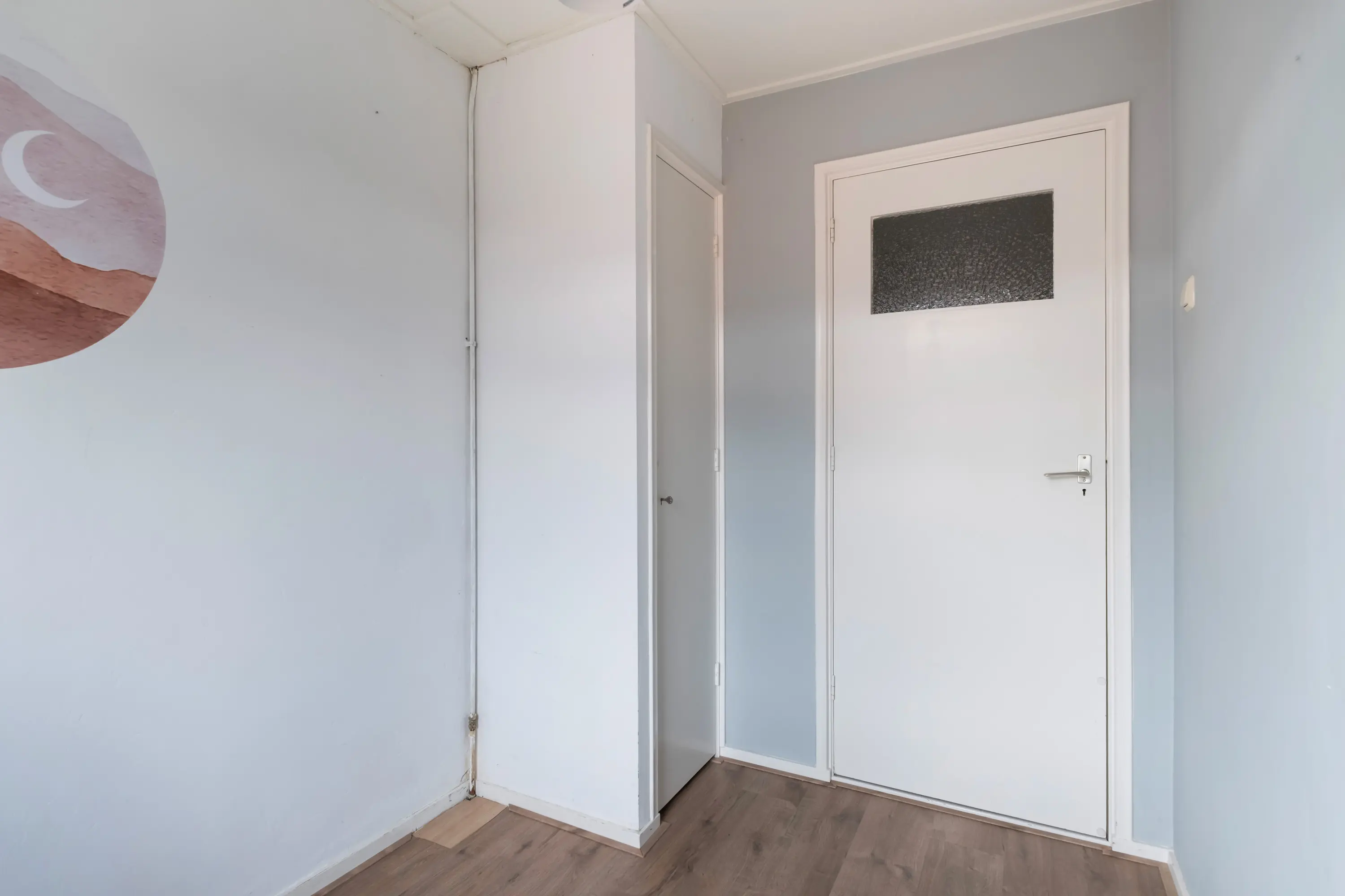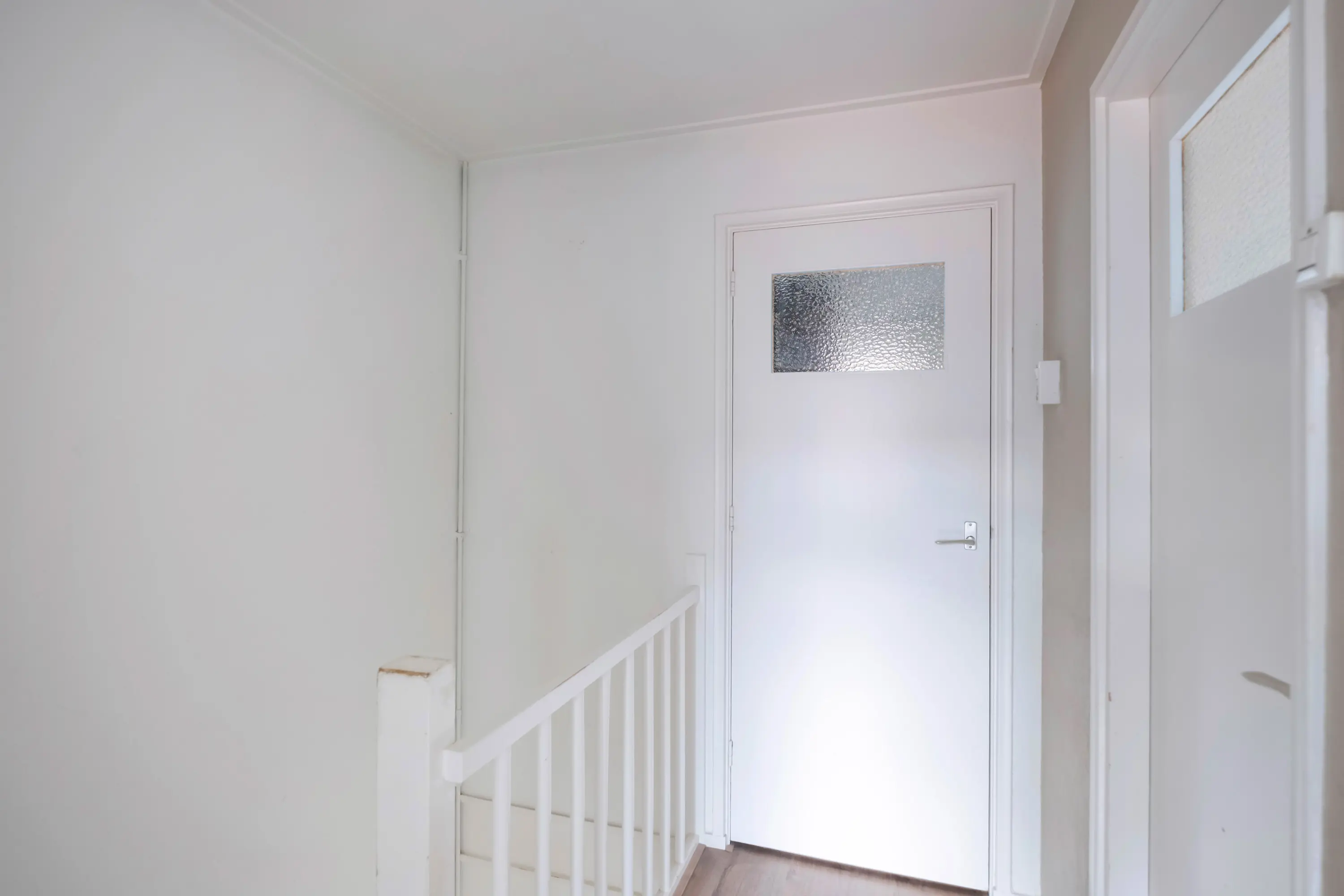 Vanaf de overloop zijn drie slaapkamers bereikbaar. Twee slaapkamers liggen aan de achterzijde en beschikken over een vaste kast. De derde slaapkamer aan de voorzijde heeft eveneens een vaste kast plus een kast met aansluitingen voor wasmachine en droger. De volledig betegelde badkamer is uitgerust met een inloopdouche met thermostaatkraan, badkamermeubel, wastafel en handdoekradiator. De gehele verdieping is voorzien van laminaat.