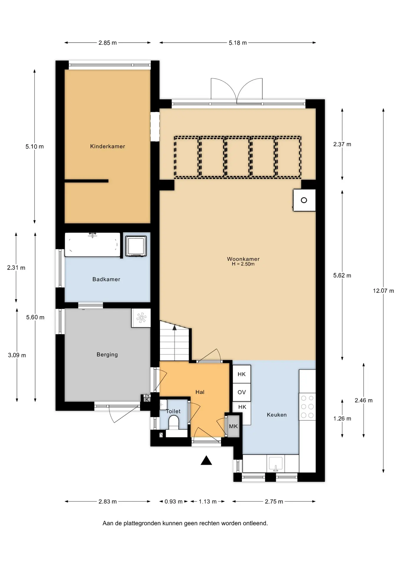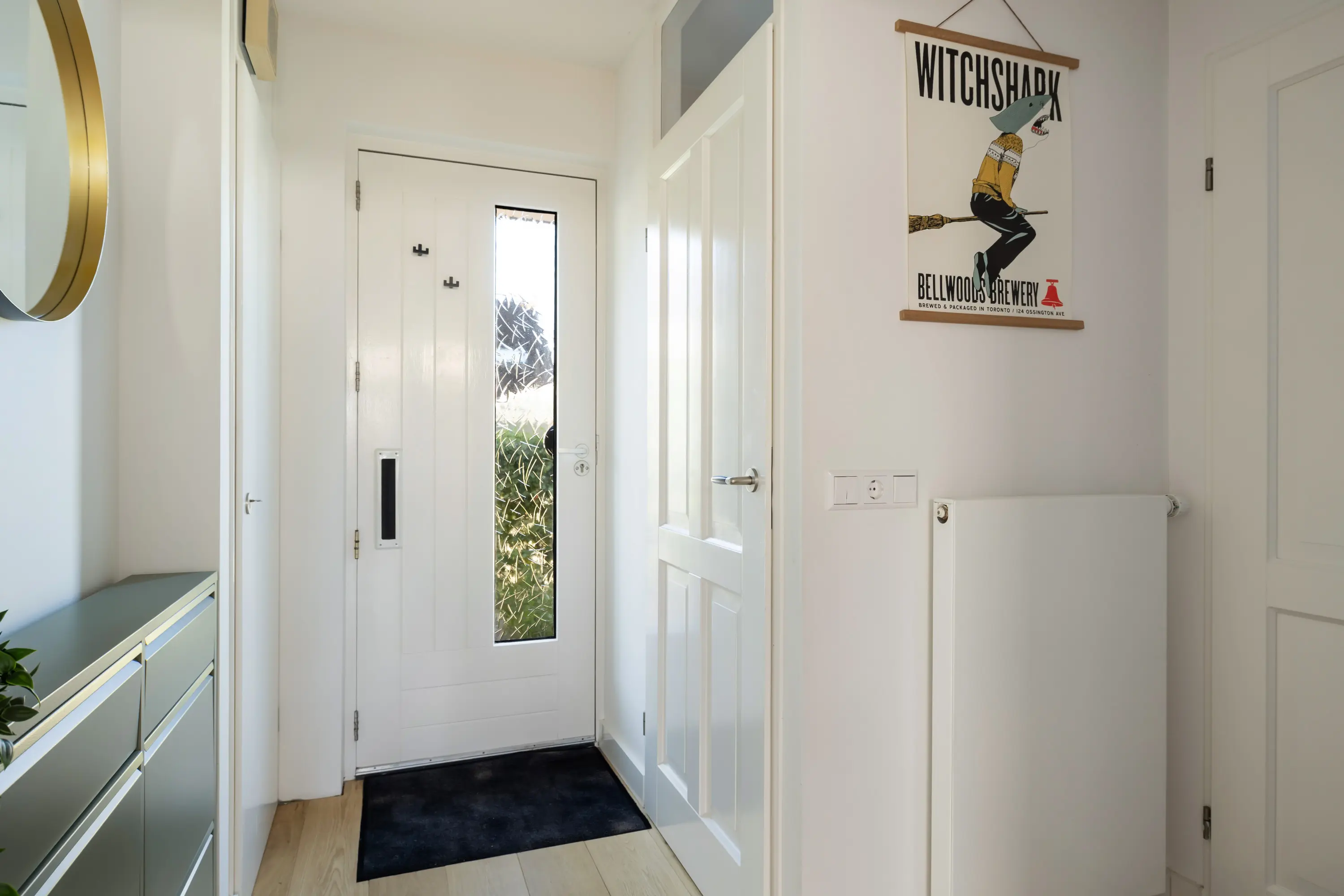 Via de nette voortuin bereikt u de overdekte entree. In de hal vindt u de meterkast, toiletruimte, trapopgang en de toegang tot de berging.