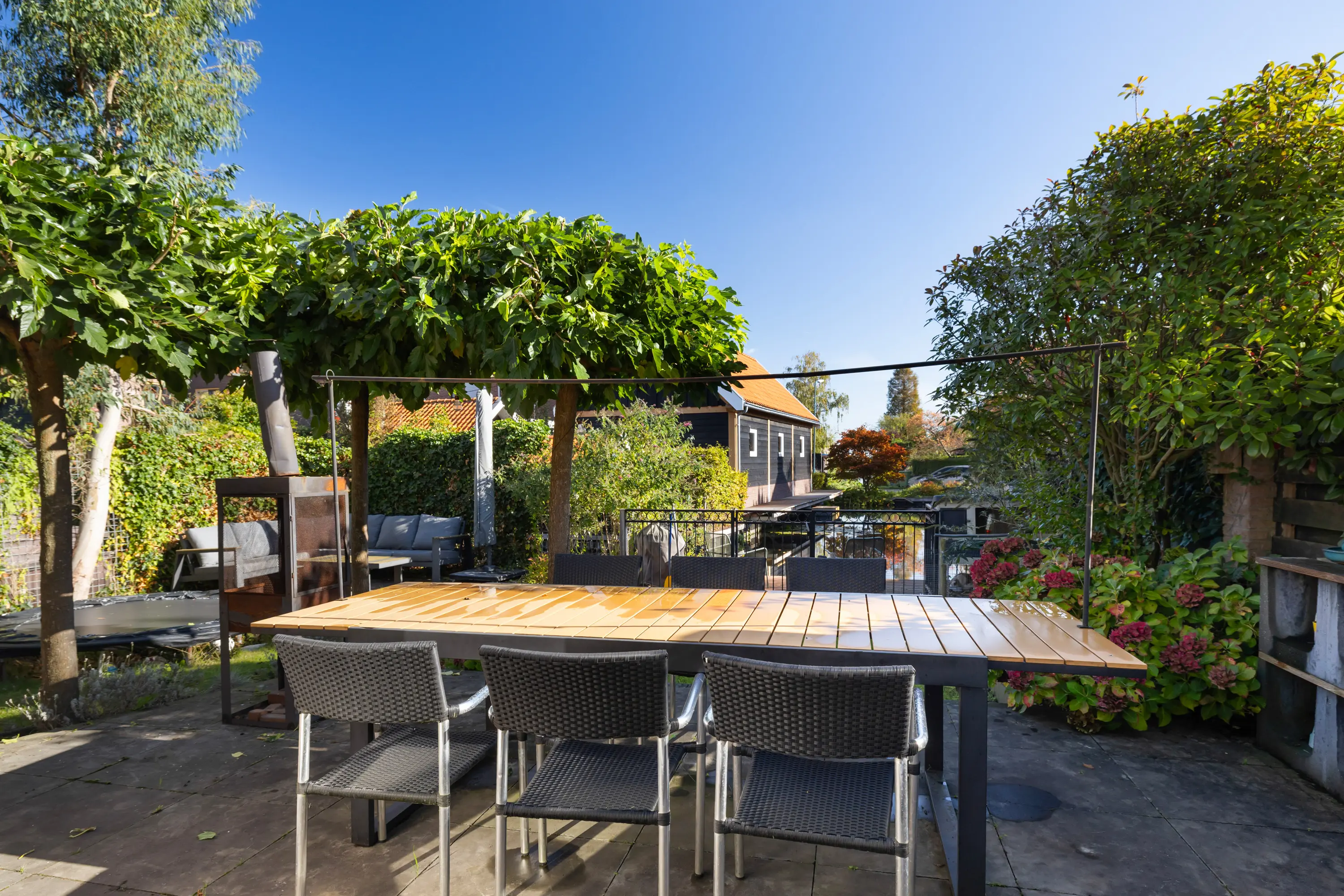 De heerlijke tuin rondom de woning biedt meerdere zitjes, een vlonder aan het water, veel groen en een achterom. Geniet hier van de rust, ruimte en het vrije uitzicht over de weilanden.