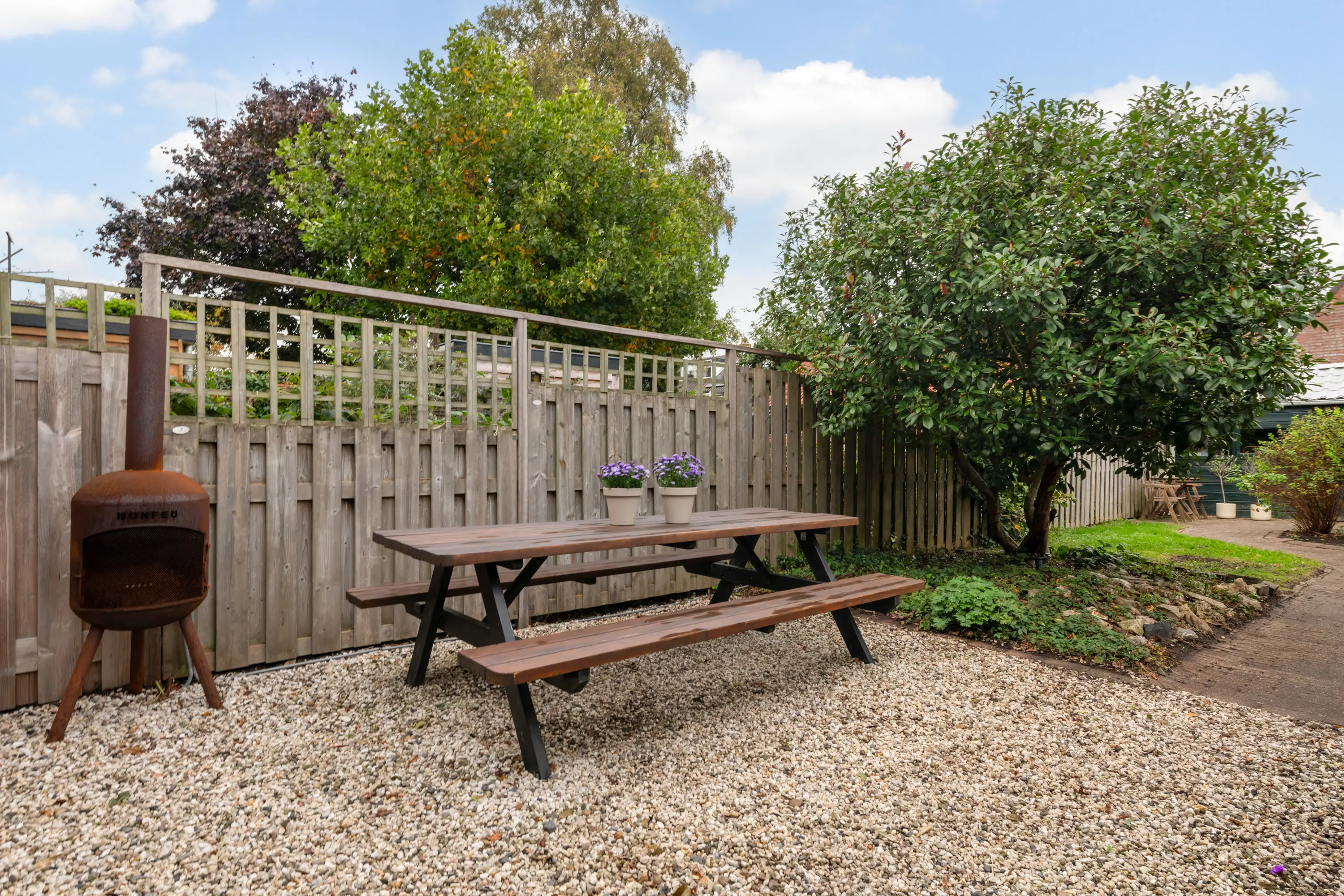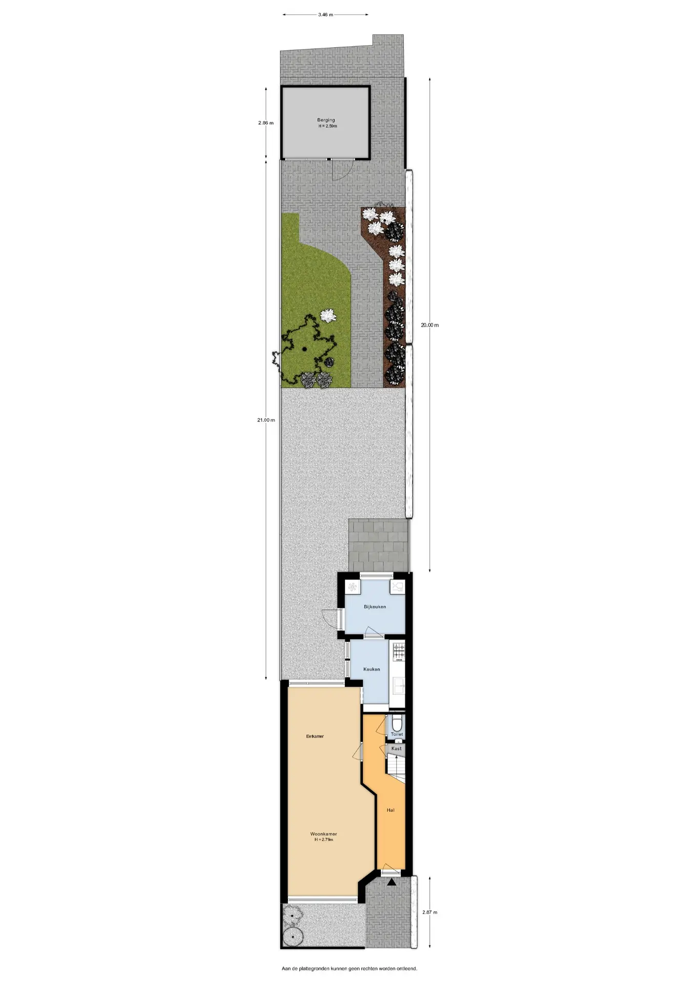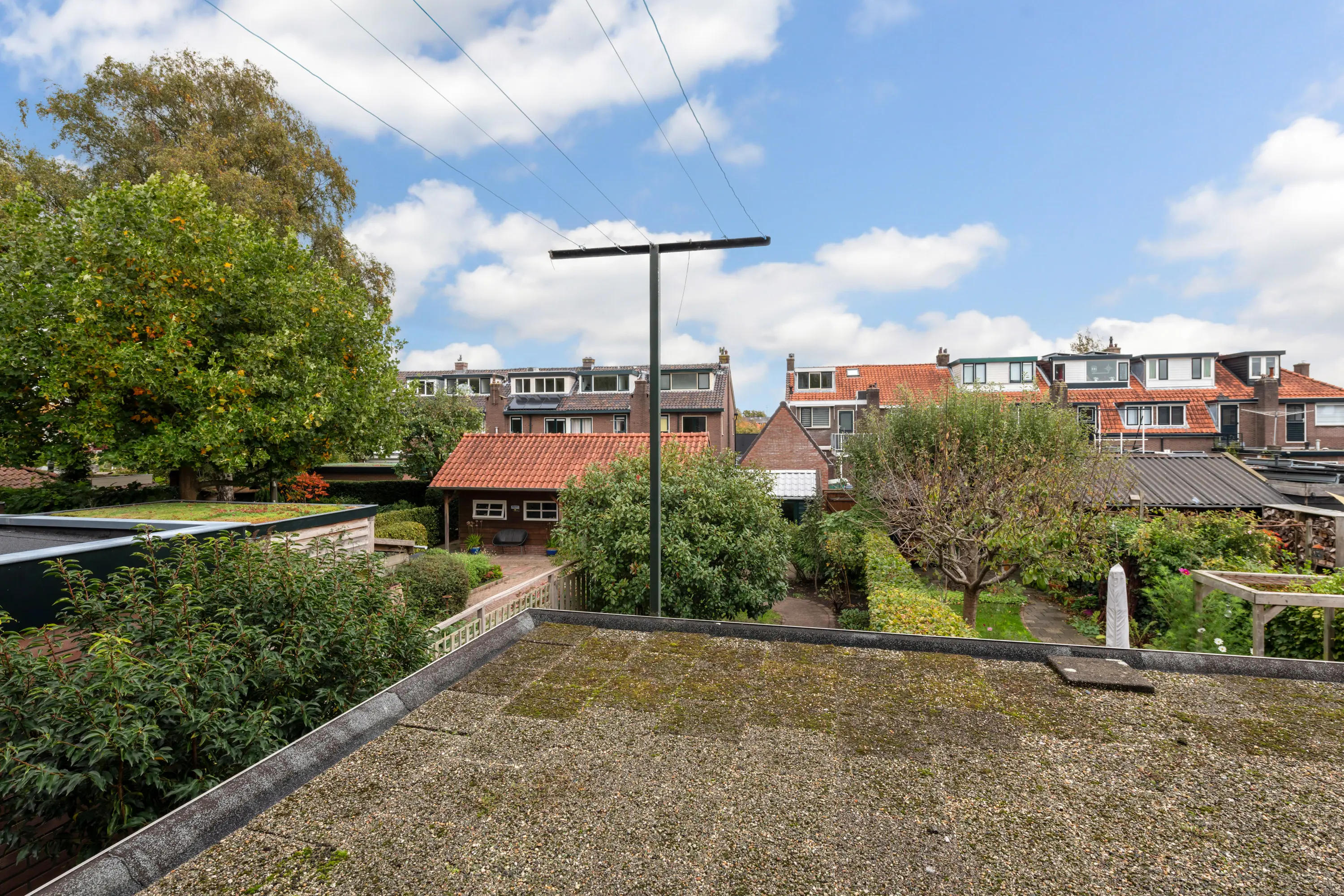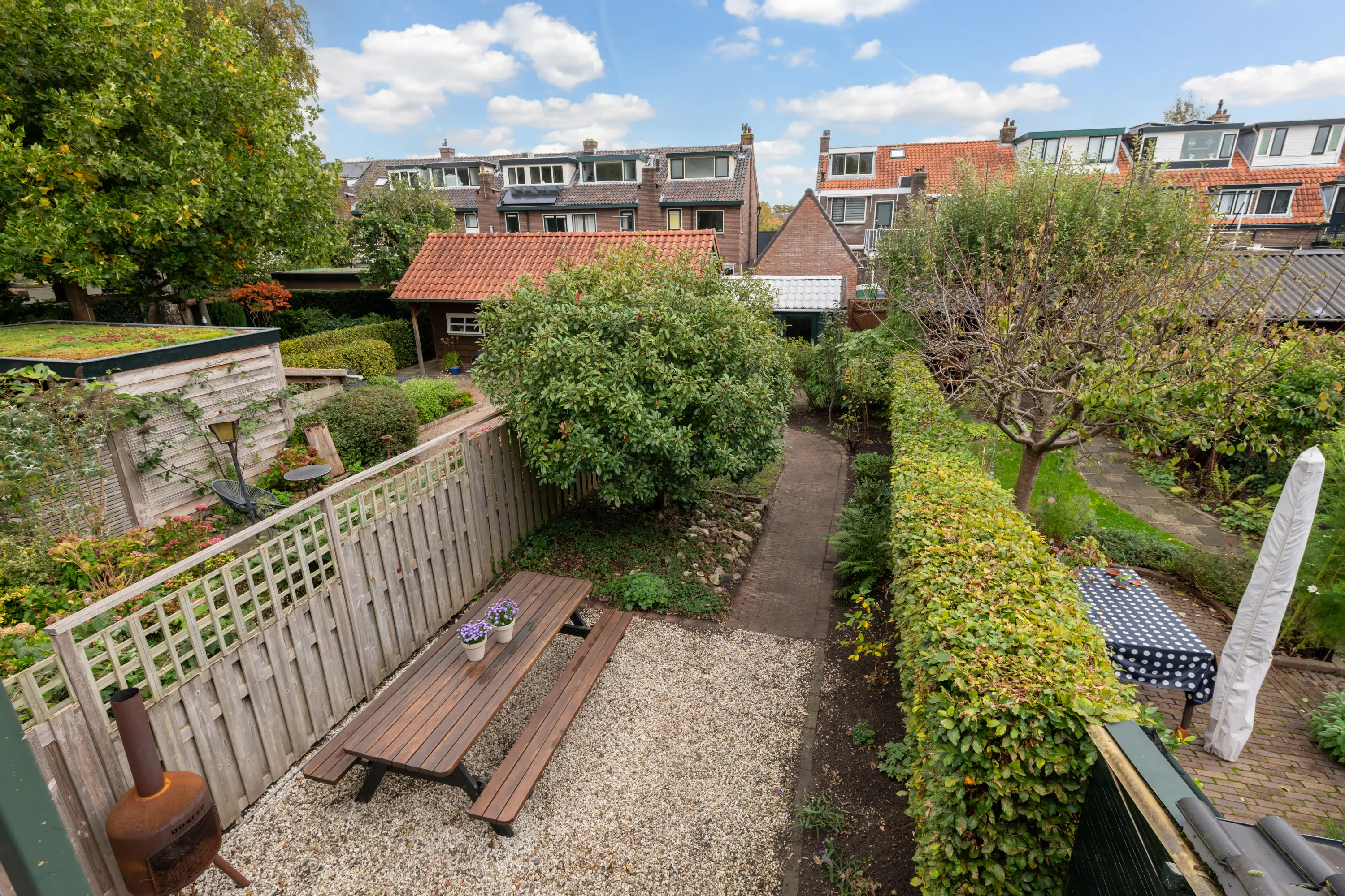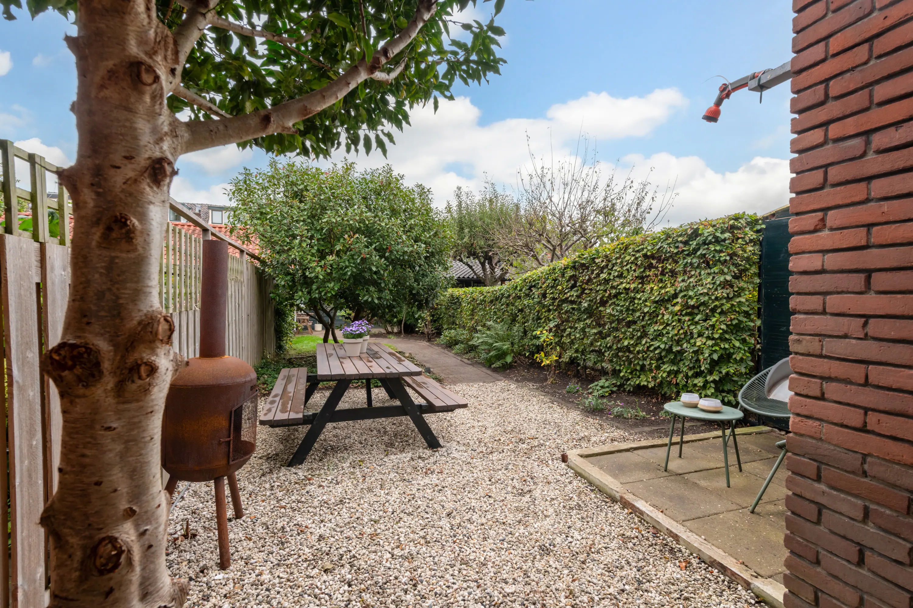 De woning beschikt over een verrassend ruime achtertuin op het (noord)oosten, voorzien van een houten berging en een praktische achterom.