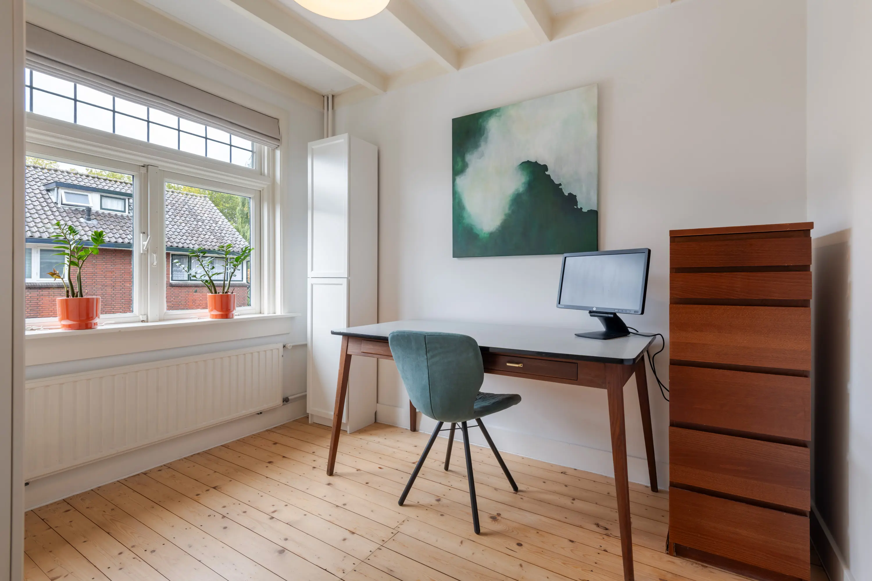 Op de tweede verdieping bevindt zich een royale overloop met veel bergruimte en een ruime slaapkamer met dakkapel. Met enkele aanpassingen is het mogelijk om hier twee slaapkamers te realiseren.
