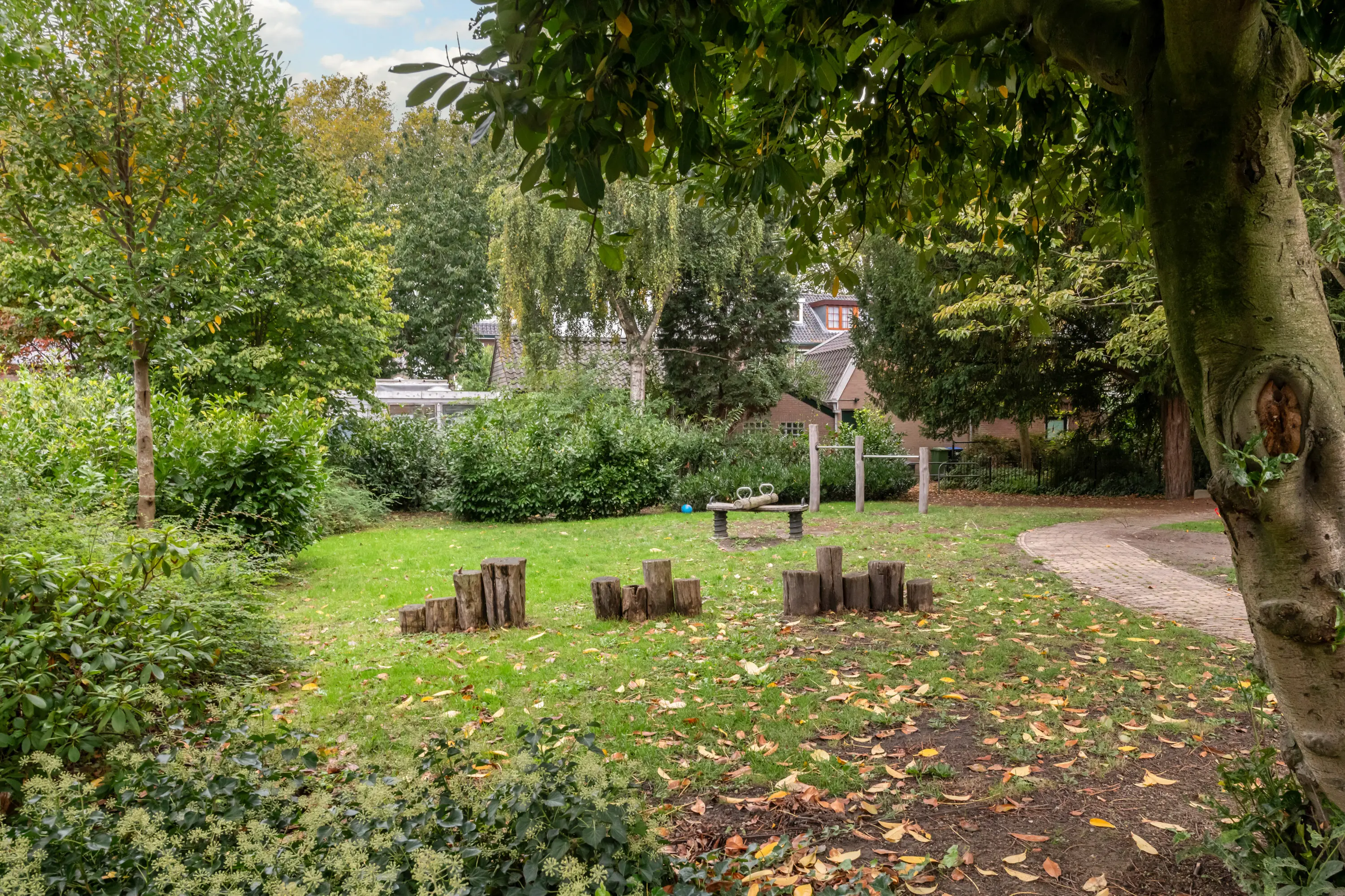 De fraai aangelegde achtertuin ligt op het (noord)oosten en biedt volop privacy. De tuin beschikt over een houten berging en een achterom.
