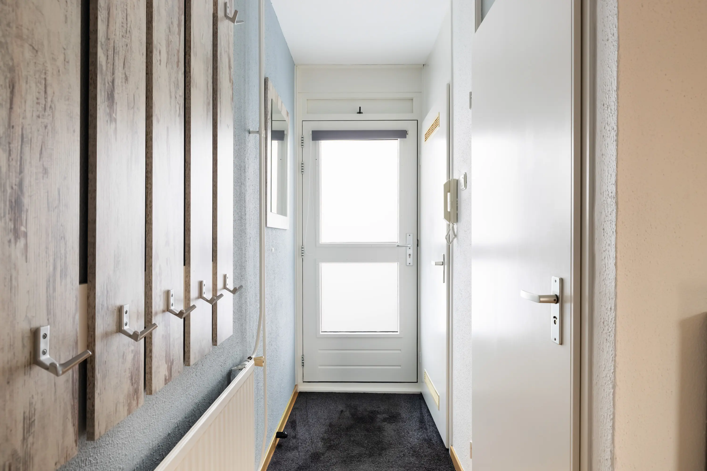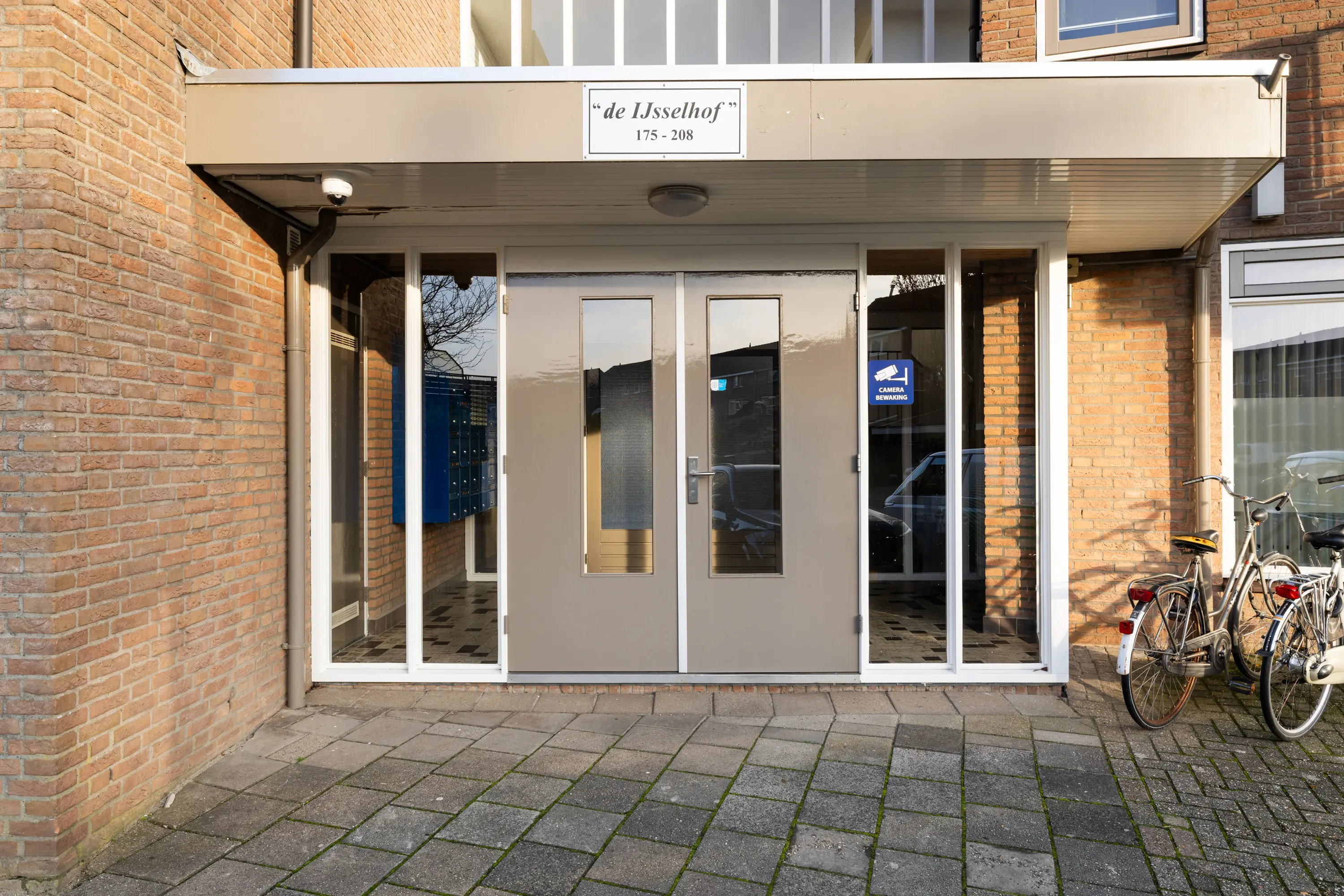 Afgesloten entree van het complex met trapopgang en een eigen berging.