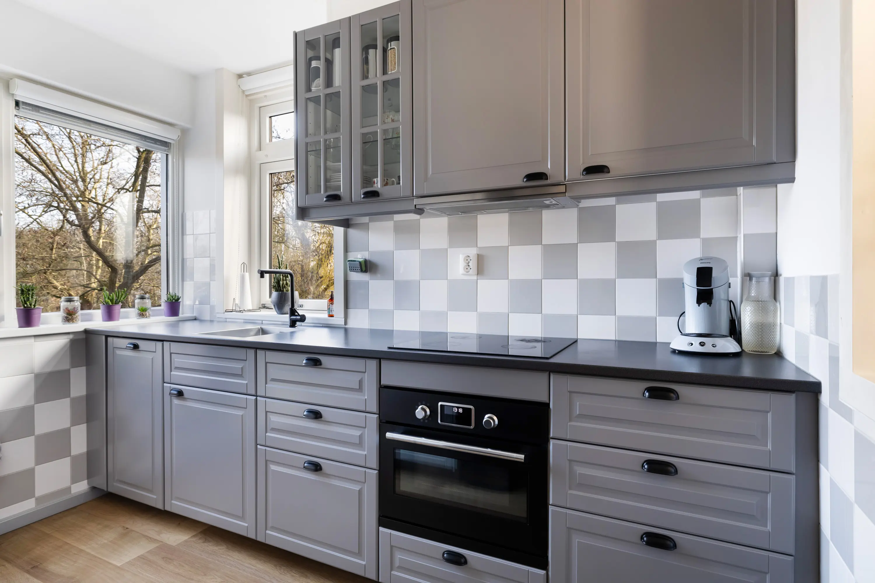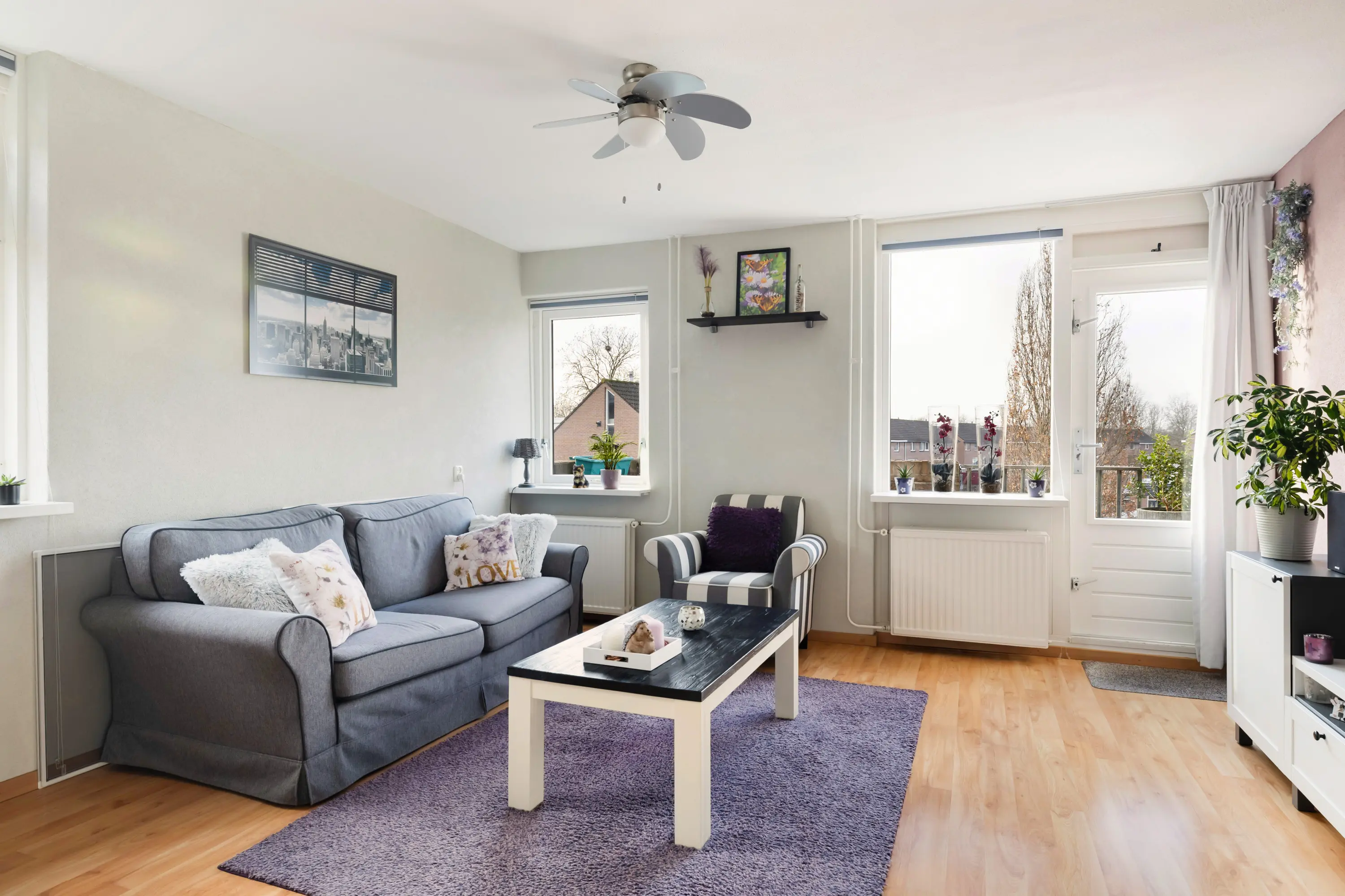 Sfeervol hoekappartement met zonnig balkon en twee slaapkamers.