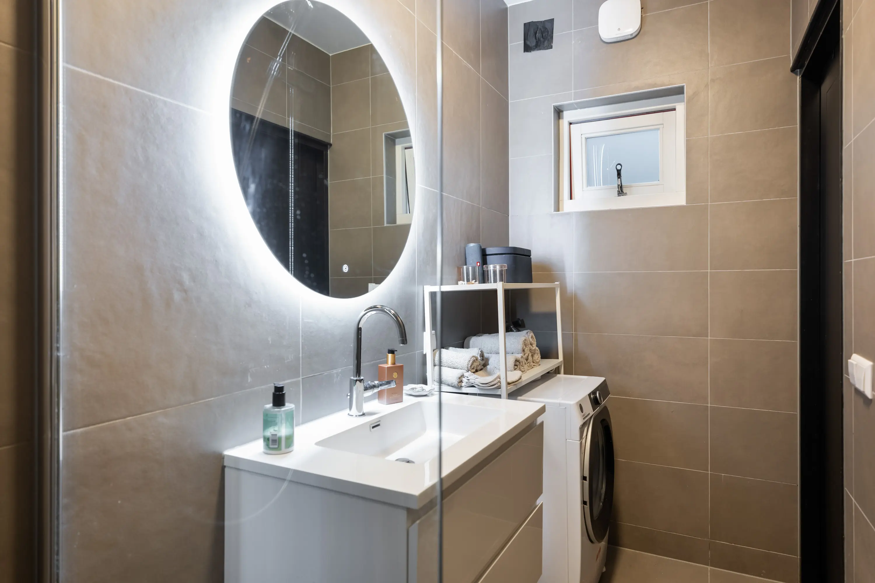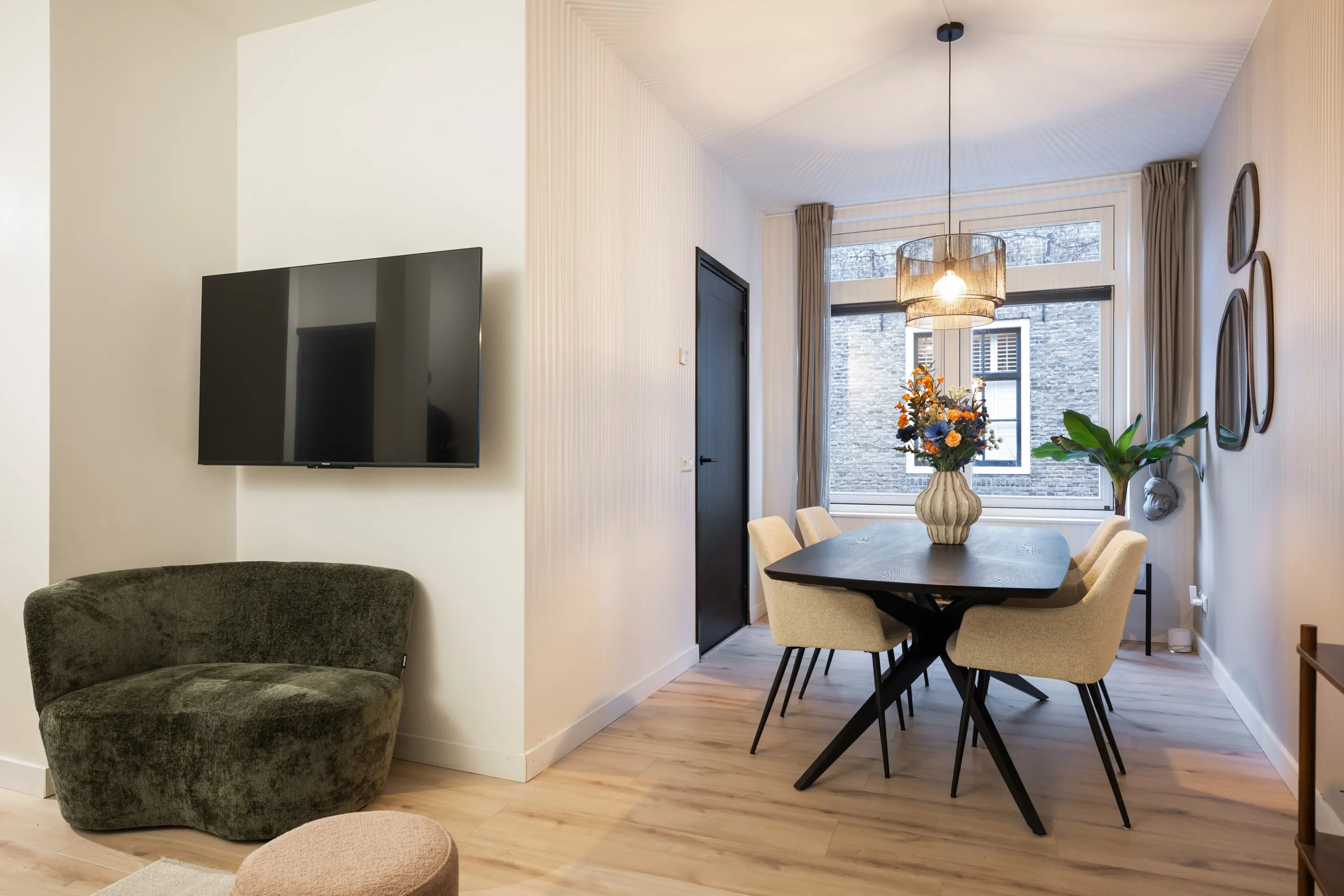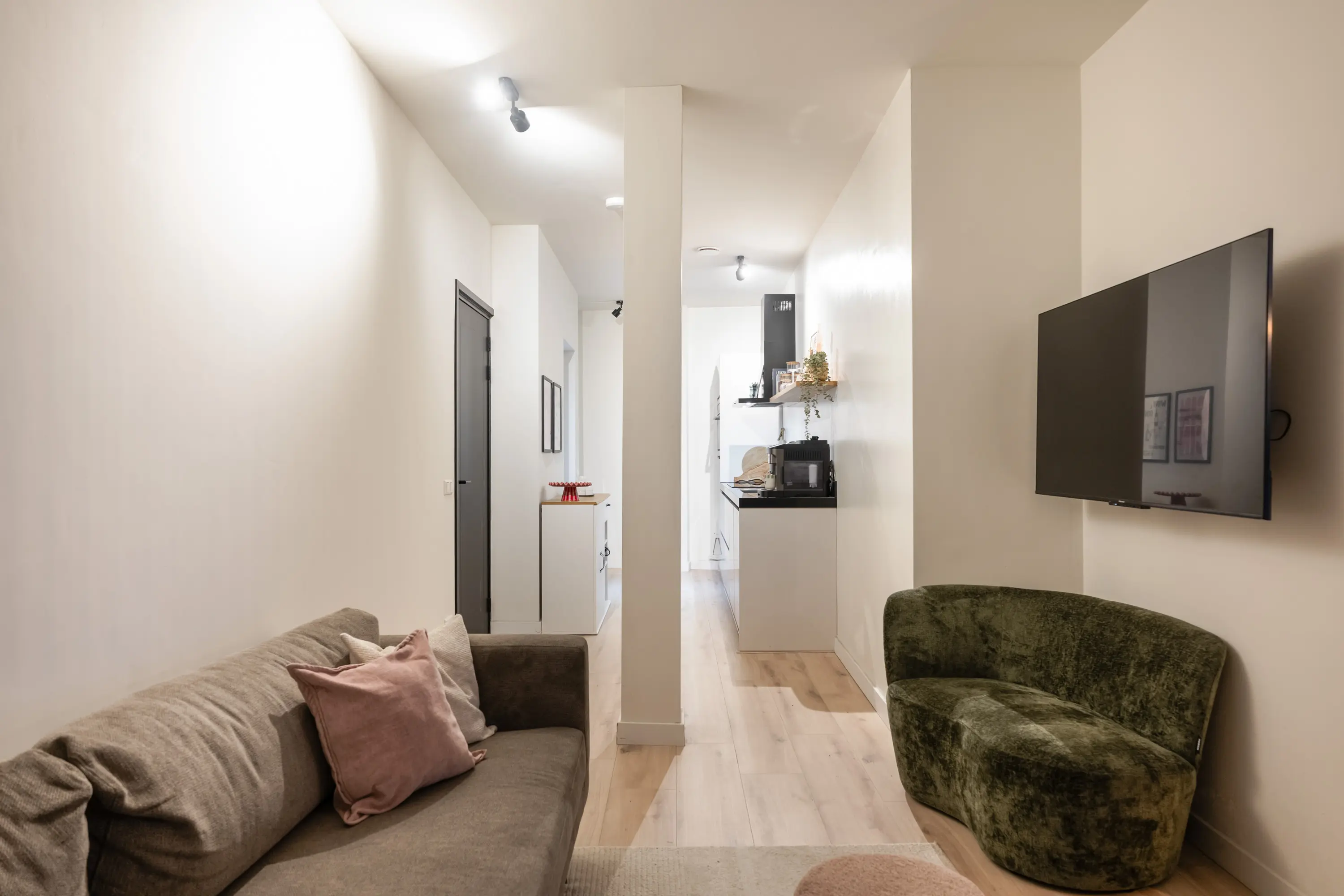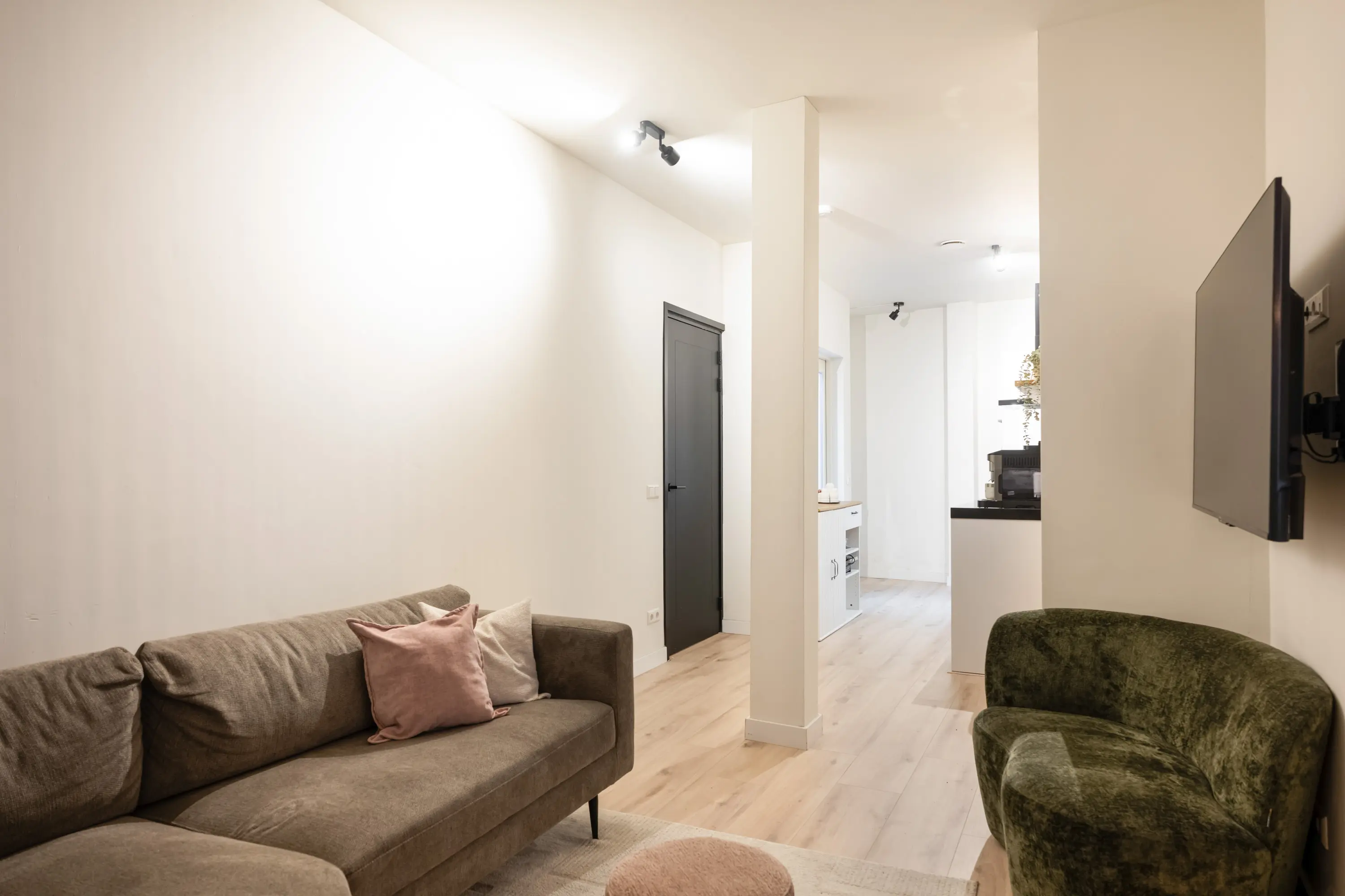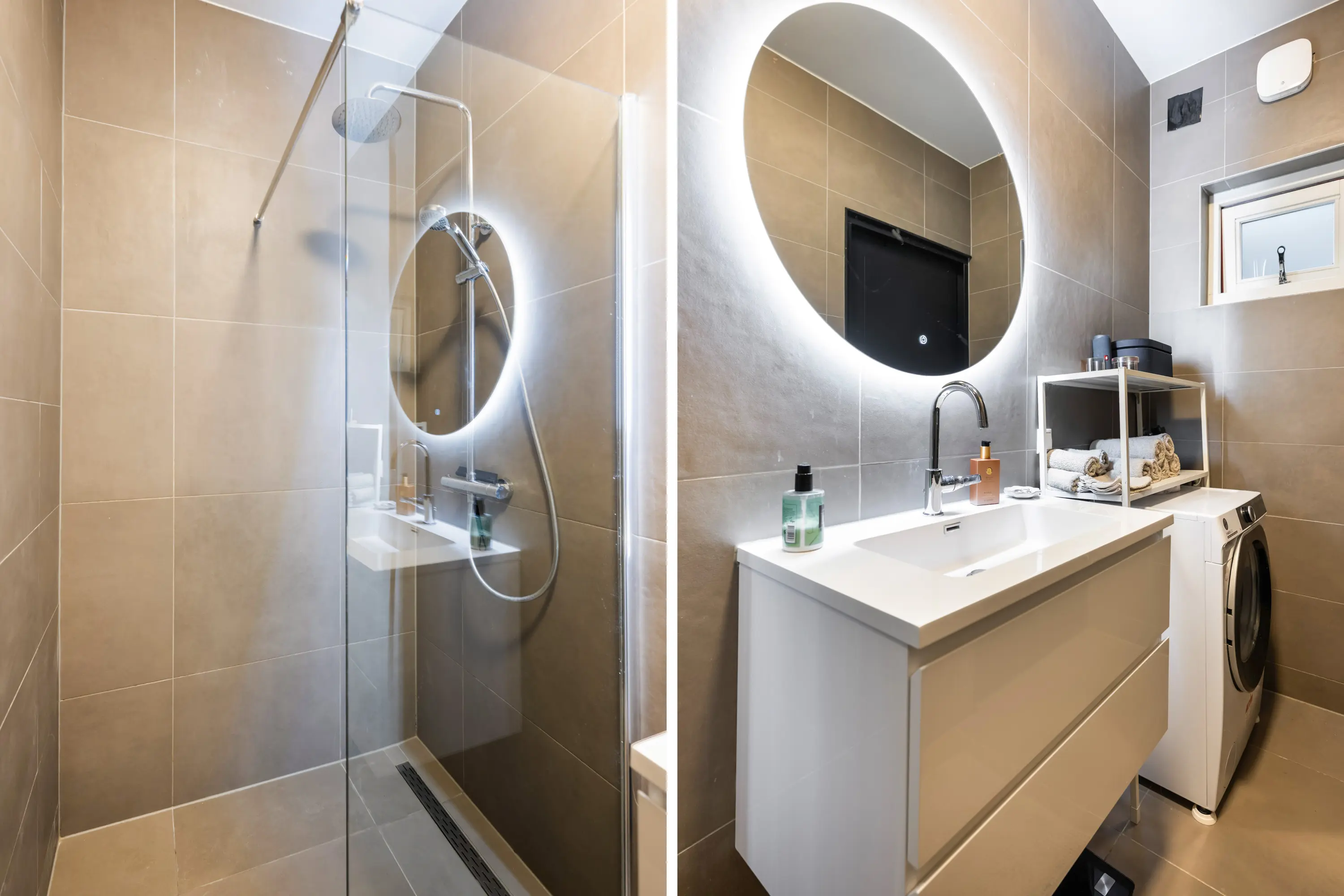 entree/hal met meterkast en toilet, karakteristieke sfeervolle woonkamer met laminaat vloer, moderne keukeninrichting inbouwapparatuur, (o.a. 4-pits inductiekookplaat, combi-oven/magnetron, vaatwasser, koelkast en afzuigkap) en extra (vaste) bergkast, slaapkamer met laminaatvloer, badkamer voorzien van een inloopdouche, wastafel met meubel, toilet, designradiator en een opstelplaats voor wasmachine en droger.