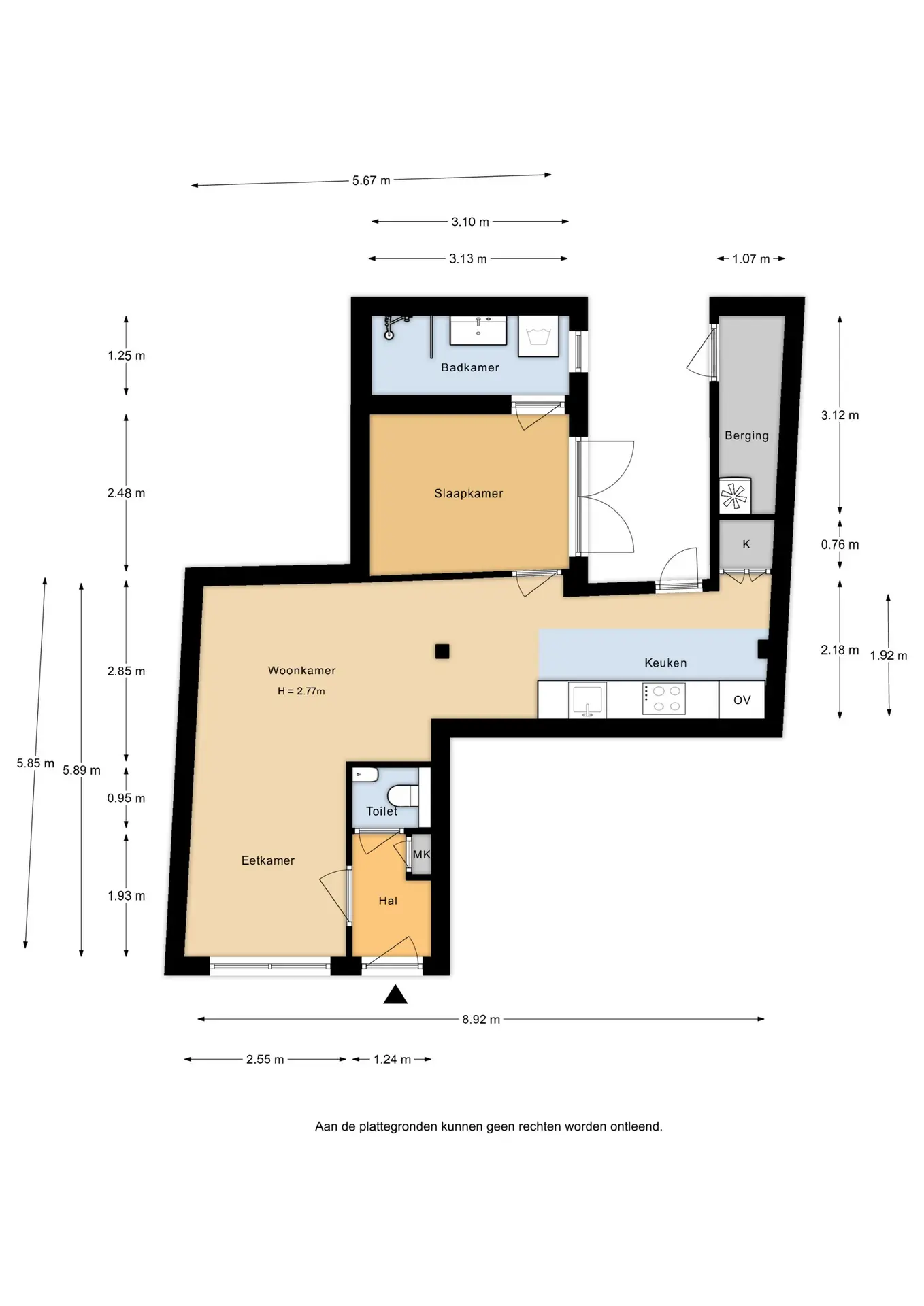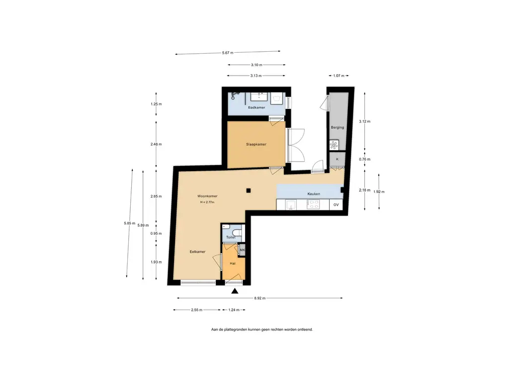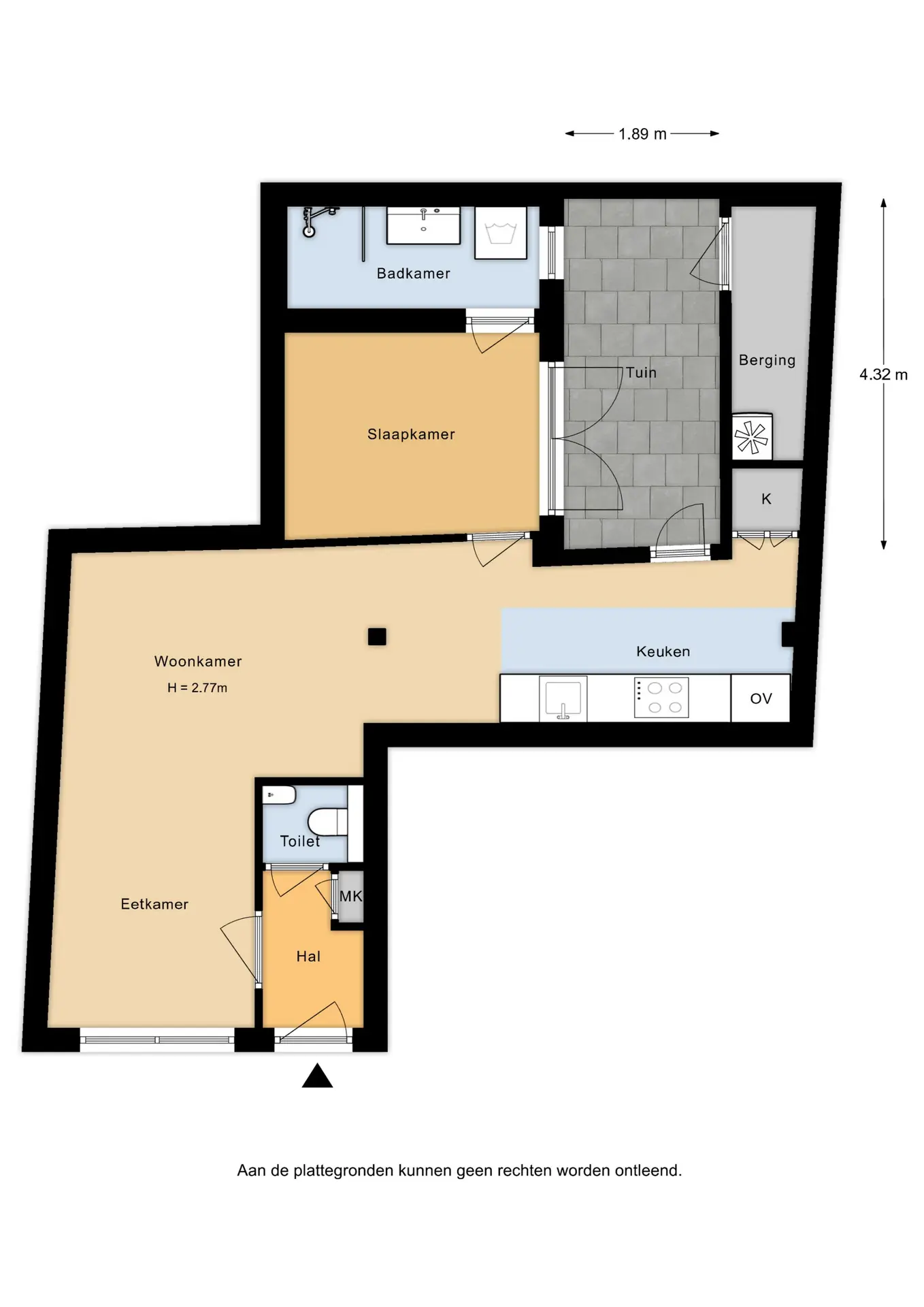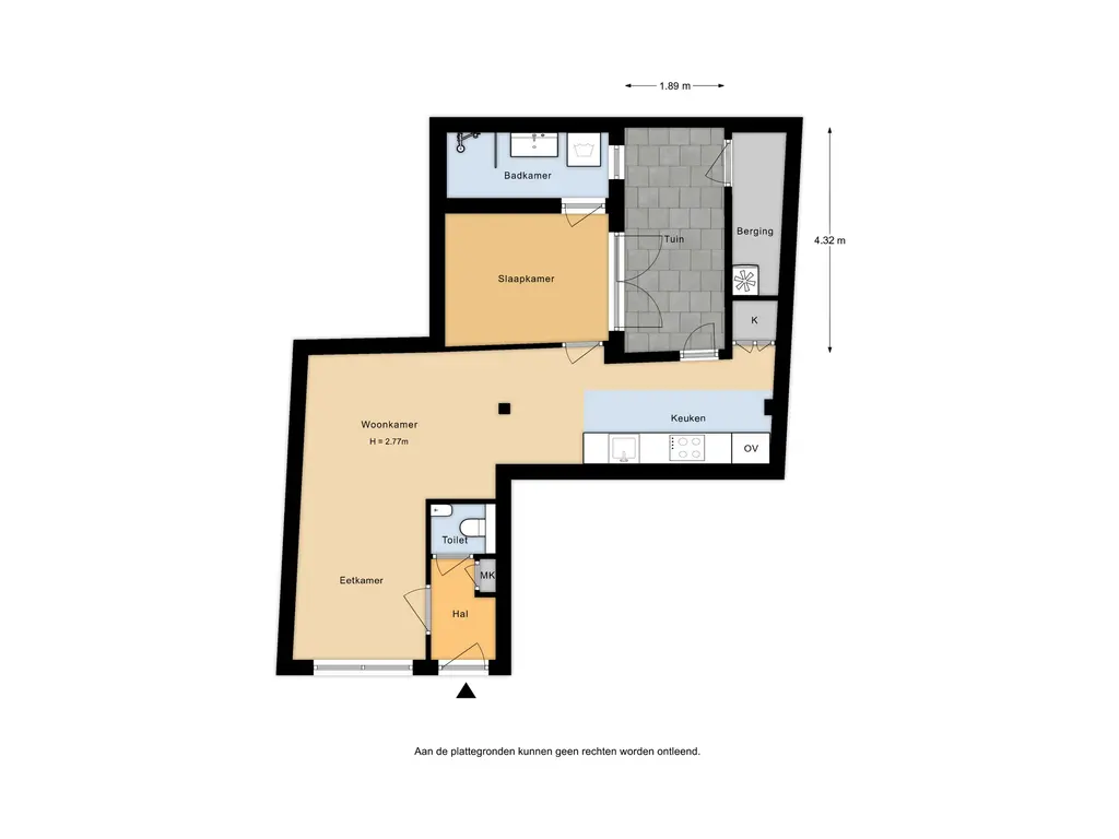• Inhoud appartement ca. 182m³, gebruiksoppervlakte ca. 47m².