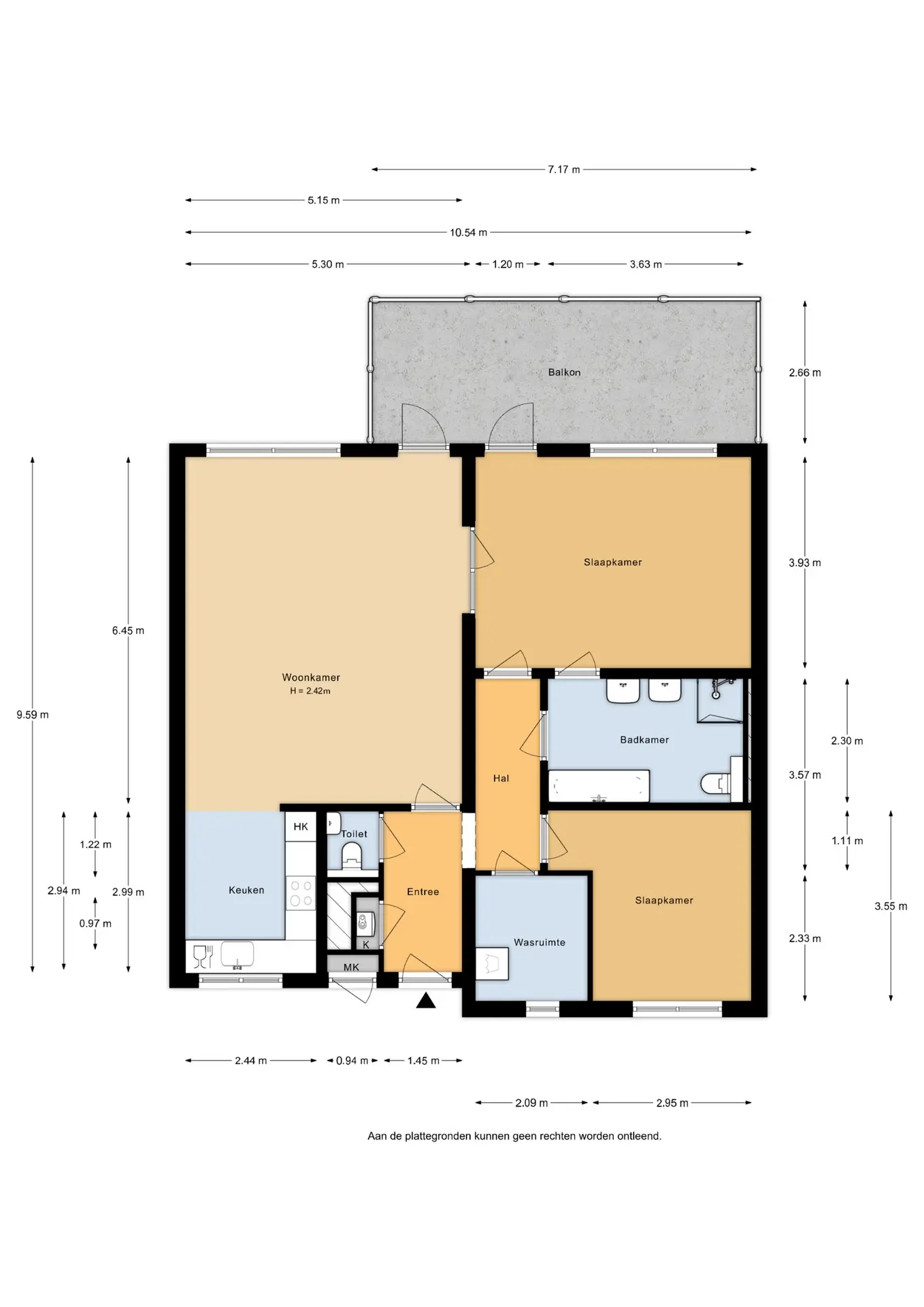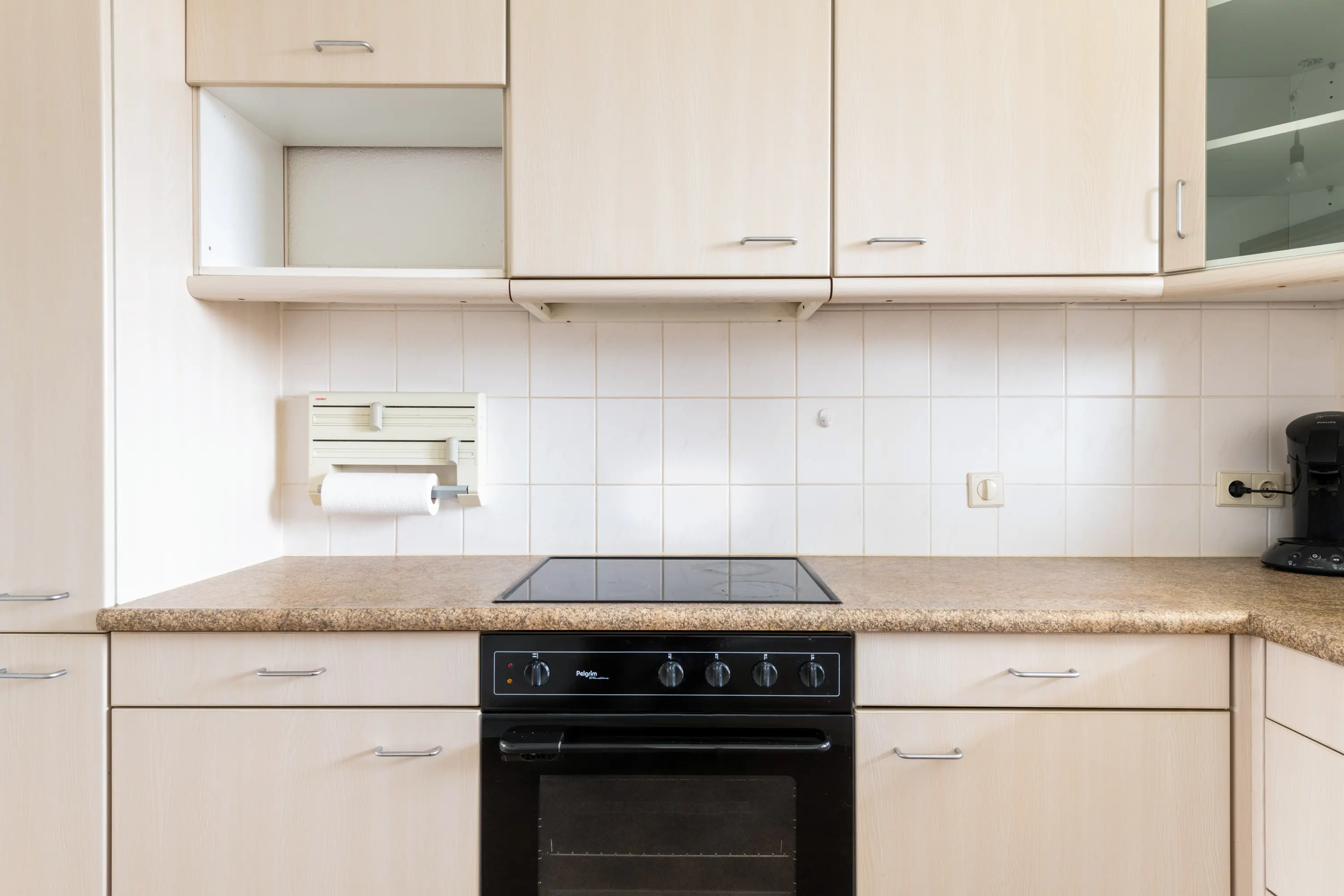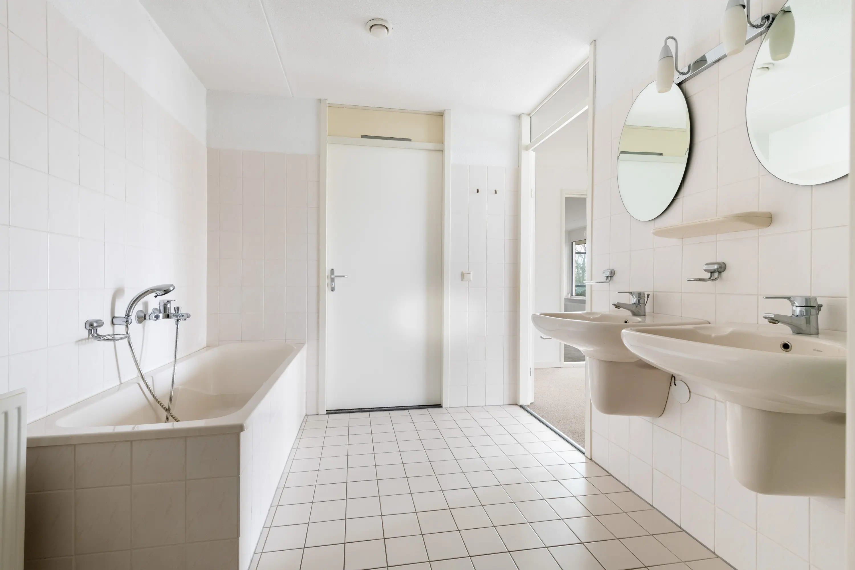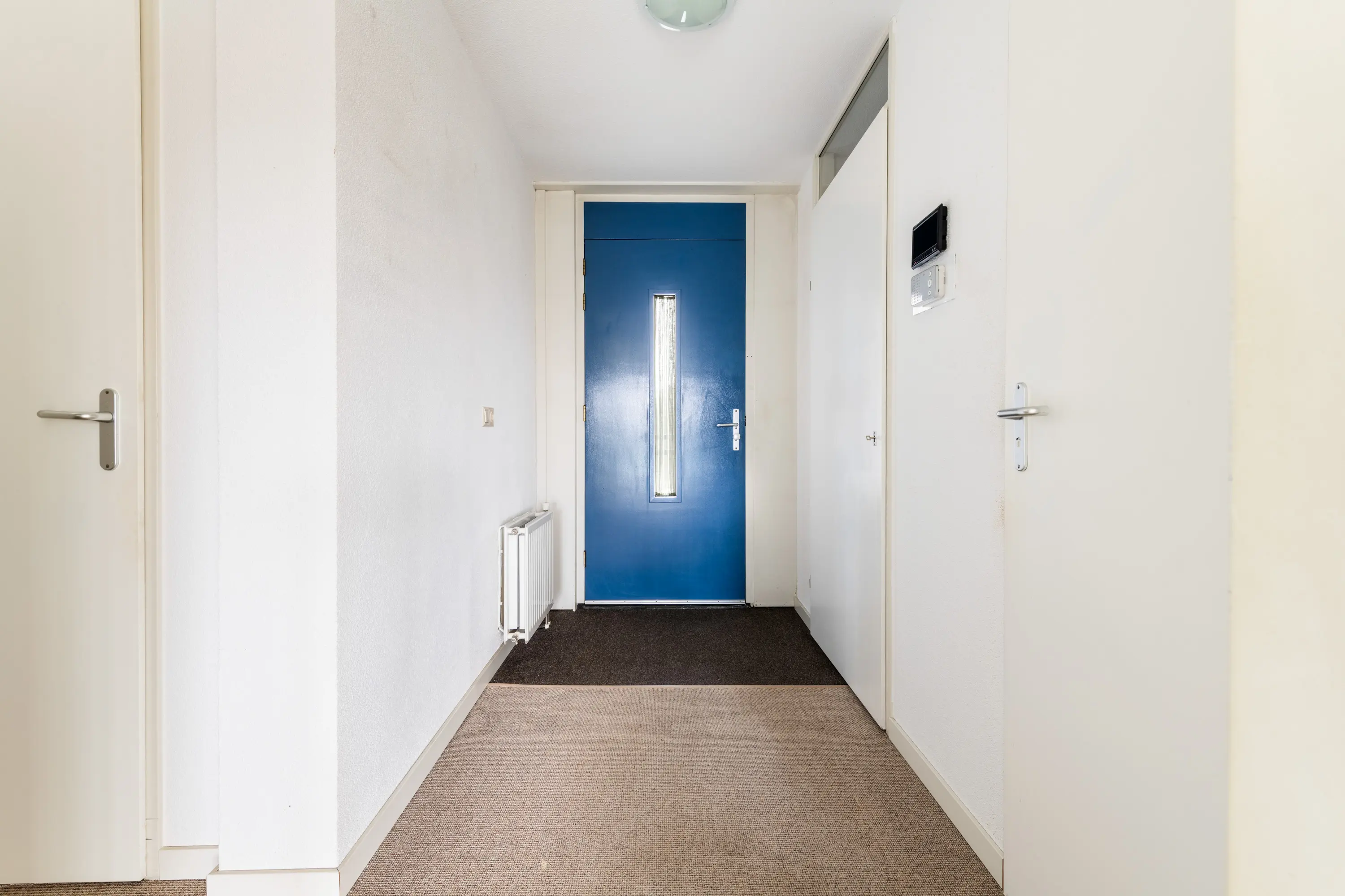 entree/hal met kast met opstelplaats van de cv ketel (2023), toilet met hangend closet en fonteintje. Royale lichte woonkamer met deur naar ruim zonnig gelegen balkon met vrij uitzicht. Open keuken met L-vormige keuken voorzien van diverse inbouwapparatuur (o.a. vaatwasser, koelkast, kookplaat, afzuigkap en oven). Twee slaapkamers waarvan 1 met toegang tot het terras. Volledig betegelde badkamer voorzien van douchecabine, ligbad, 2e toilet en twee wastafels. Berging met wasmachine- en drogeraansluiting.