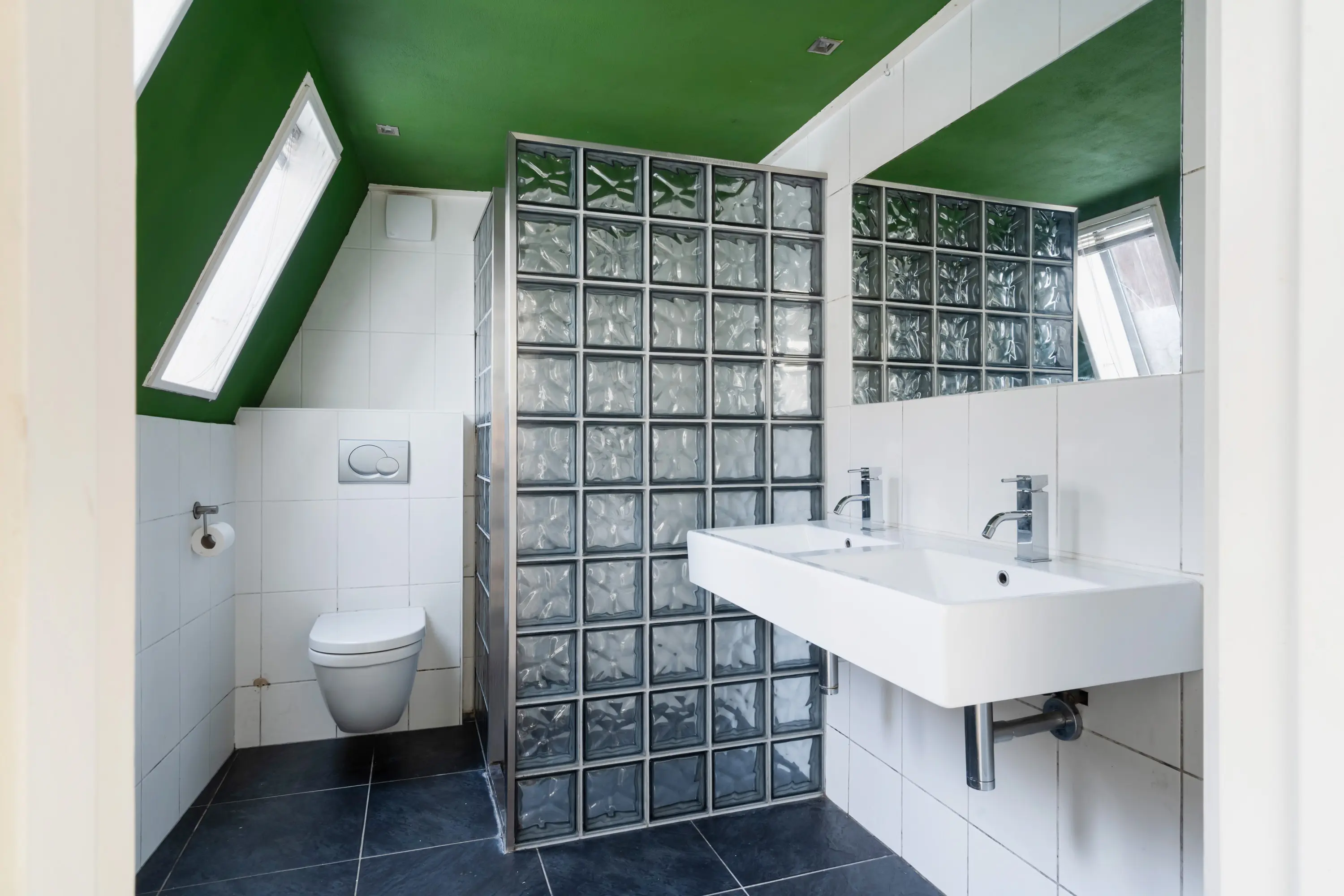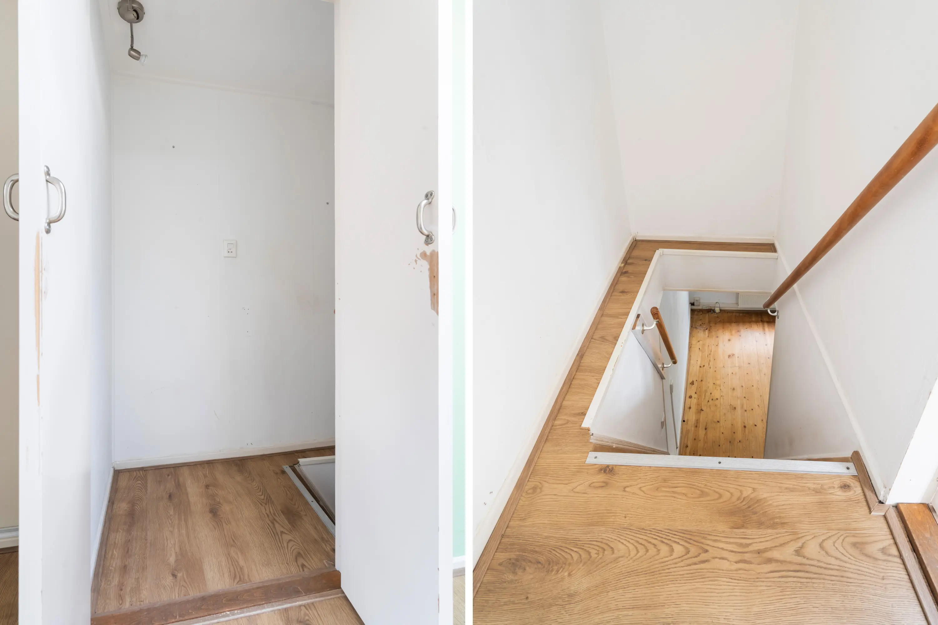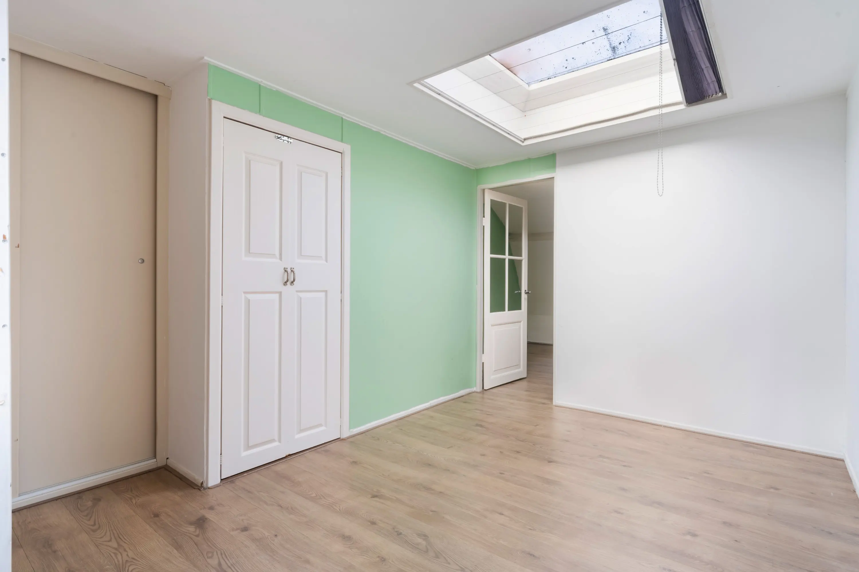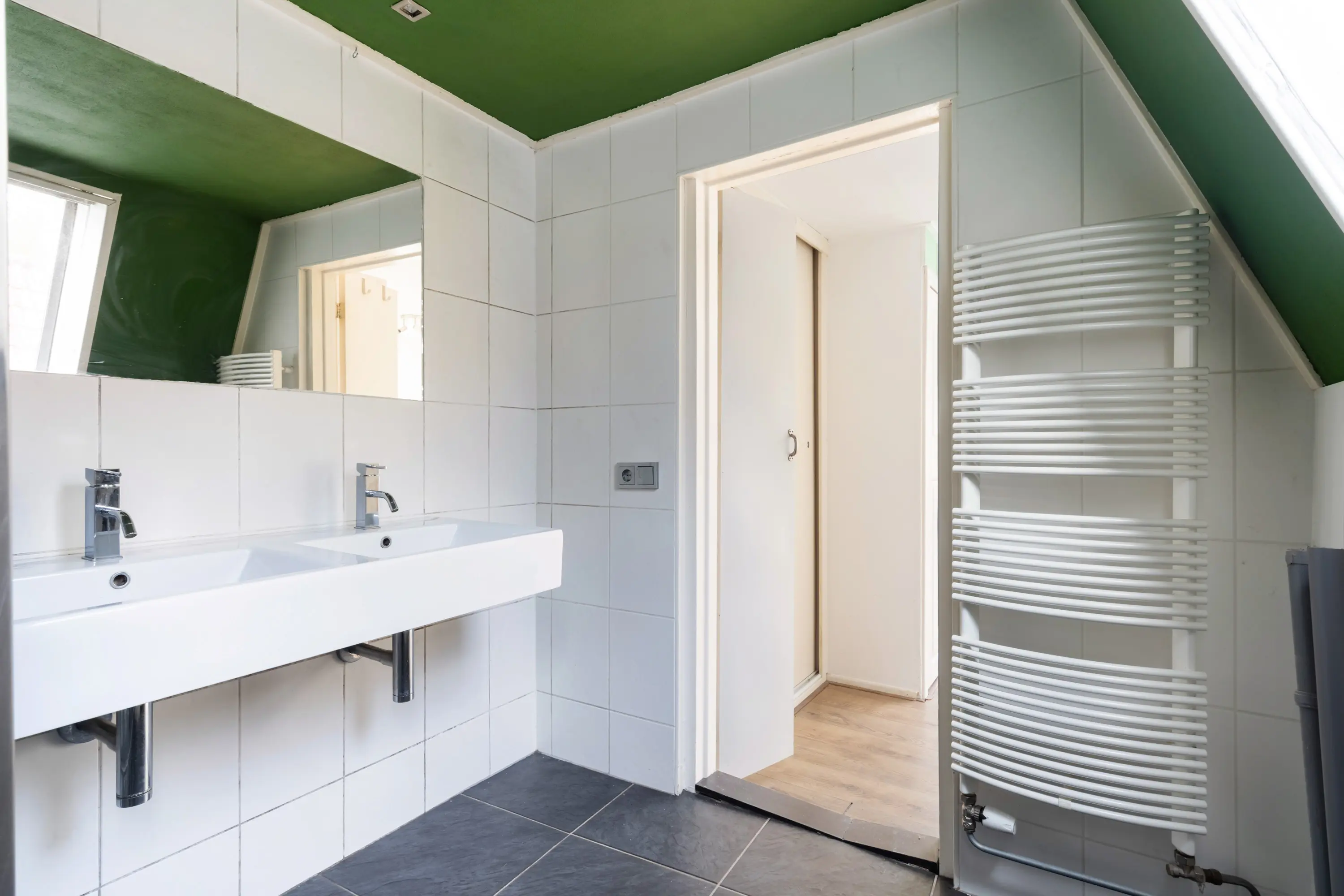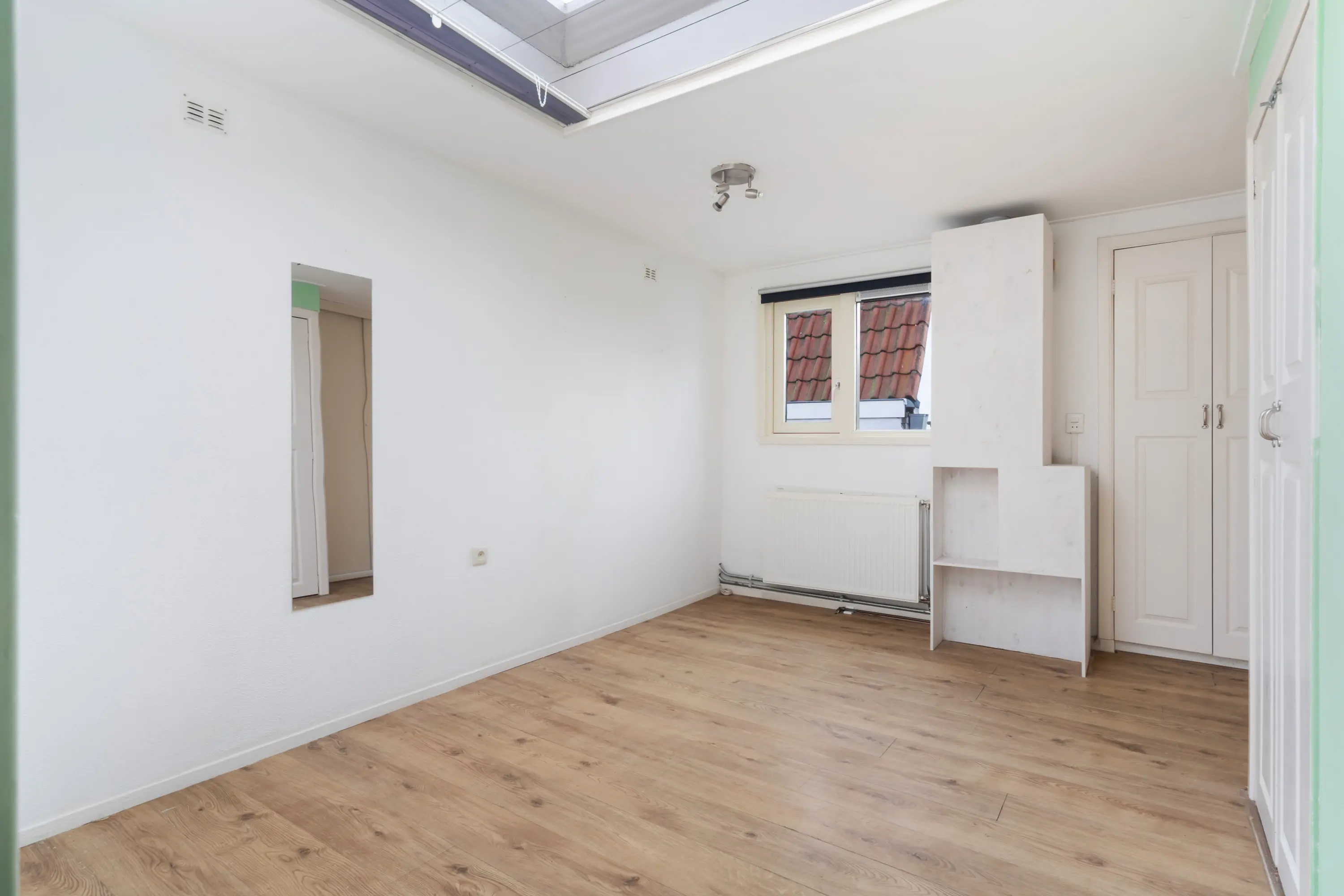 Via vaste trap vanuit de woonkamer te bereiken overloop. Royale hobbyruimte/ slaapkamer met extra lichtkoepel en vaste kast. Badkamer met inloopdouche, zwevend closet, dubbele wastafel en aansluitpunt voor wasmachine, 2e ruime slaapkamer met dakkapel.