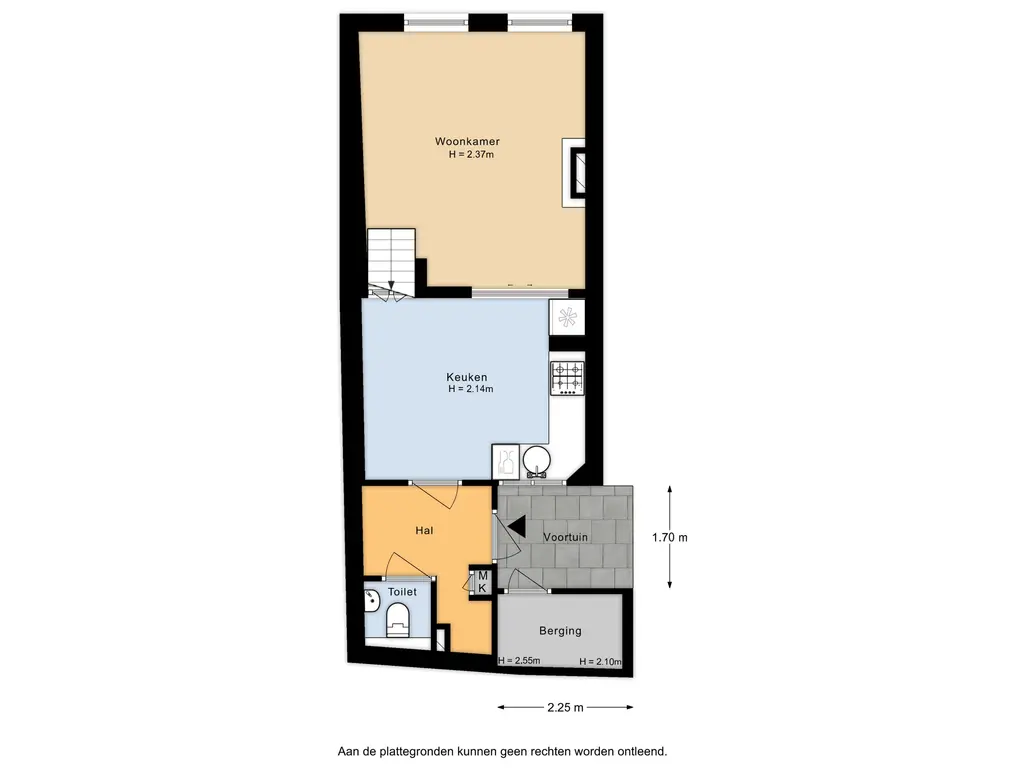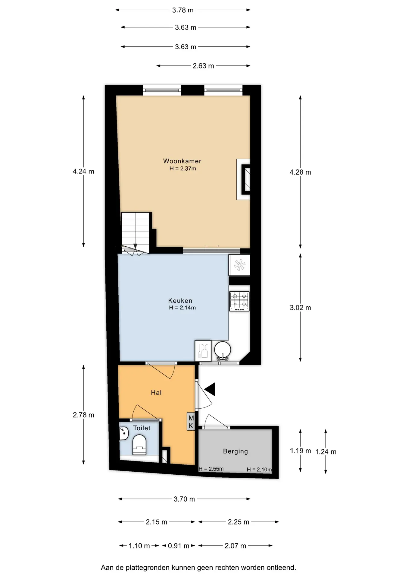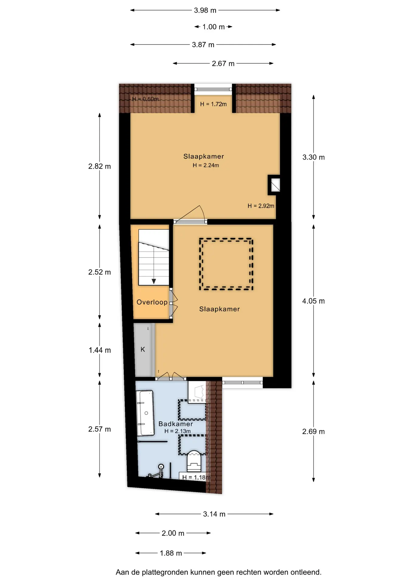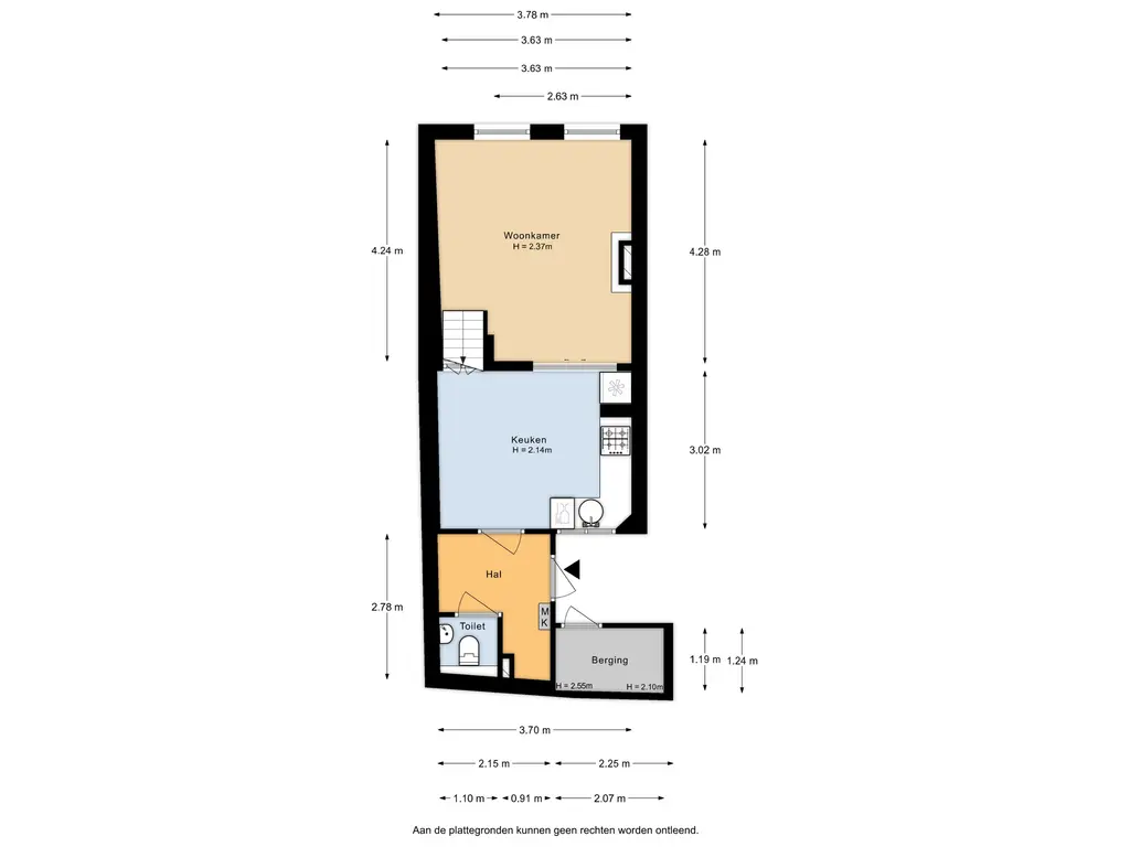 - Inhoud woonhuis 228m³, woonoppervlakte 66m², perceeloppervlakte 42m² eigen grond.