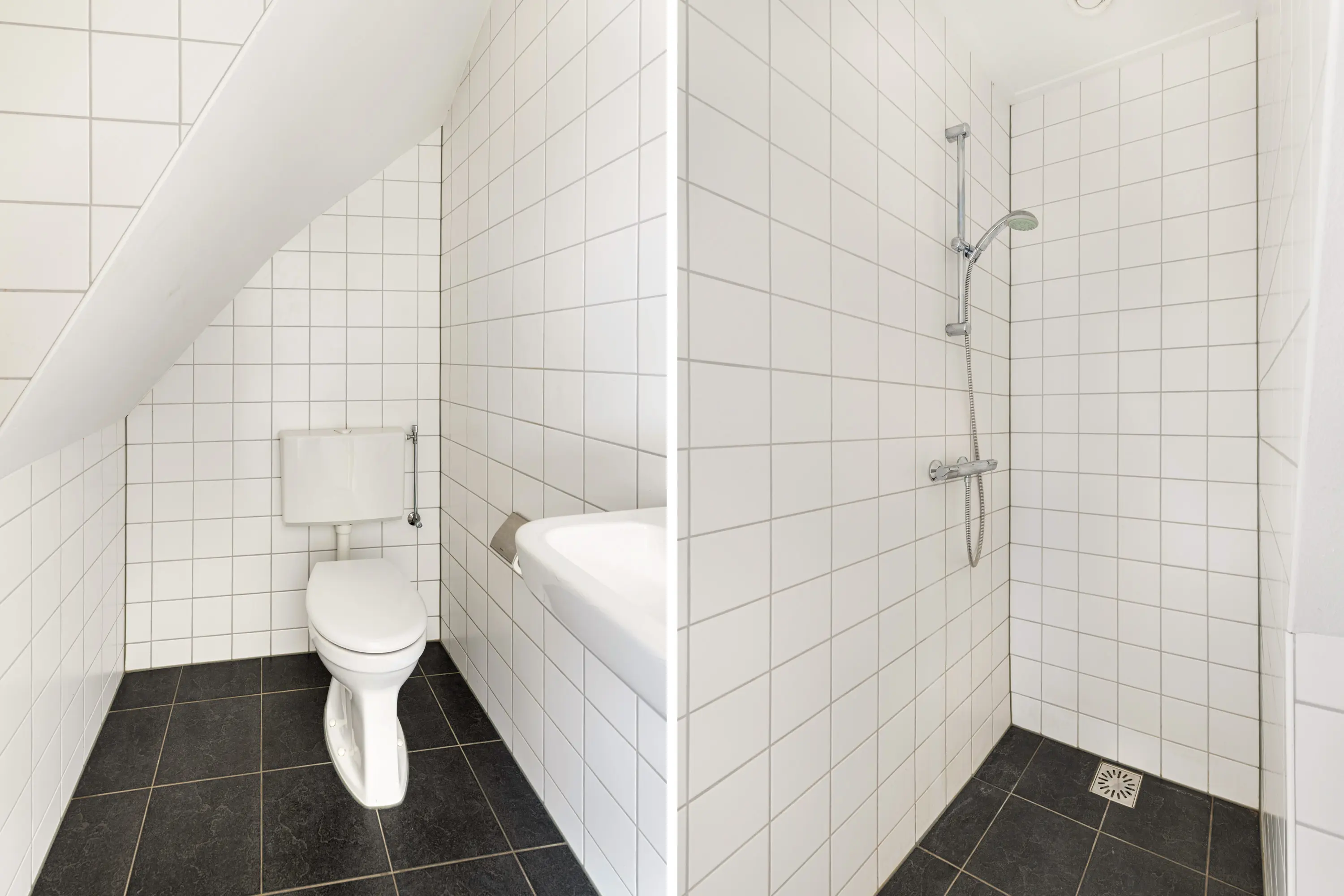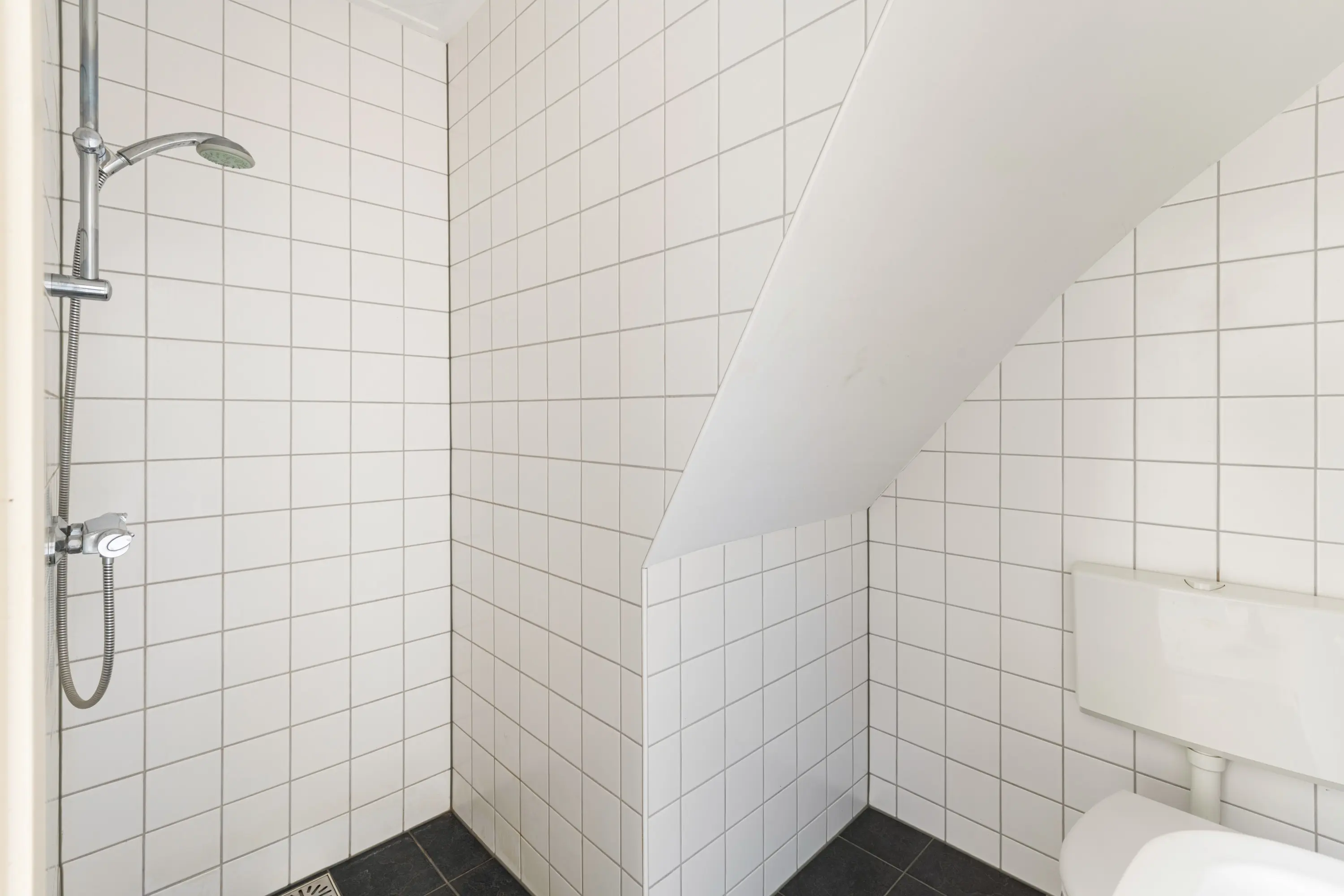 De slaapkamer is rustig gelegen aan de achterzijde van de woning. De badkamer is functioneel ingericht en voorzien van een douche, wastafel en toilet.