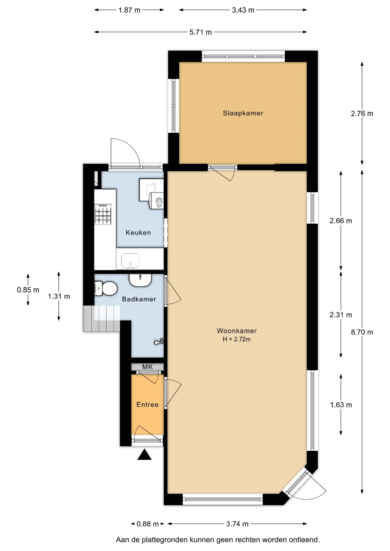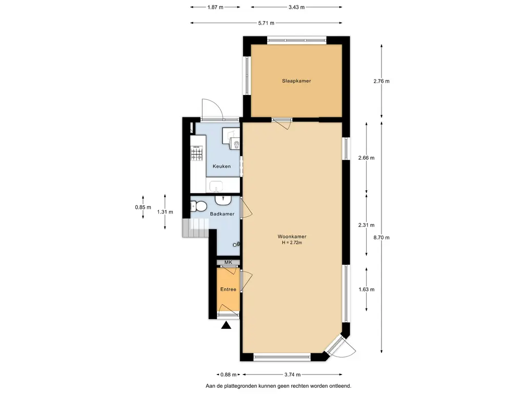 - Gebruiksoppervlakte: ca. 53 m²