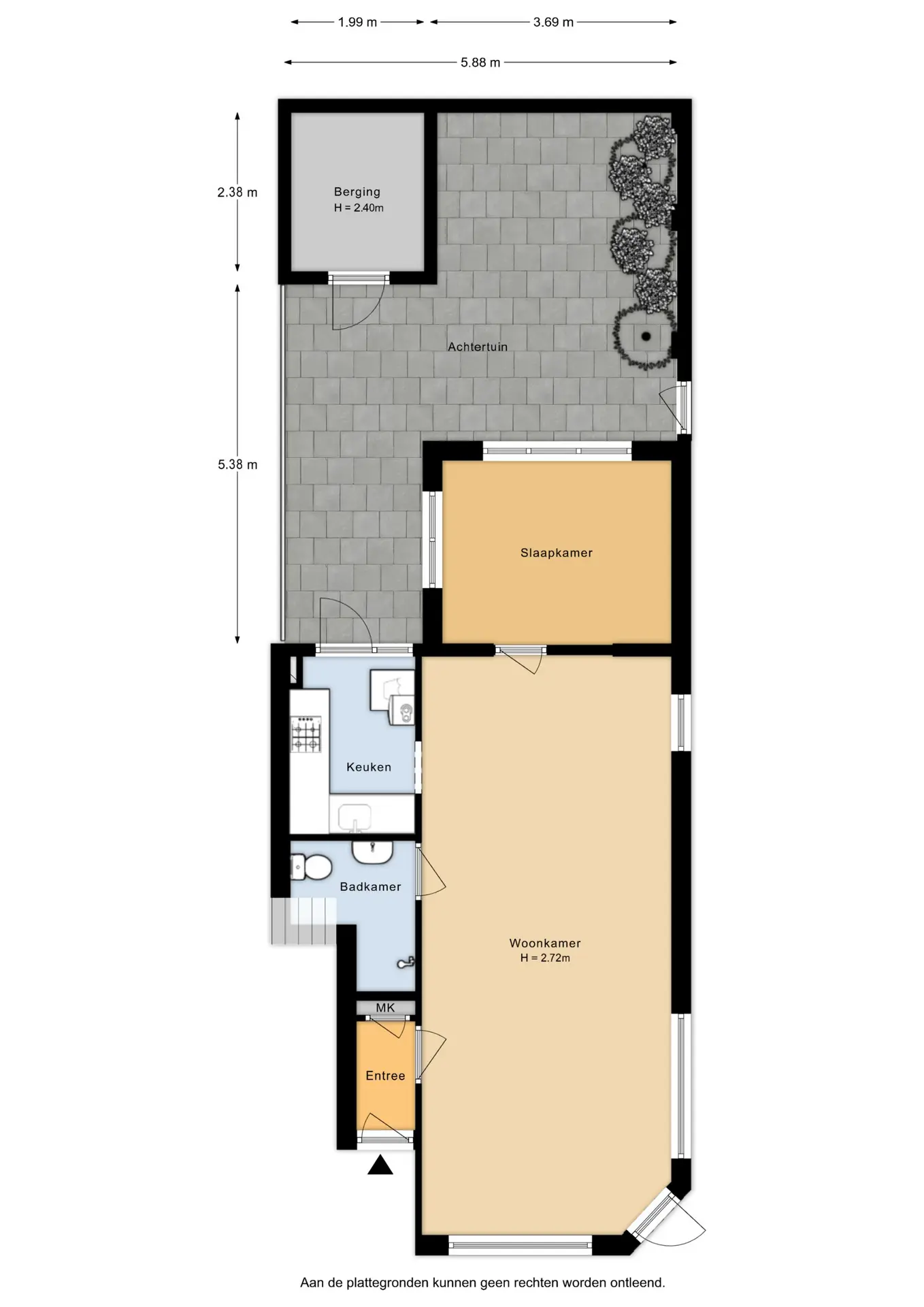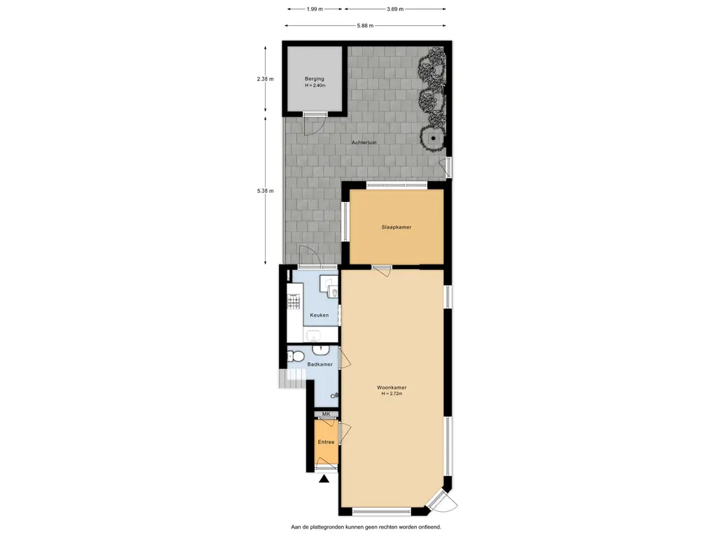 - Tuin op het noordwesten met achterom en schuur