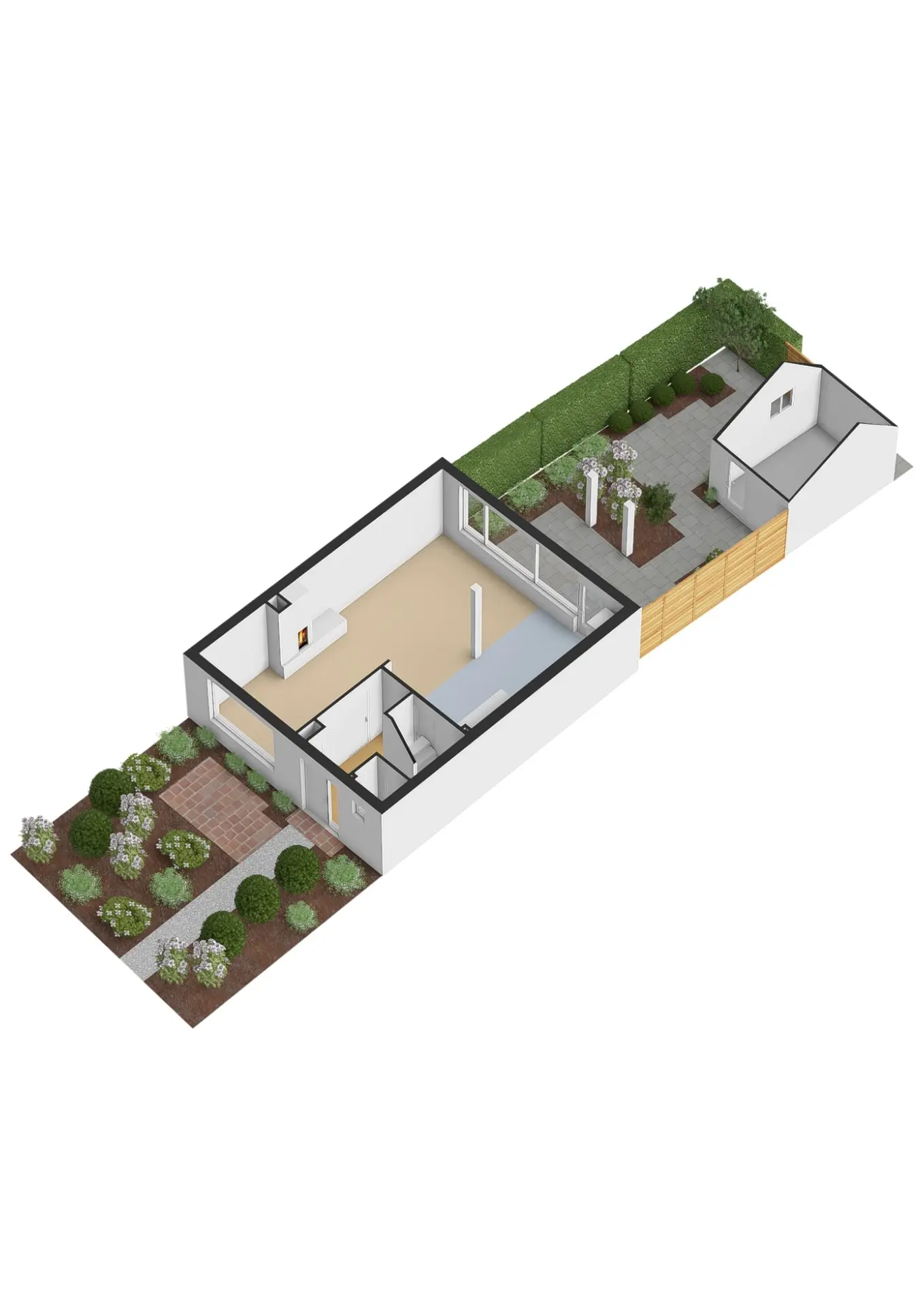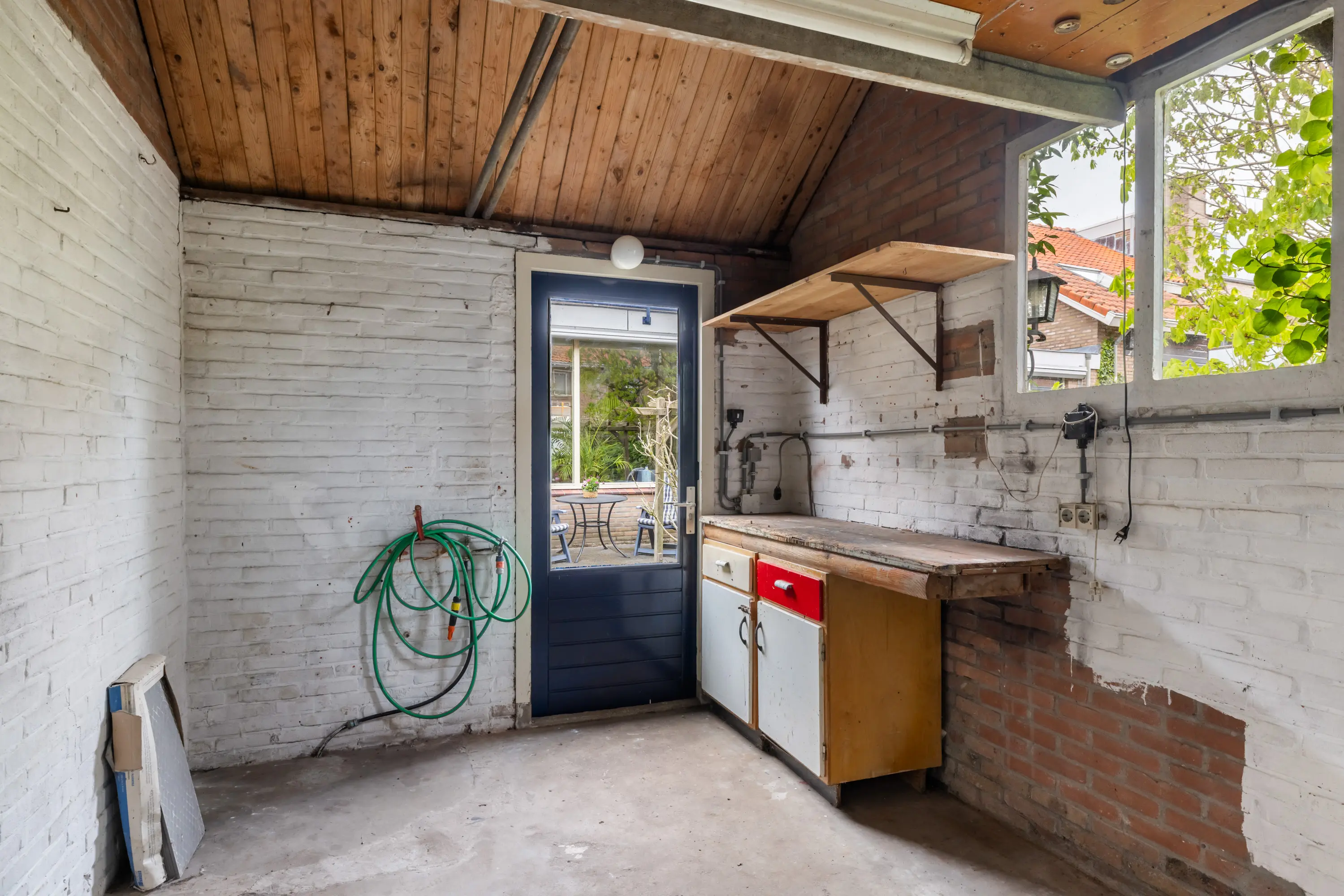 De woning beschikt over een voortuin en een heerlijk zonnige achtertuin van circa 10 meter diep en breed, gelegen op het zuiden. De tuin is bereikbaar via een achterom en beschikt over een ruime vrijstaande stenen berging met elektra en wateraansluiting.