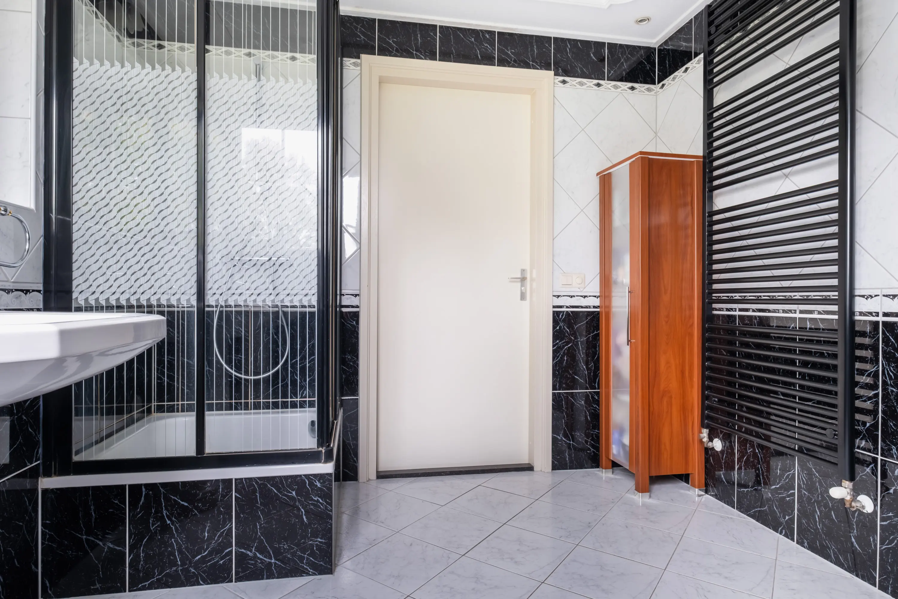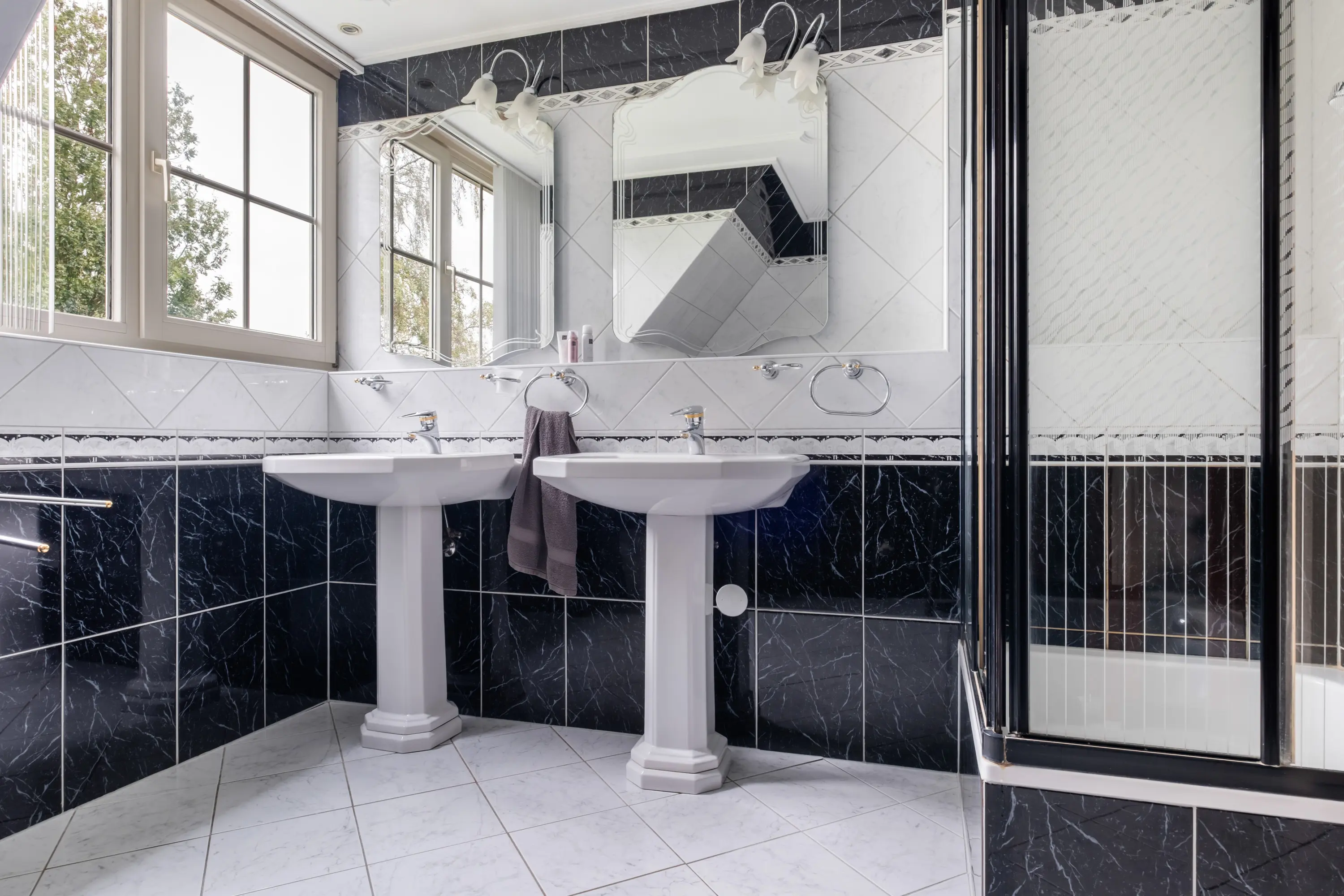 De overloop geeft toegang tot drie slaapkamers via de achterste slaapkamer komt je bij nog twee slaapkamers waarvan 1 ook via een vaste trap te bereiken is, de volledig betegelde badkamer is uitgerust met een douchecabine met diepe douchebak, dubbele wastafel en tweede hangtoilet.
