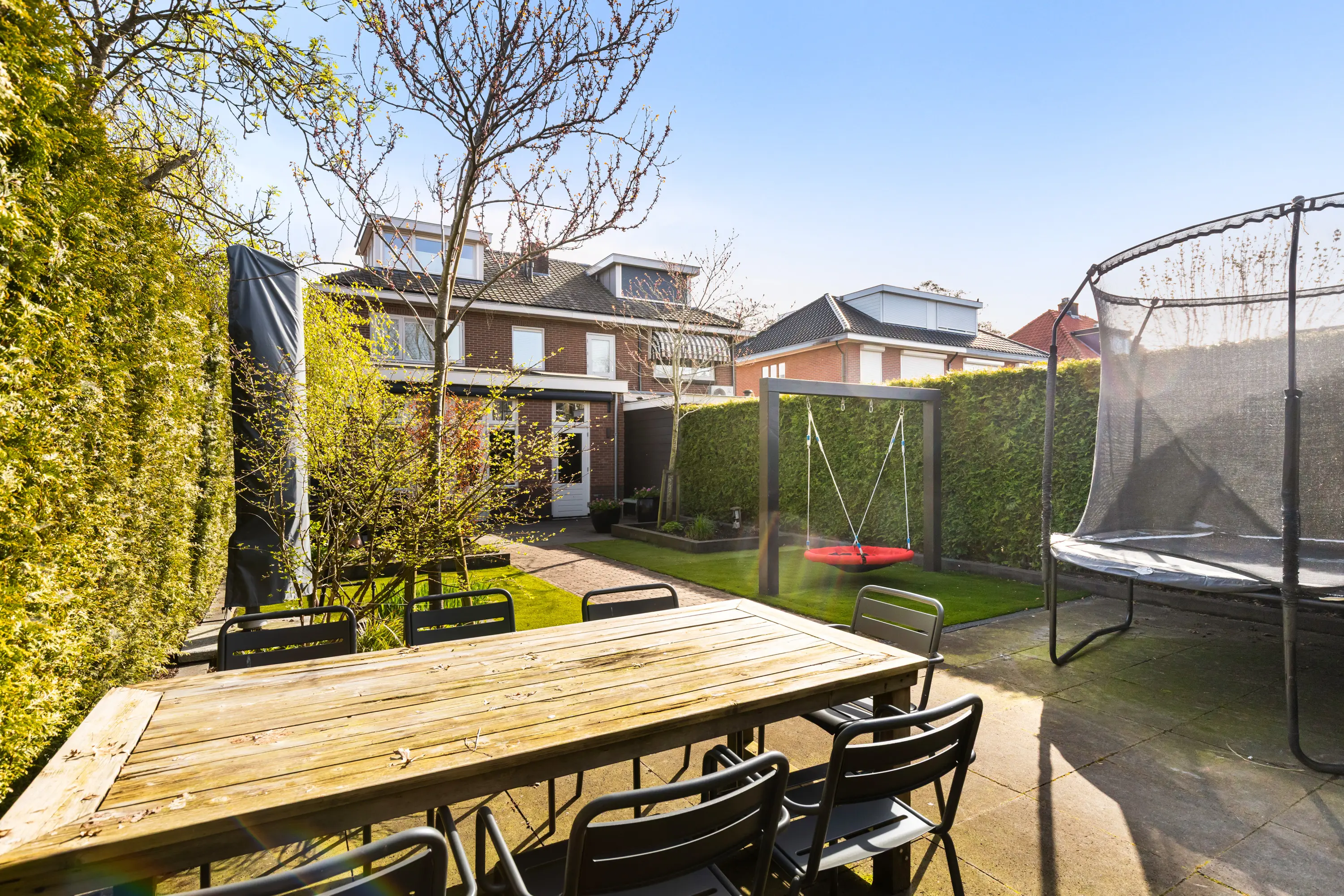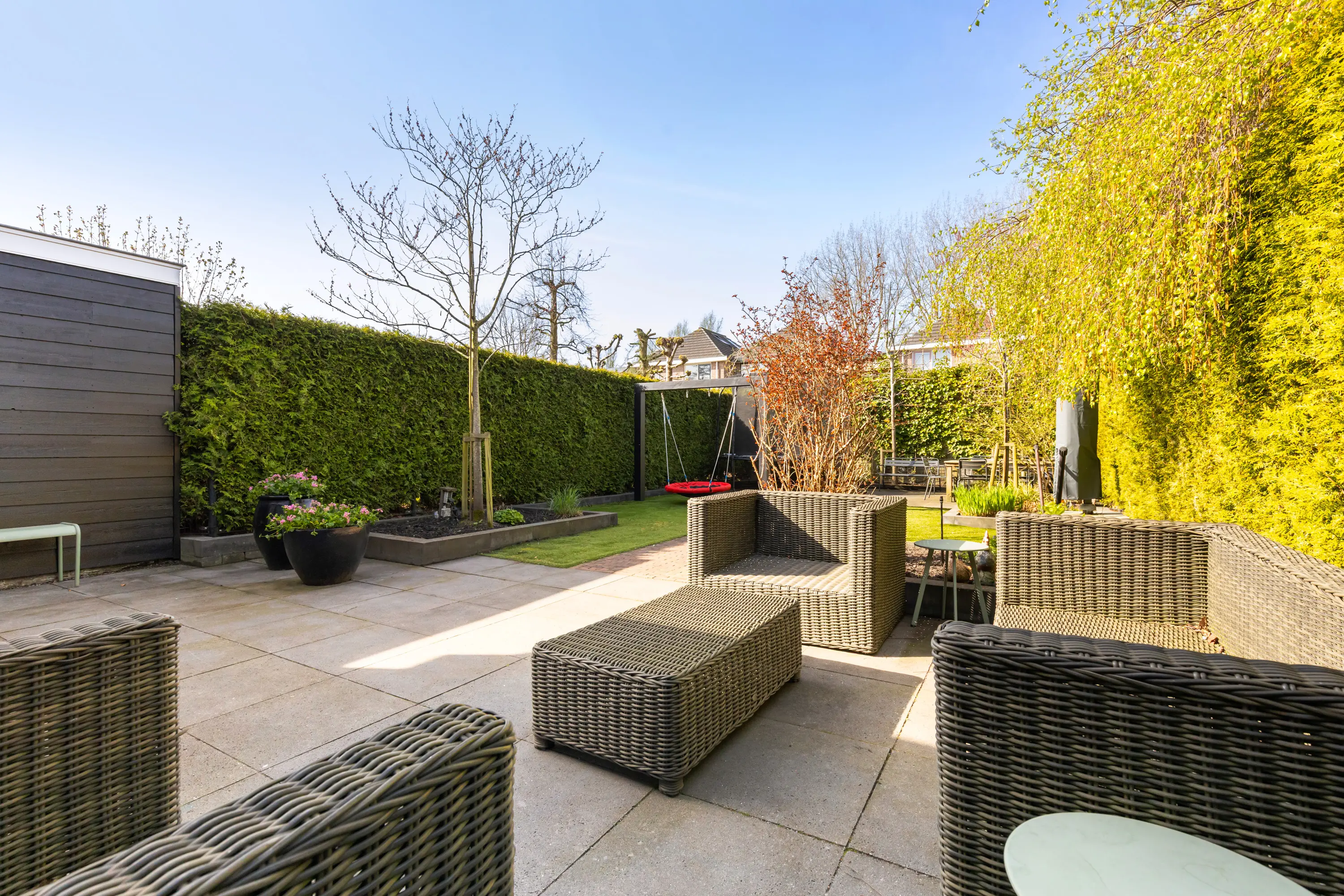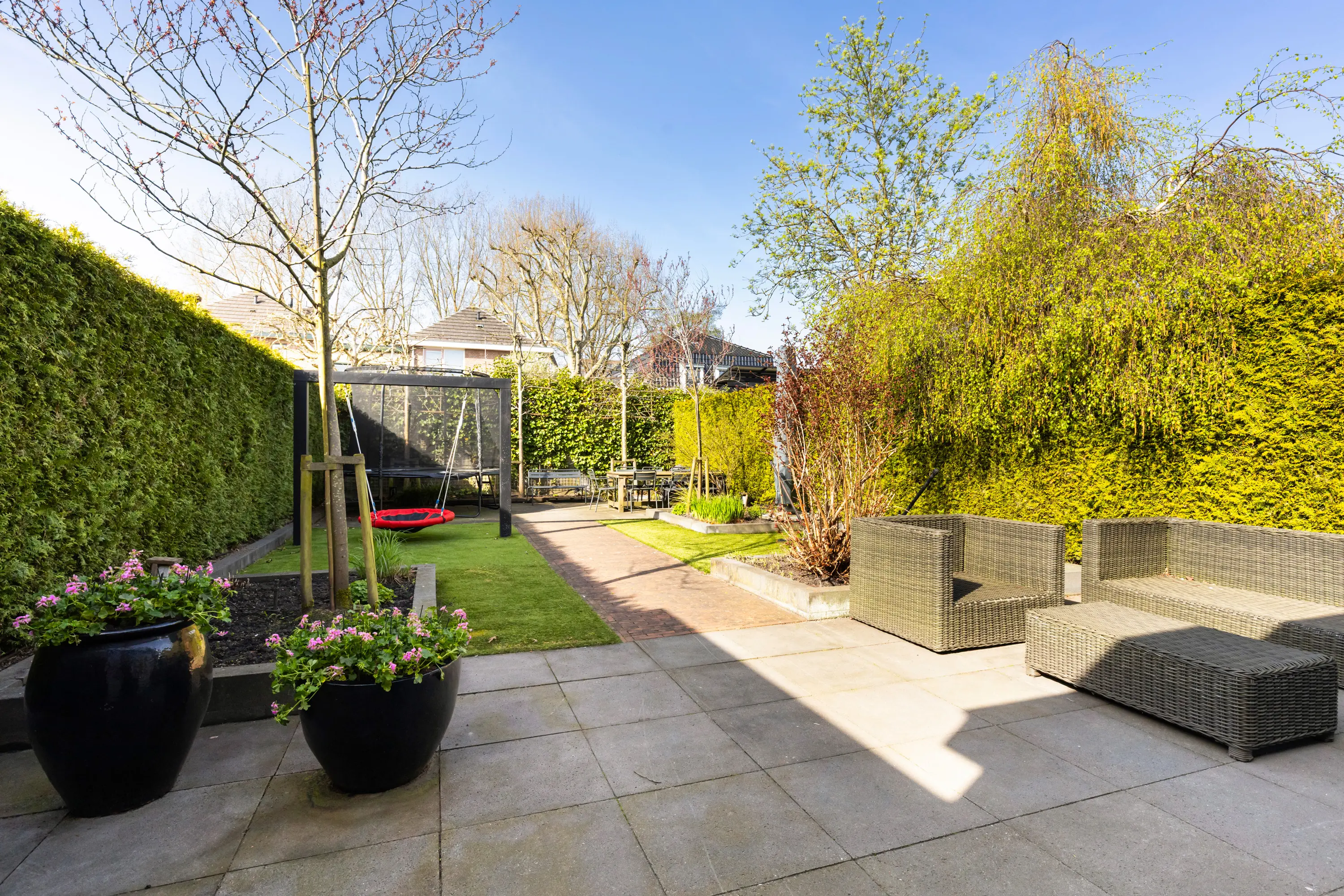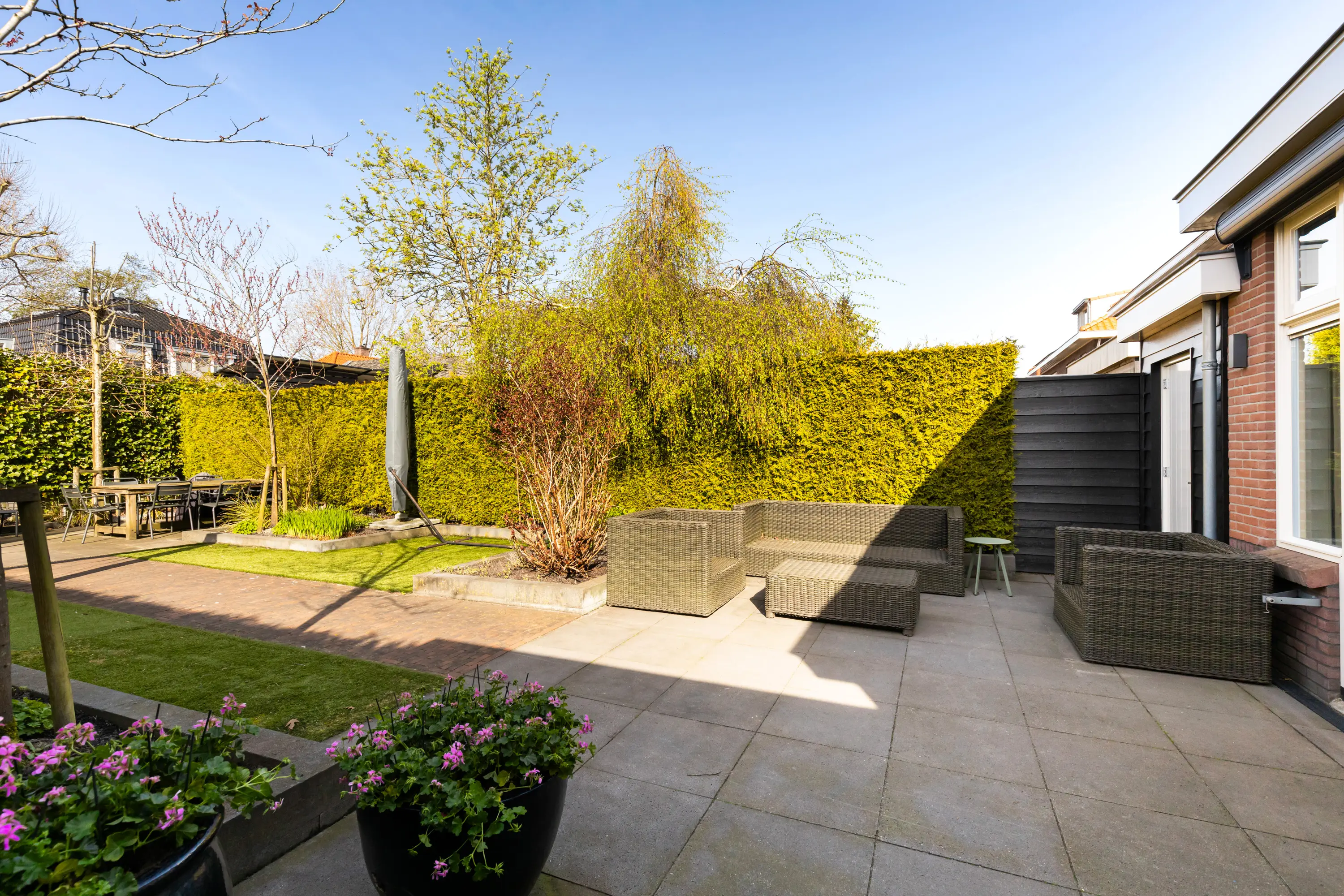 - Zonnige tuin op het zuidwesten met beregeningsinstallatie en veel privacy