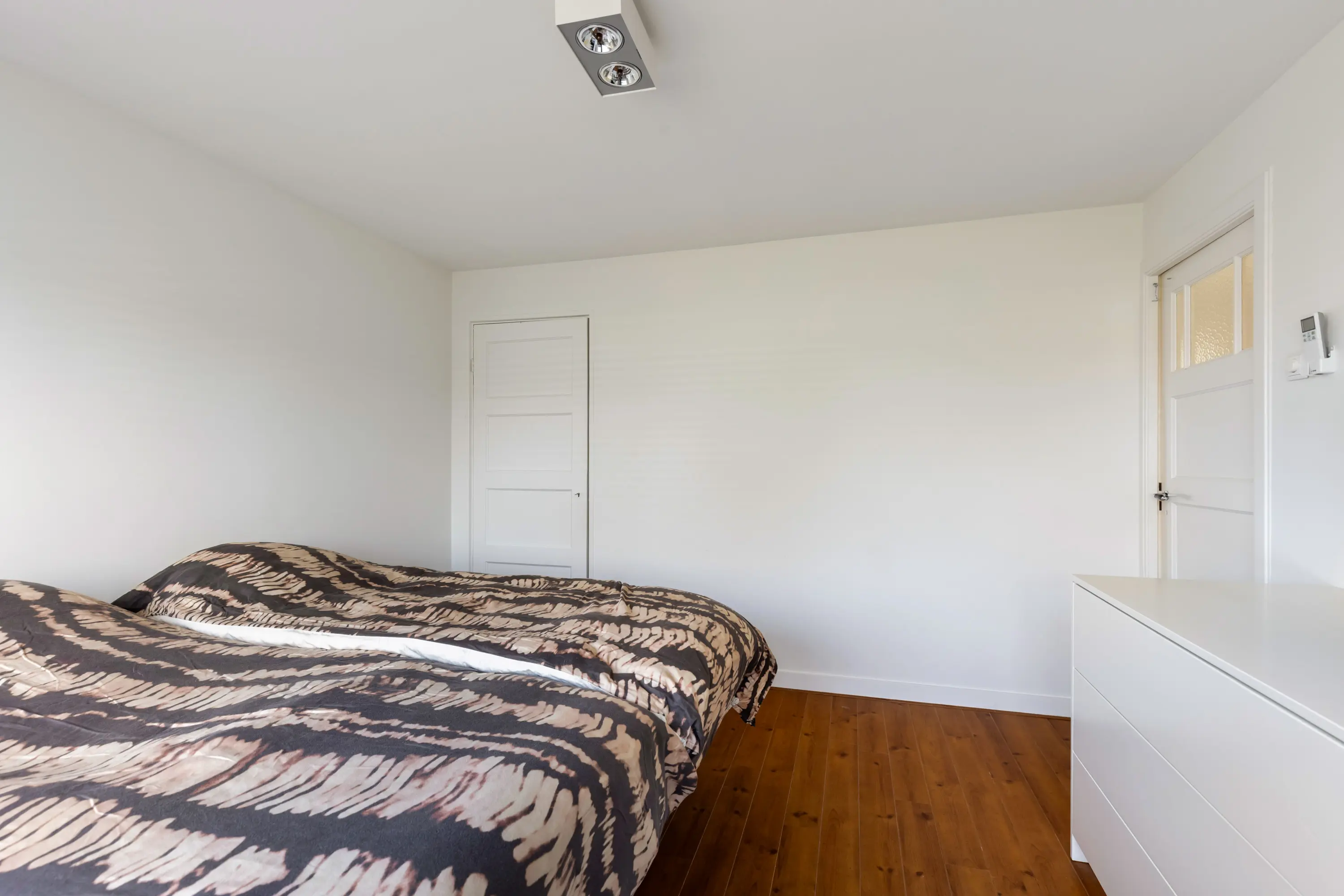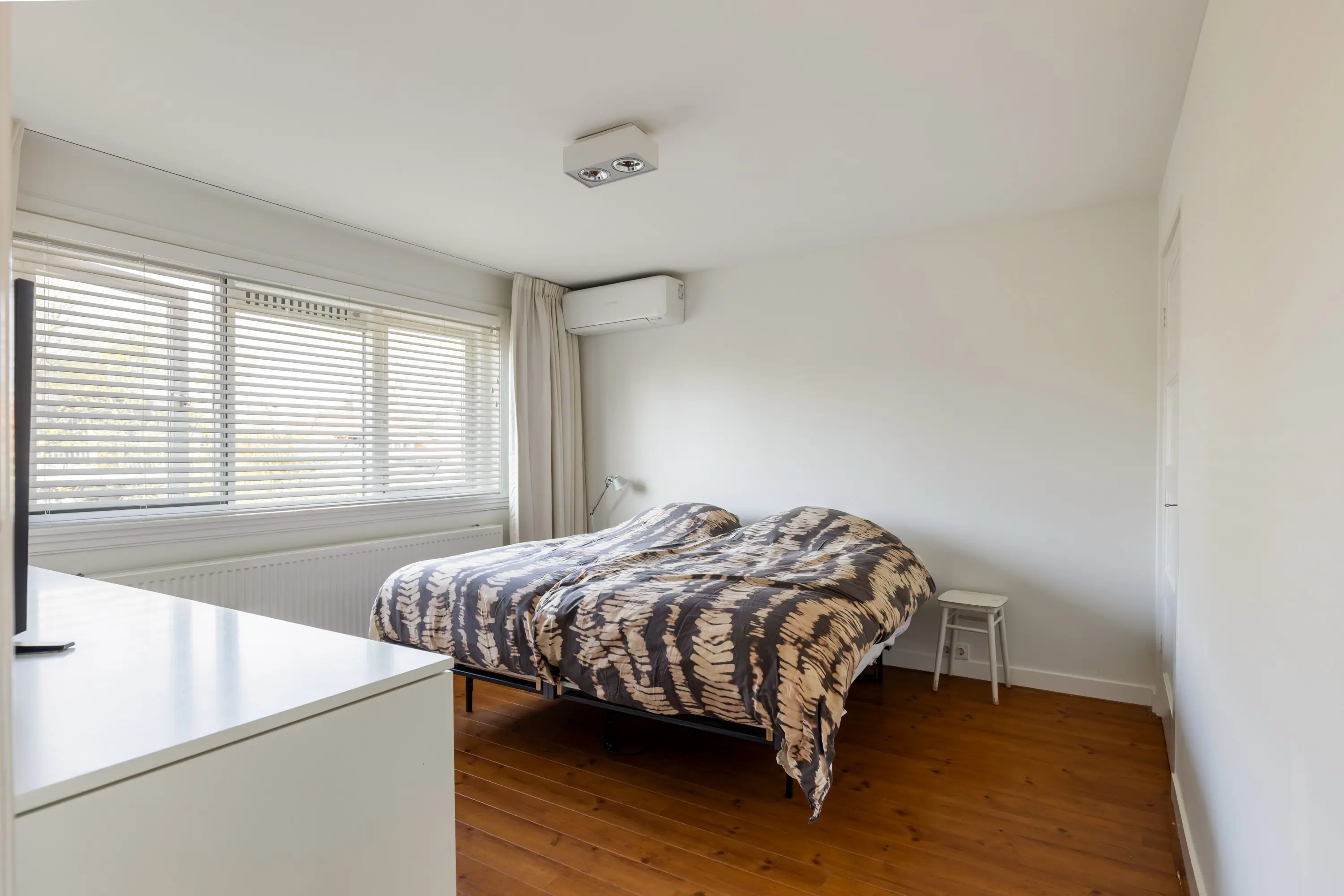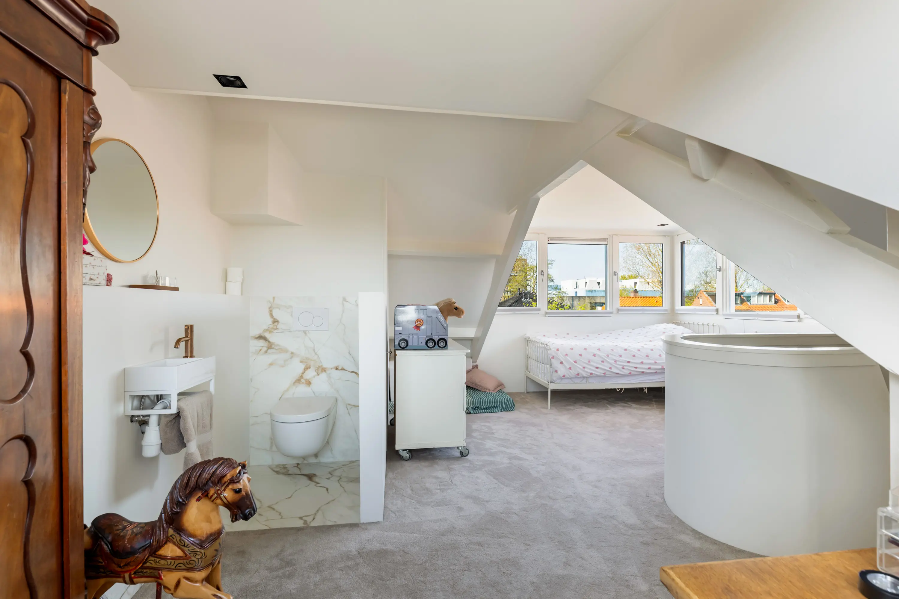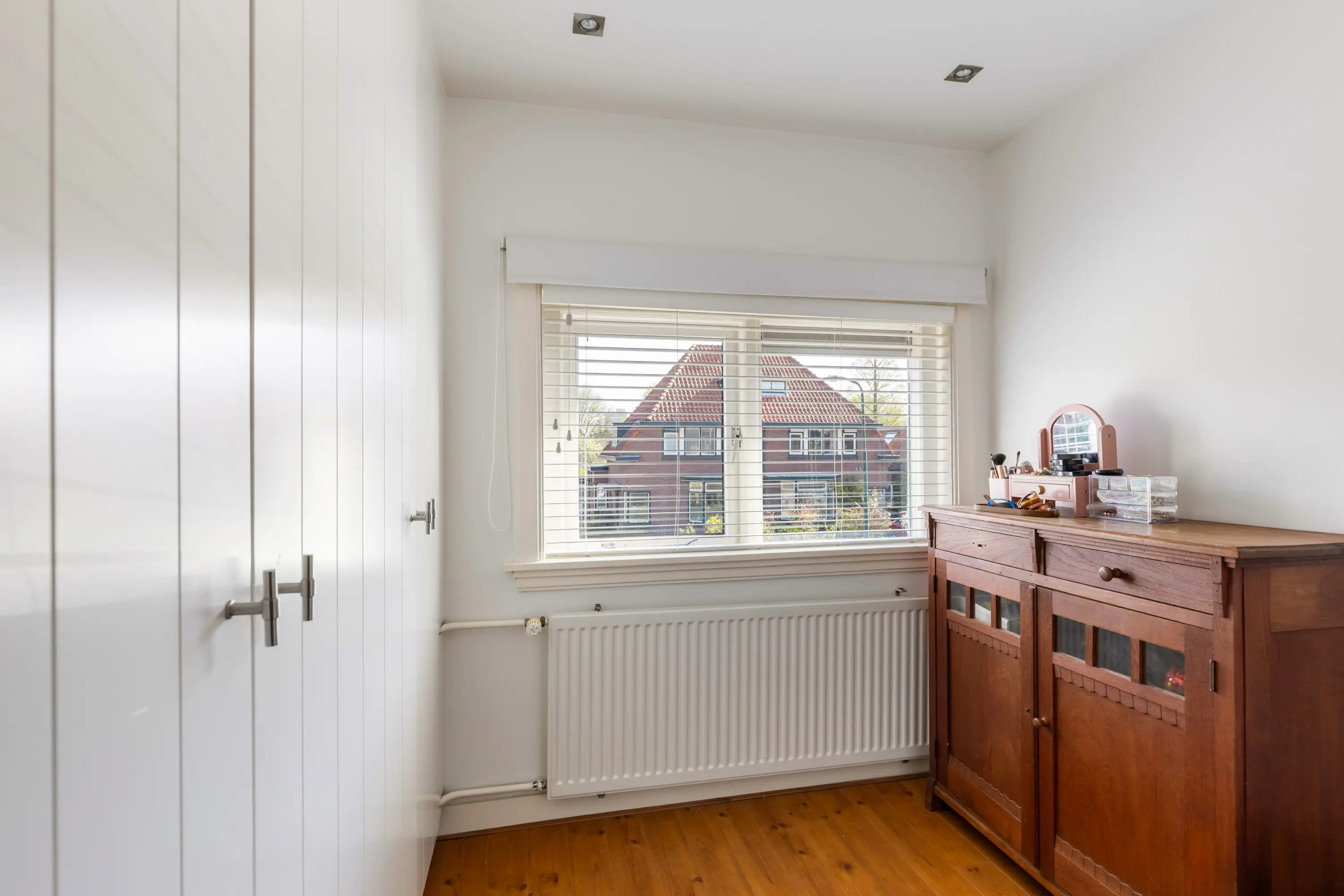 De tweede verdieping biedt een ruime vierde slaapkamer met inbouwkasten, wastafel en extra toilet — ideaal als master bedroom, werkruimte of logeerkamer.