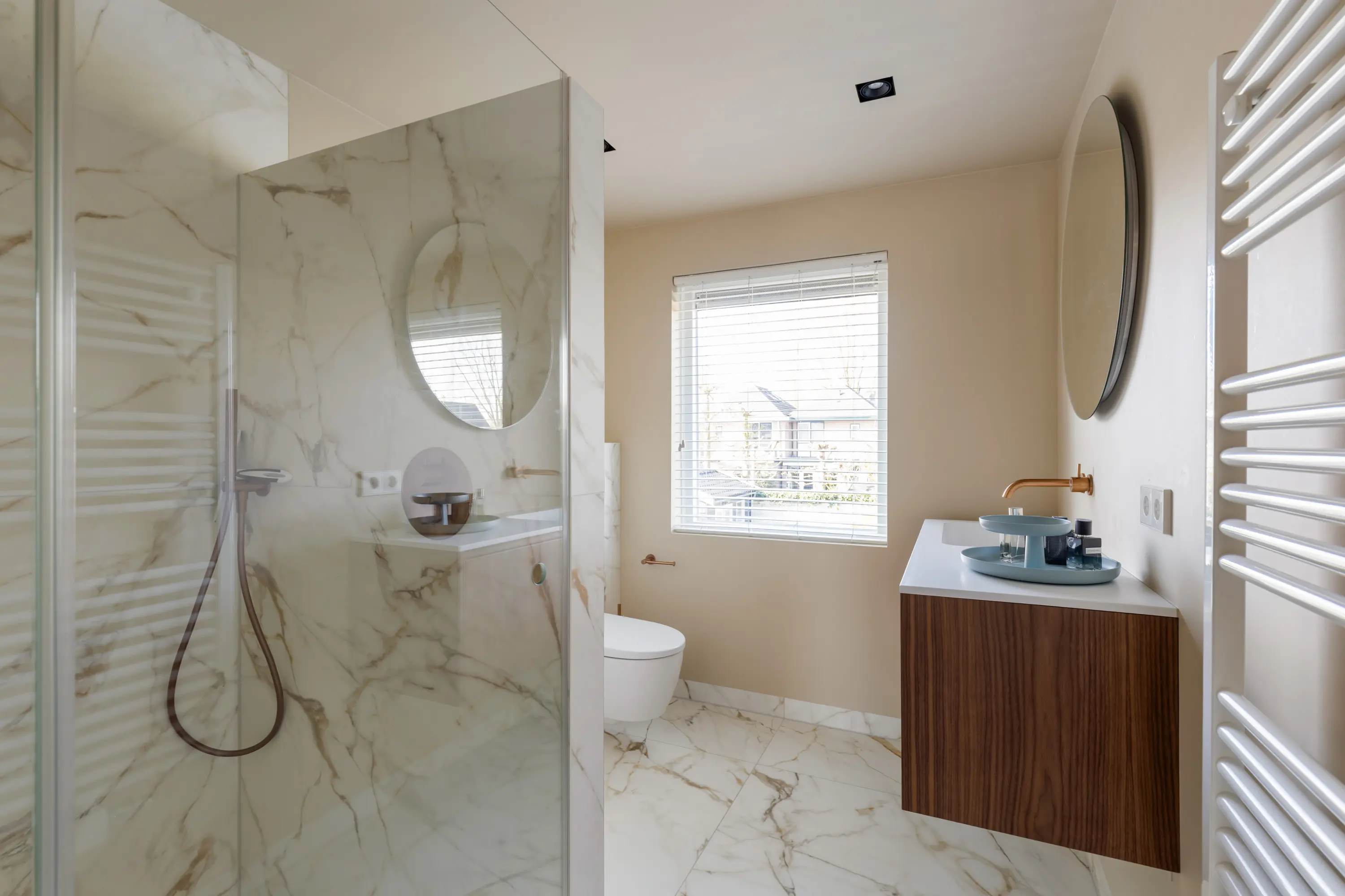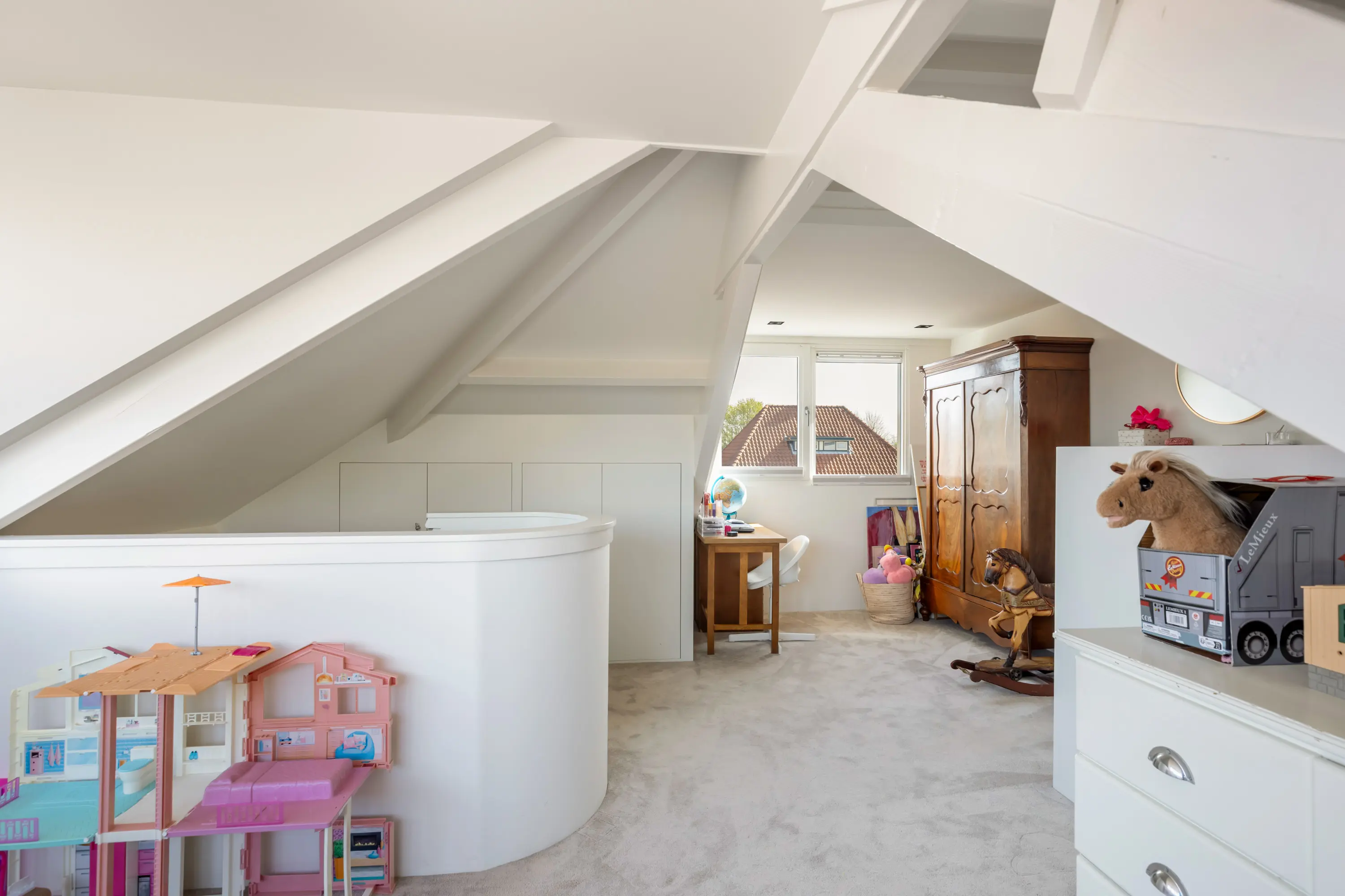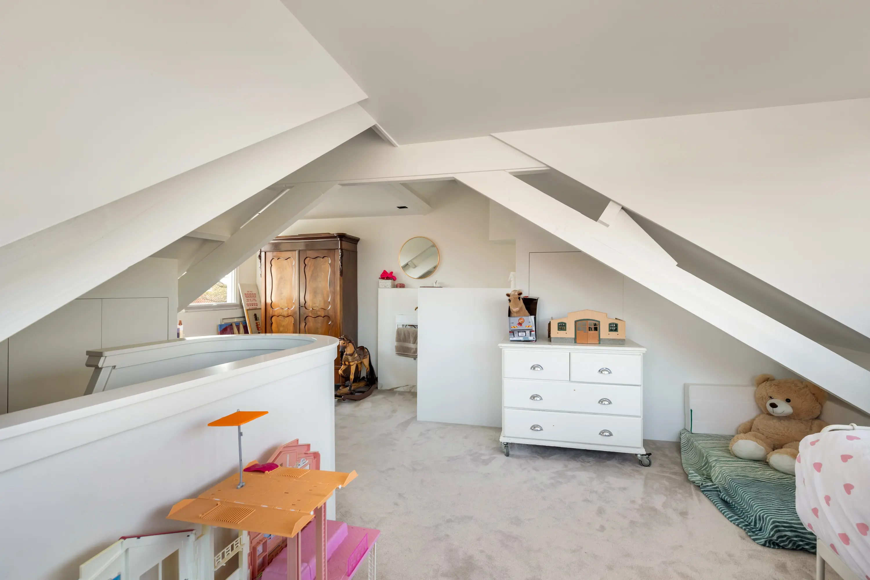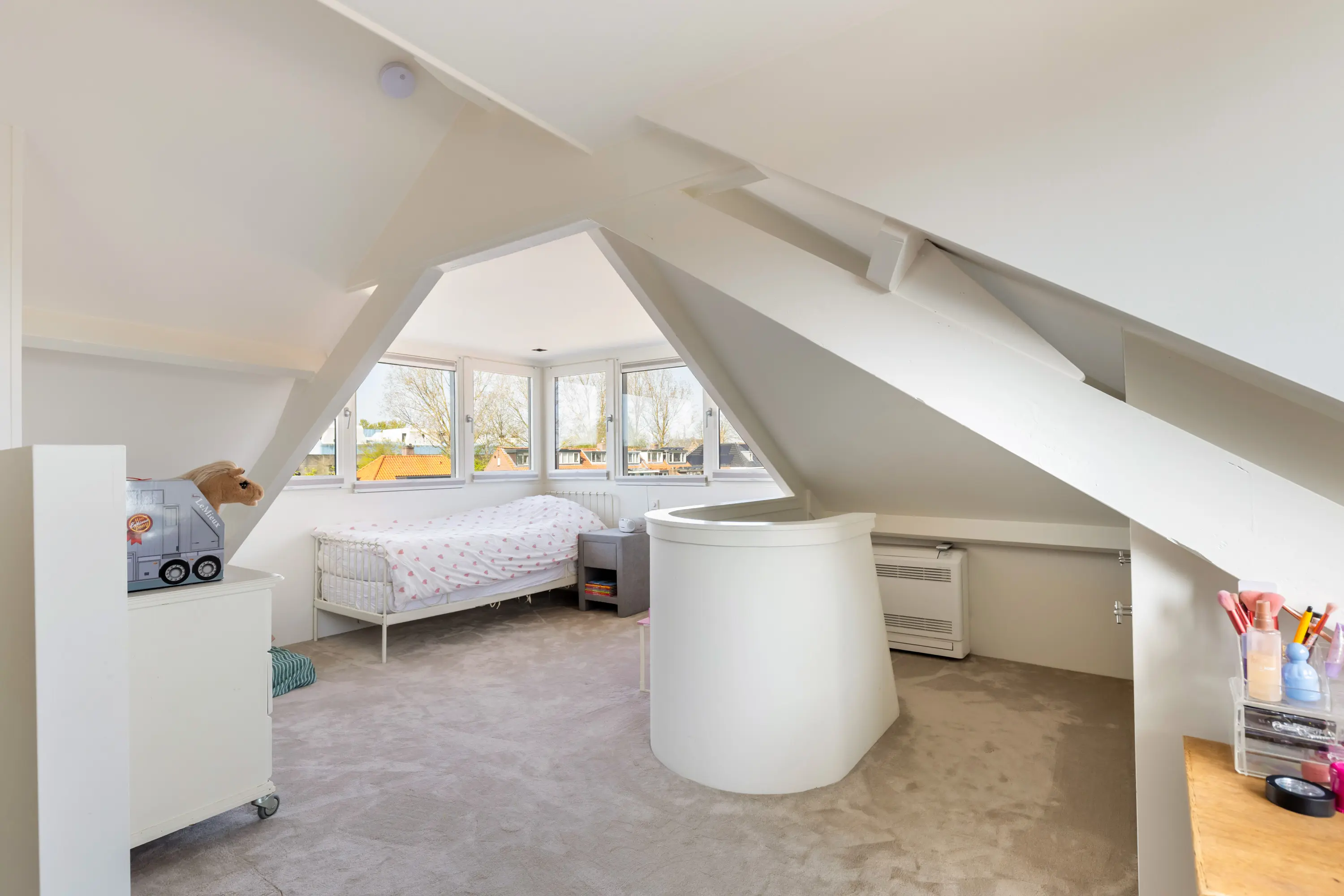 De tweede verdieping biedt een ruime vierde slaapkamer met inbouwkasten, wastafel en extra toilet — ideaal als master bedroom, werkruimte of logeerkamer.