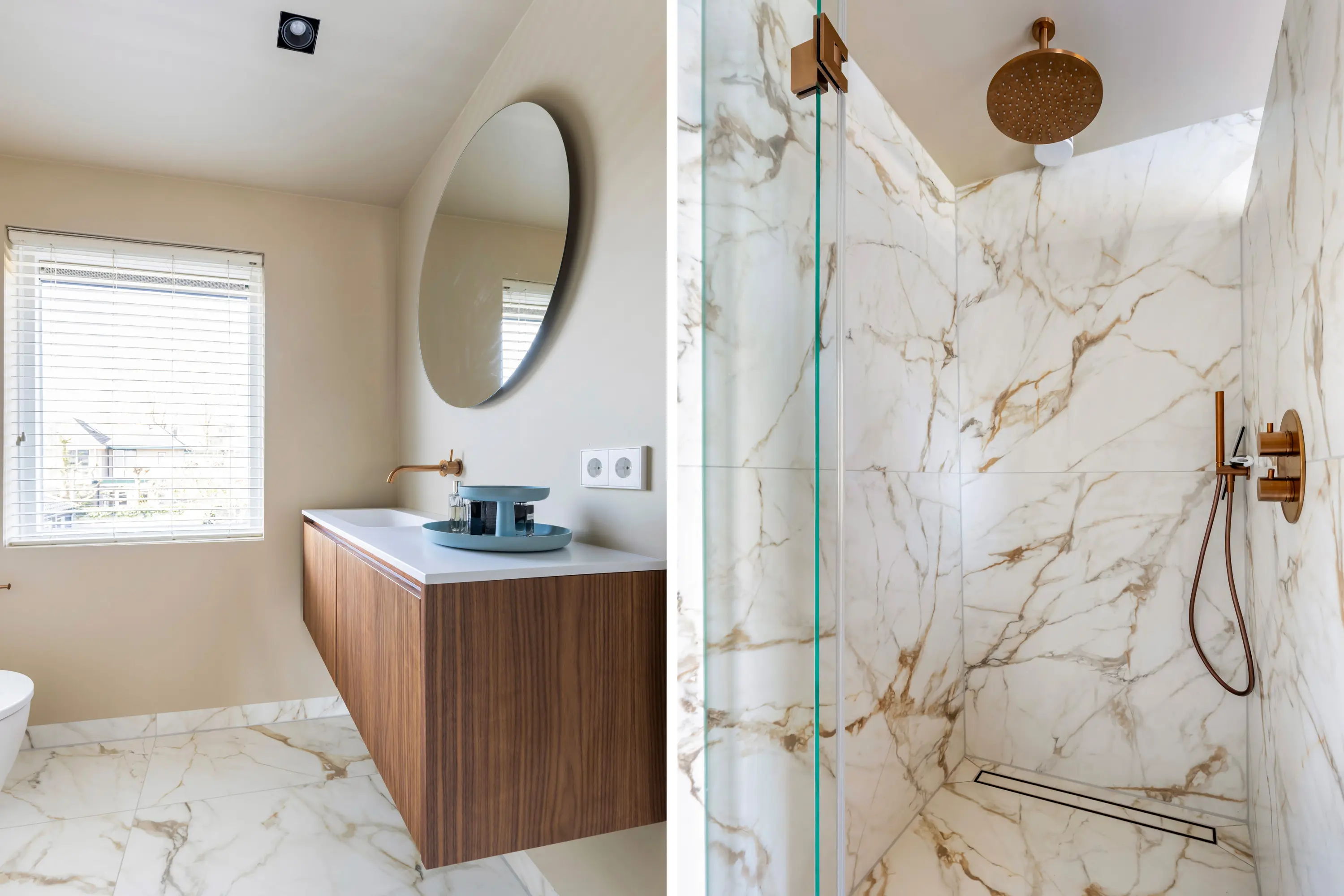 Op de eerste verdieping bevinden zich drie slaapkamers en een zeer recent vernieuwde moderne badkamer met vloerverwarming, inloopdouche, wastafelmeubel en toilet.