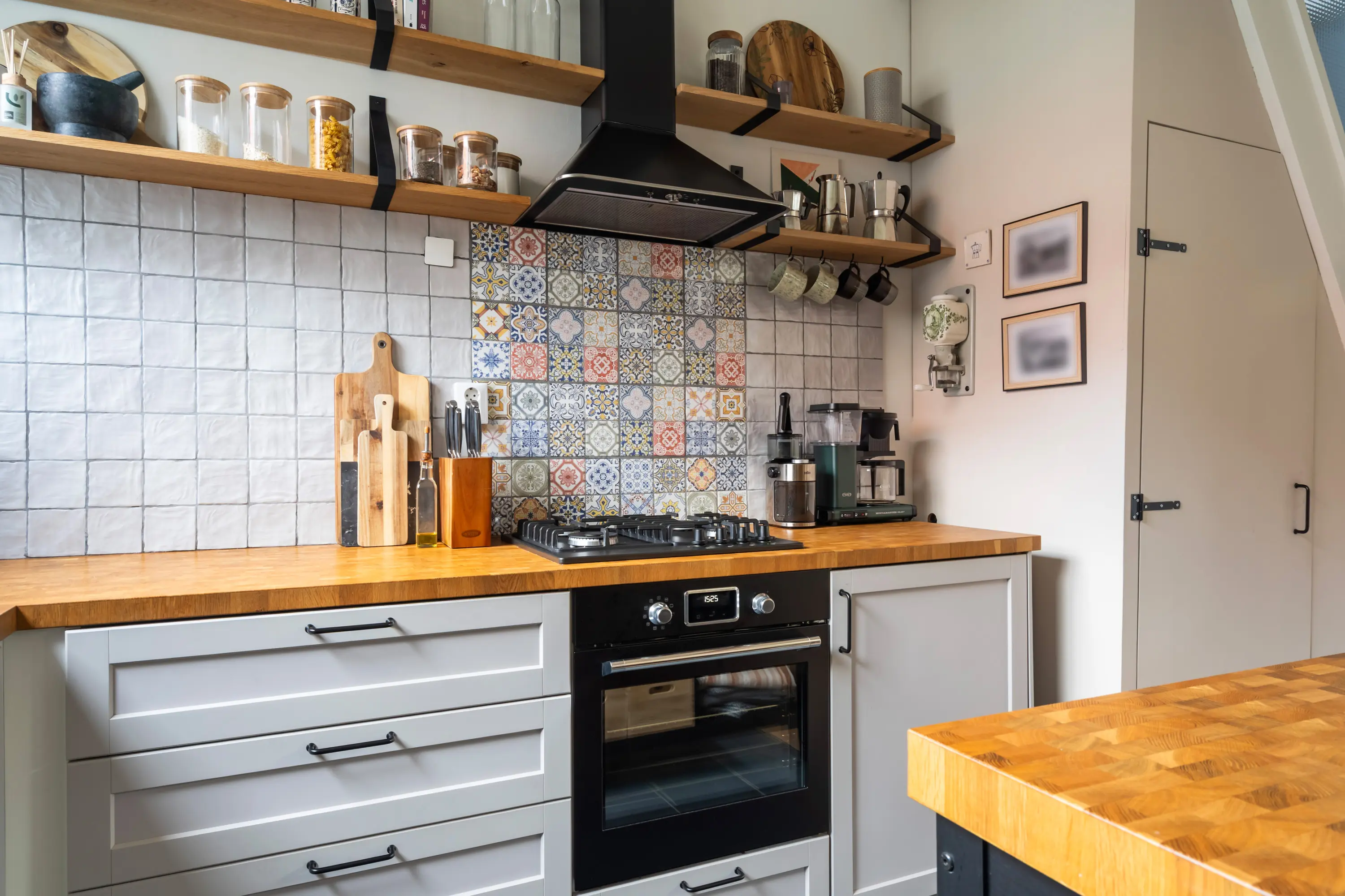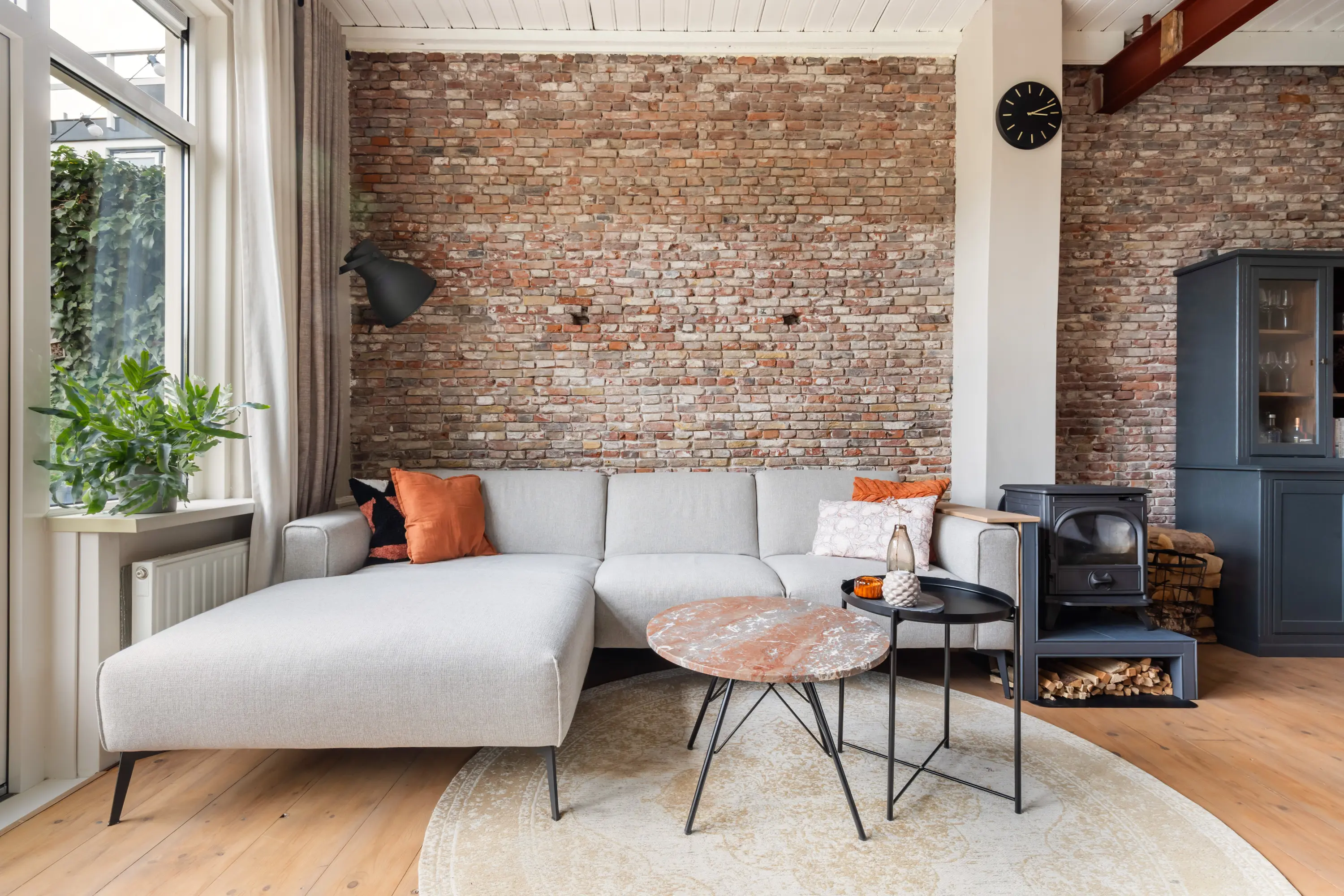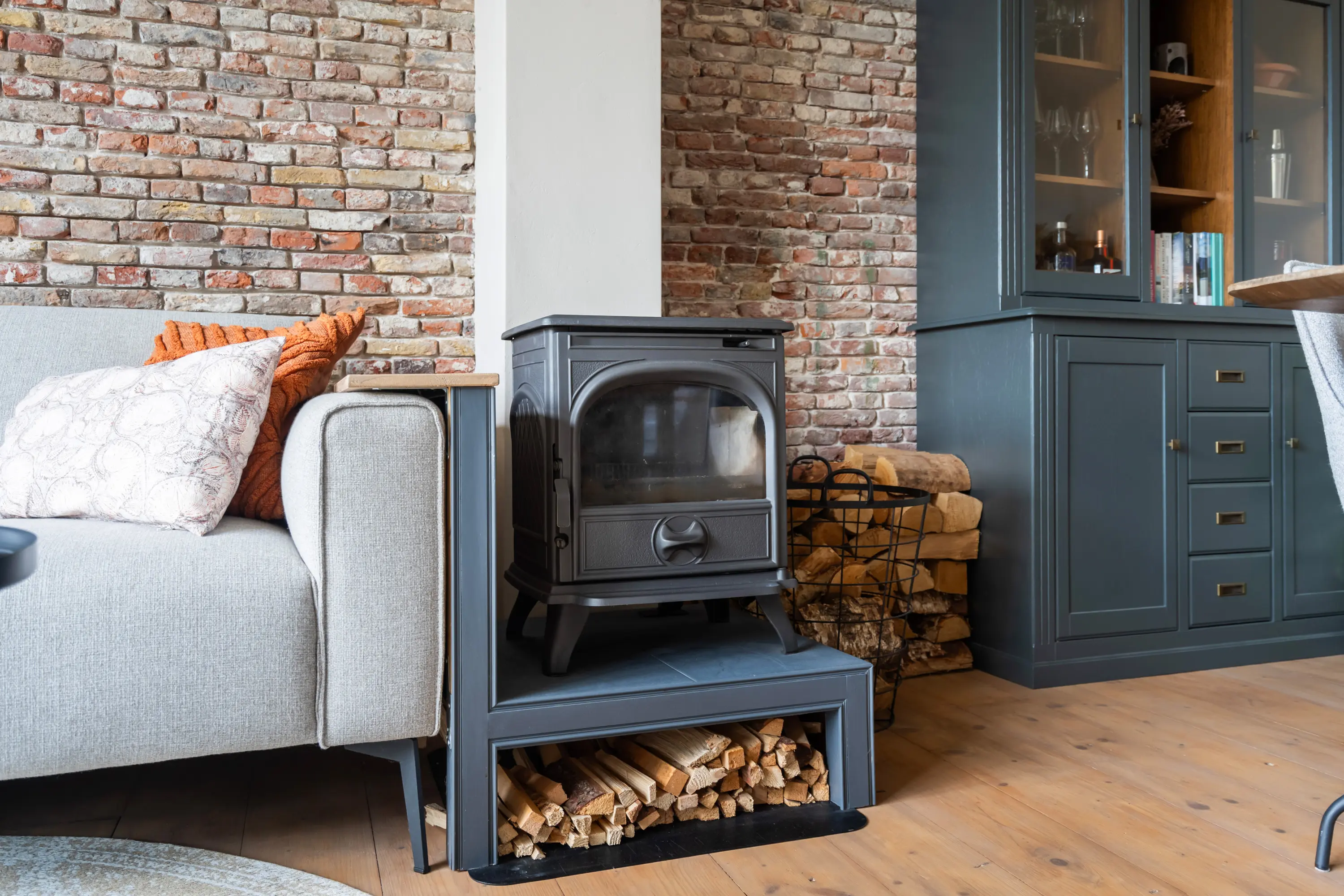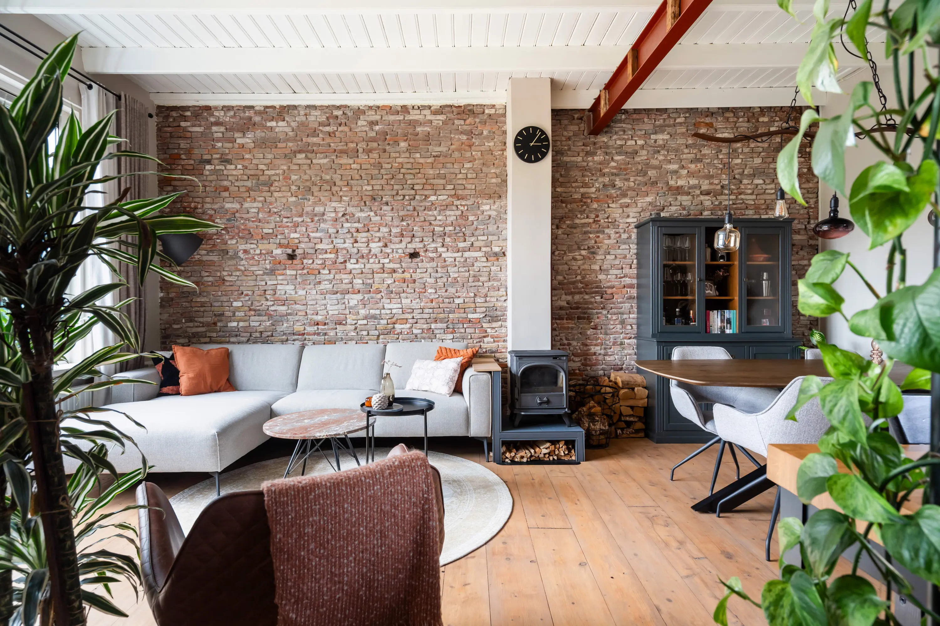 Via de entree kom je in de hal met toilet. De woonkamer ademt direct sfeer dankzij het fraaie metselwerk en de zichtbare balken. De open keuken (2019) sluit hier naadloos op aan en is uitgerust met alle gemakken: een 4-pits gasfornuis, oven, afzuigkap, vaatwasser en – ter overname – een koel-vriescombinatie. Onder de trap bevindt zich een praktische provisie- en meterkast. Vanuit de zithoek geniet je van het uitzicht op de voortuin en het rustige straatje, bereikbaar via openslaande deuren.