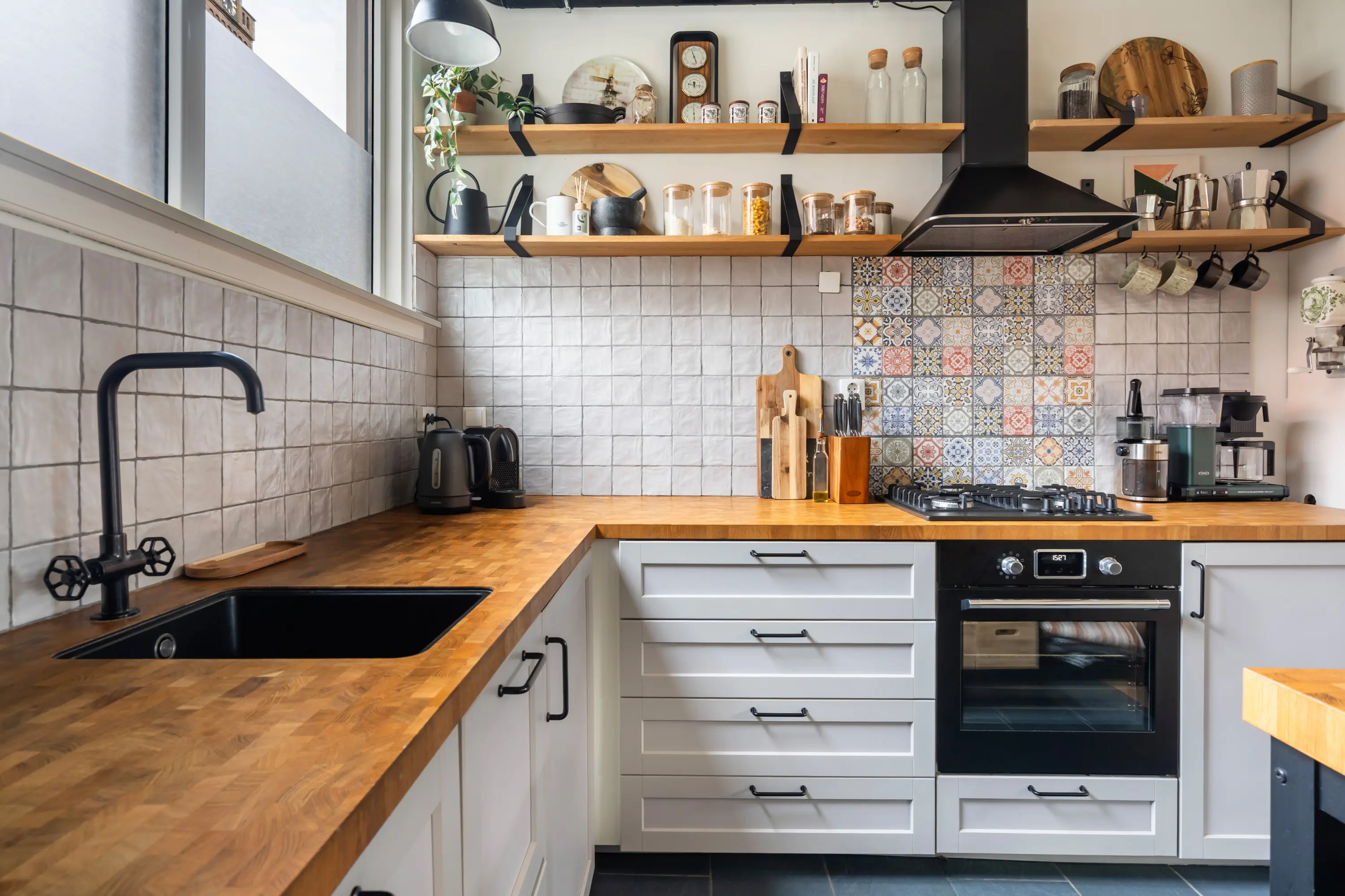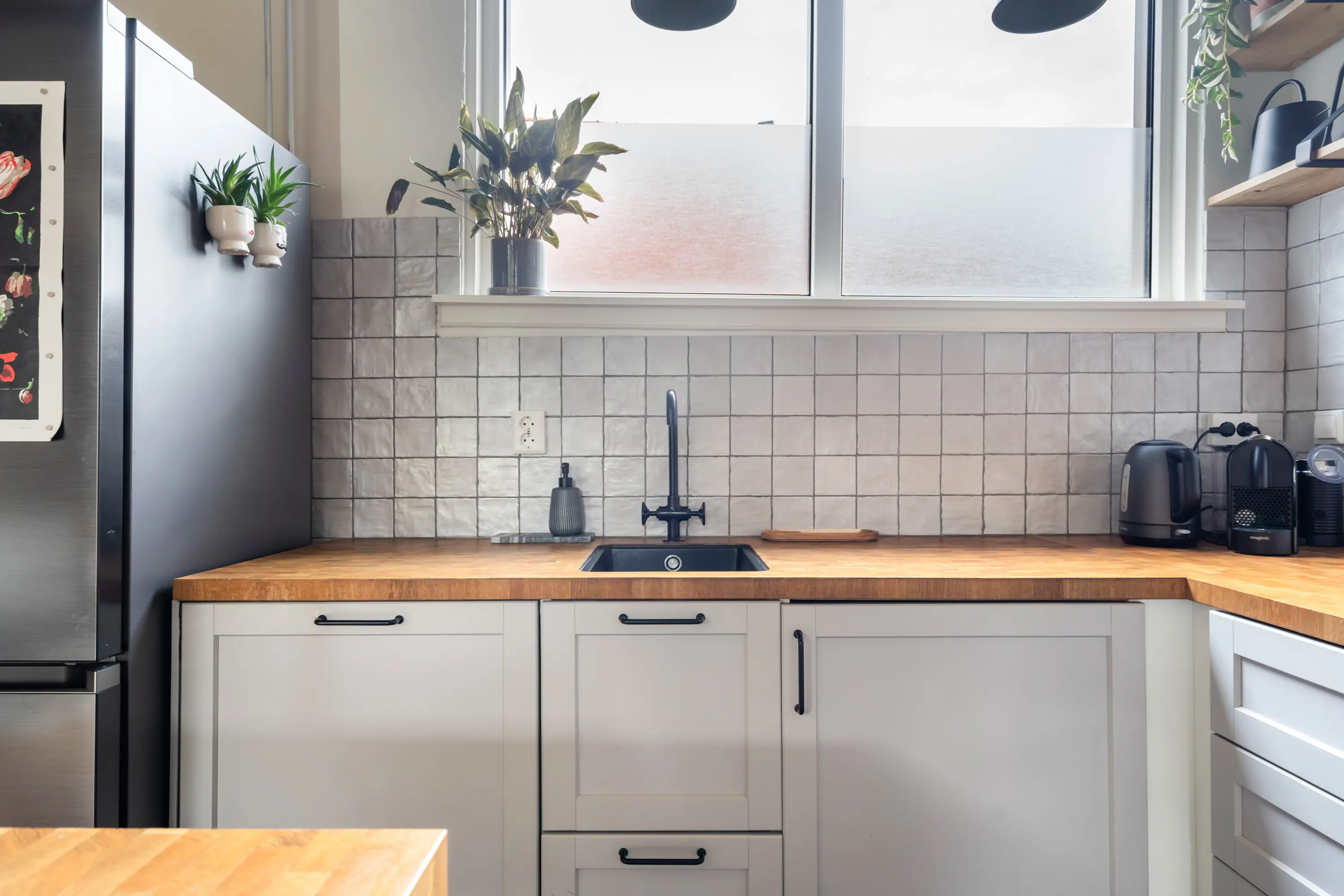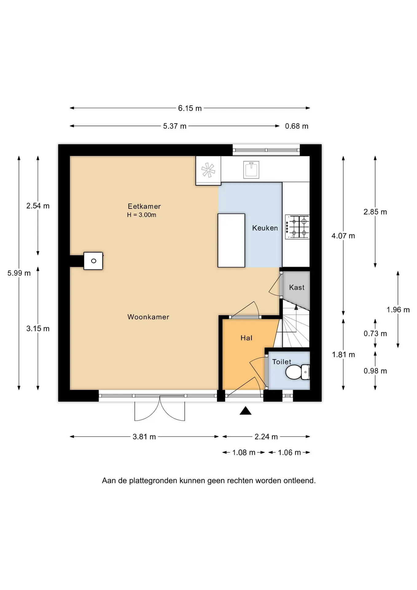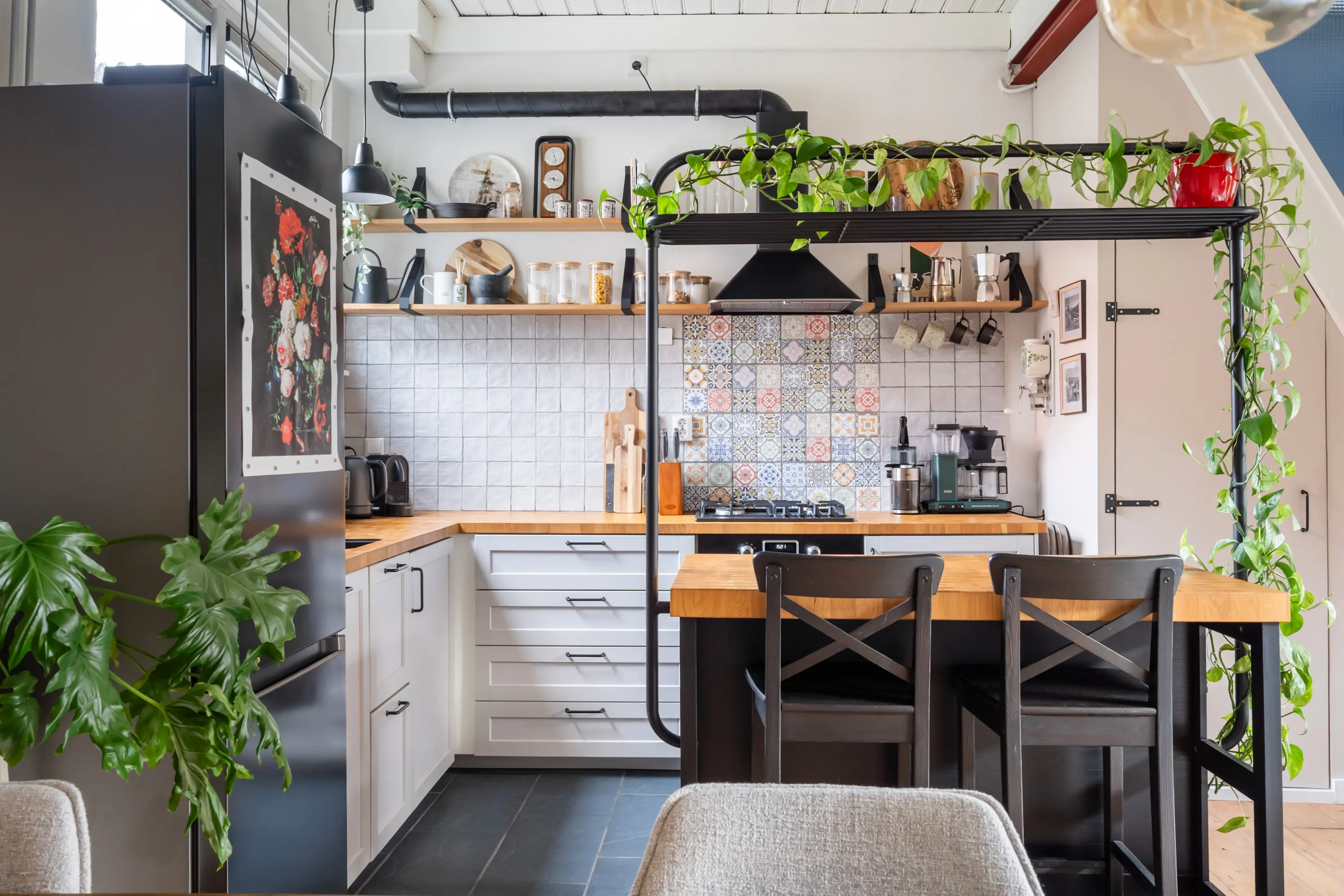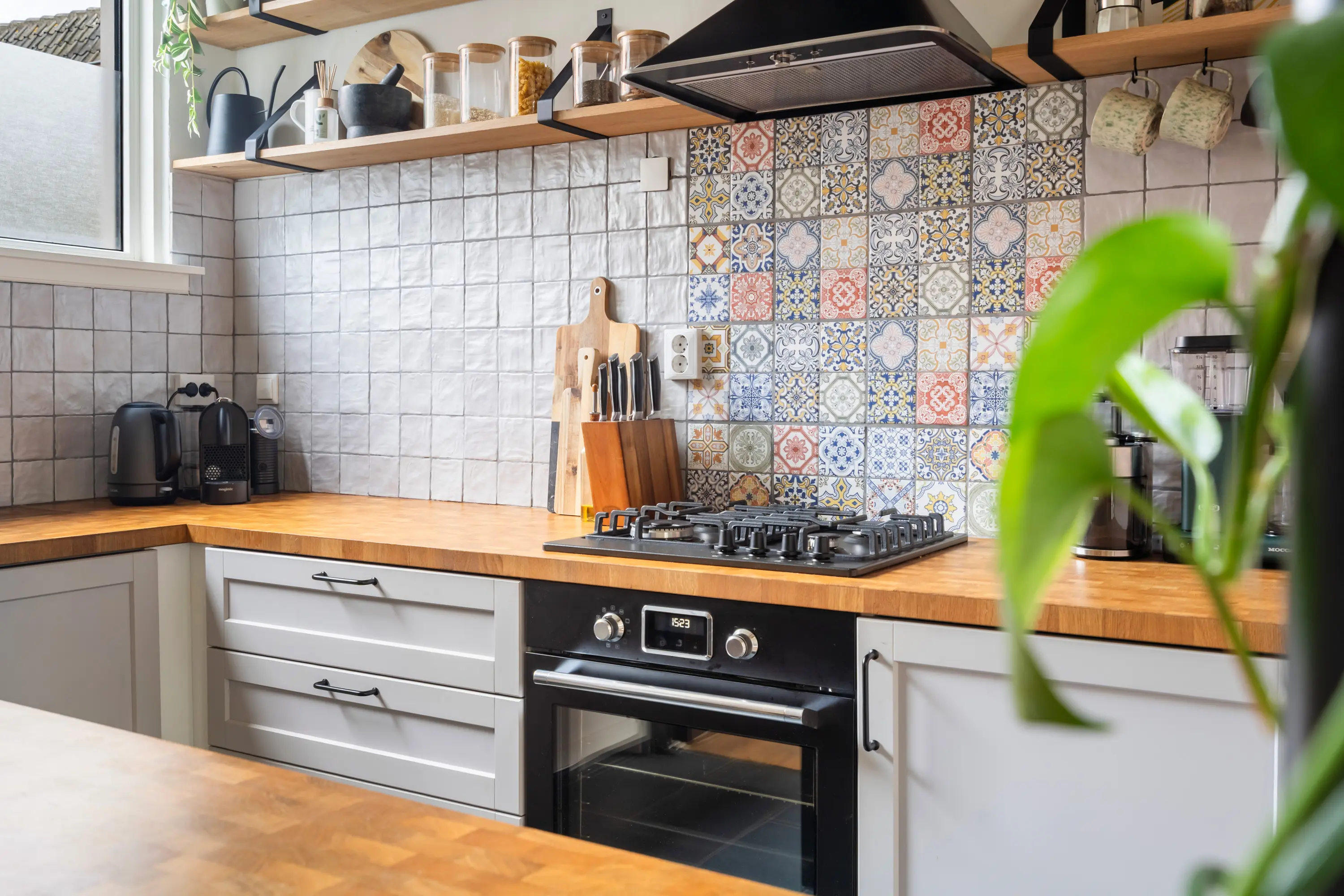 Via de entree kom je in de hal met toilet. De woonkamer ademt direct sfeer dankzij het fraaie metselwerk en de zichtbare balken. De open keuken (2019) sluit hier naadloos op aan en is uitgerust met alle gemakken: een 4-pits gasfornuis, oven, afzuigkap, vaatwasser en – ter overname – een koel-vriescombinatie. Onder de trap bevindt zich een praktische provisie- en meterkast. Vanuit de zithoek geniet je van het uitzicht op de voortuin en het rustige straatje, bereikbaar via openslaande deuren.
