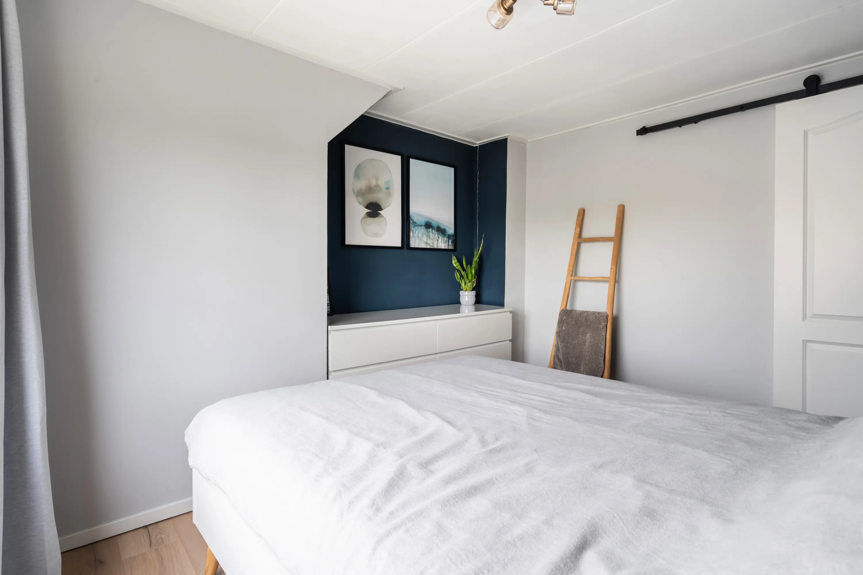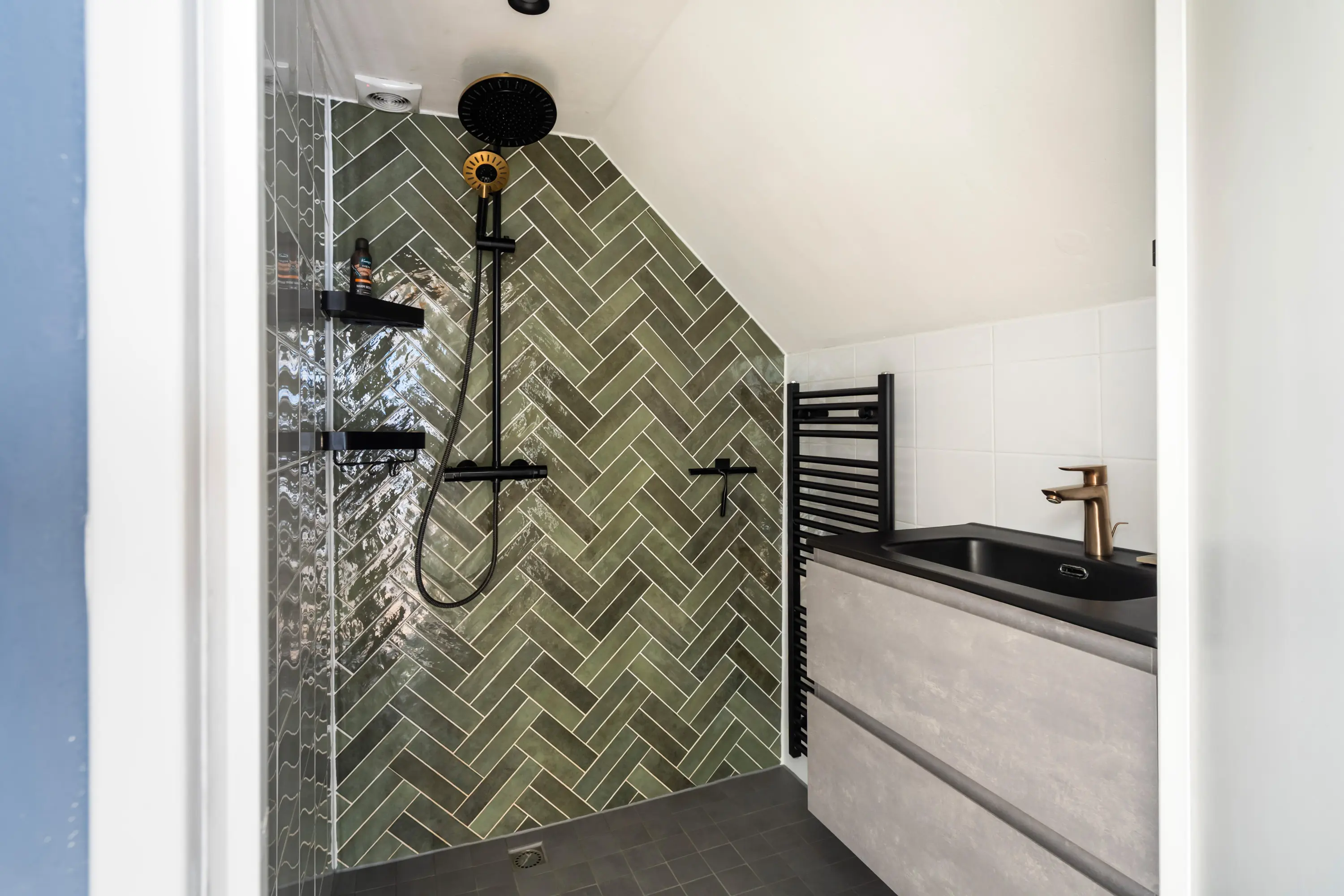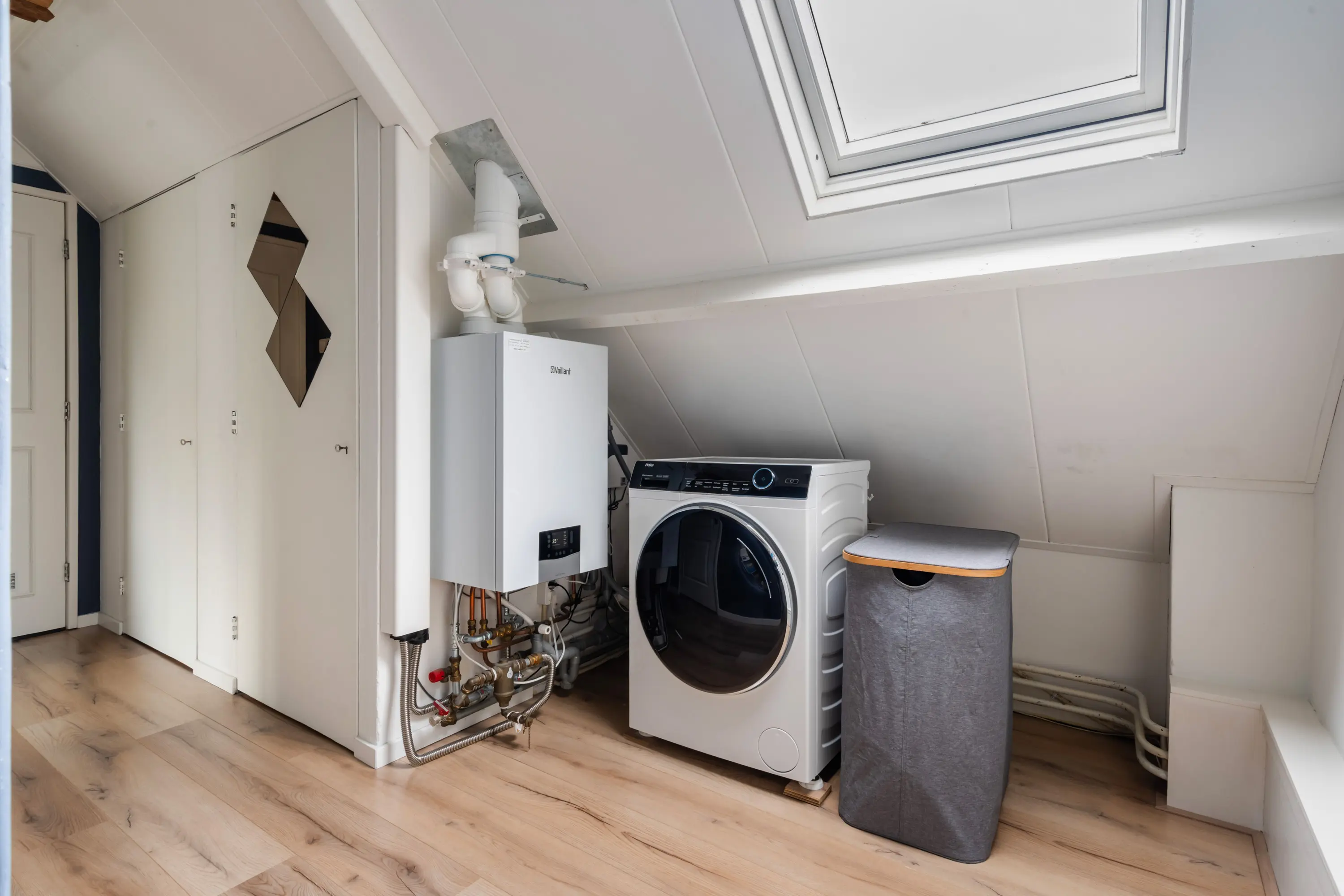 Op de overloop vind je de aansluiting voor de wasmachine en de opstelplaats voor de CV-ketel (2021). Daarnaast beschikt de woning over een hybride warmtepomp (2023) en zonnepanelen (2023). De moderne badkamer is voorzien van een inloopdouche, wastafelmeubel en handdoekradiator (2022). Aan de voorzijde liggen twee knusse slaapkamers, waarvan één met schuifdeur. Beide kamers hebben kunststof kozijnen. Boven de slaapkamers bevindt zich een handige bergzolder, bereikbaar via een losse trap.