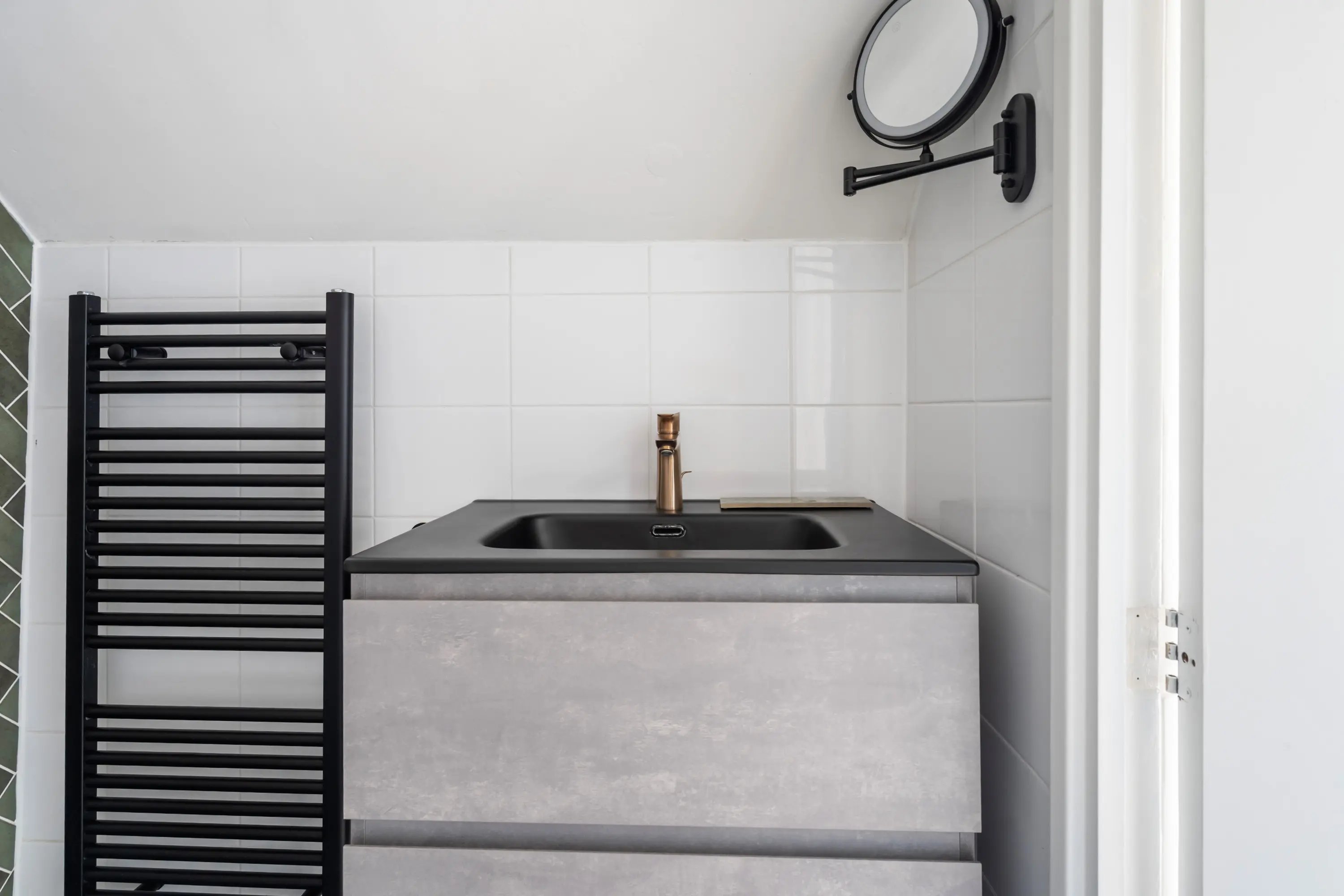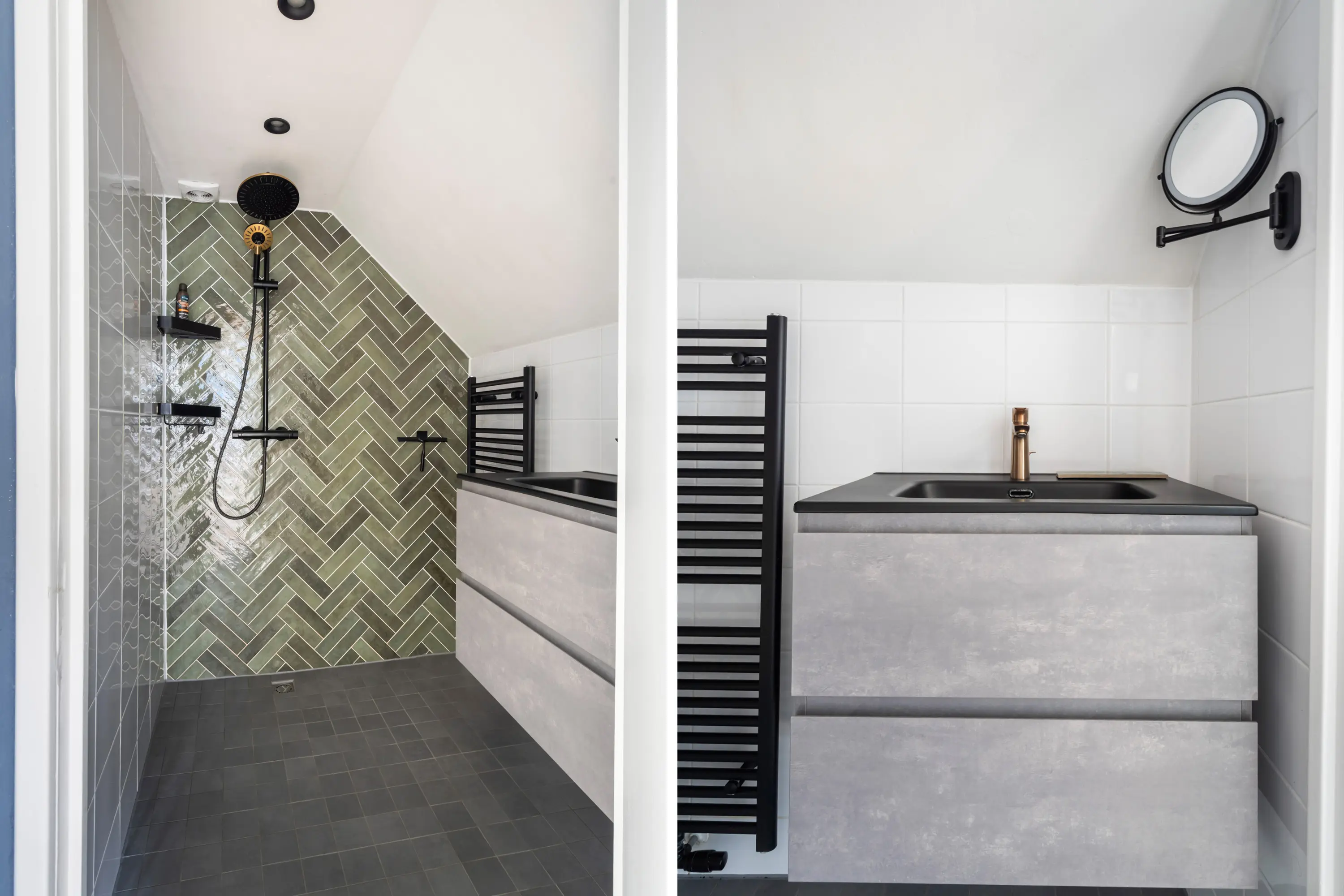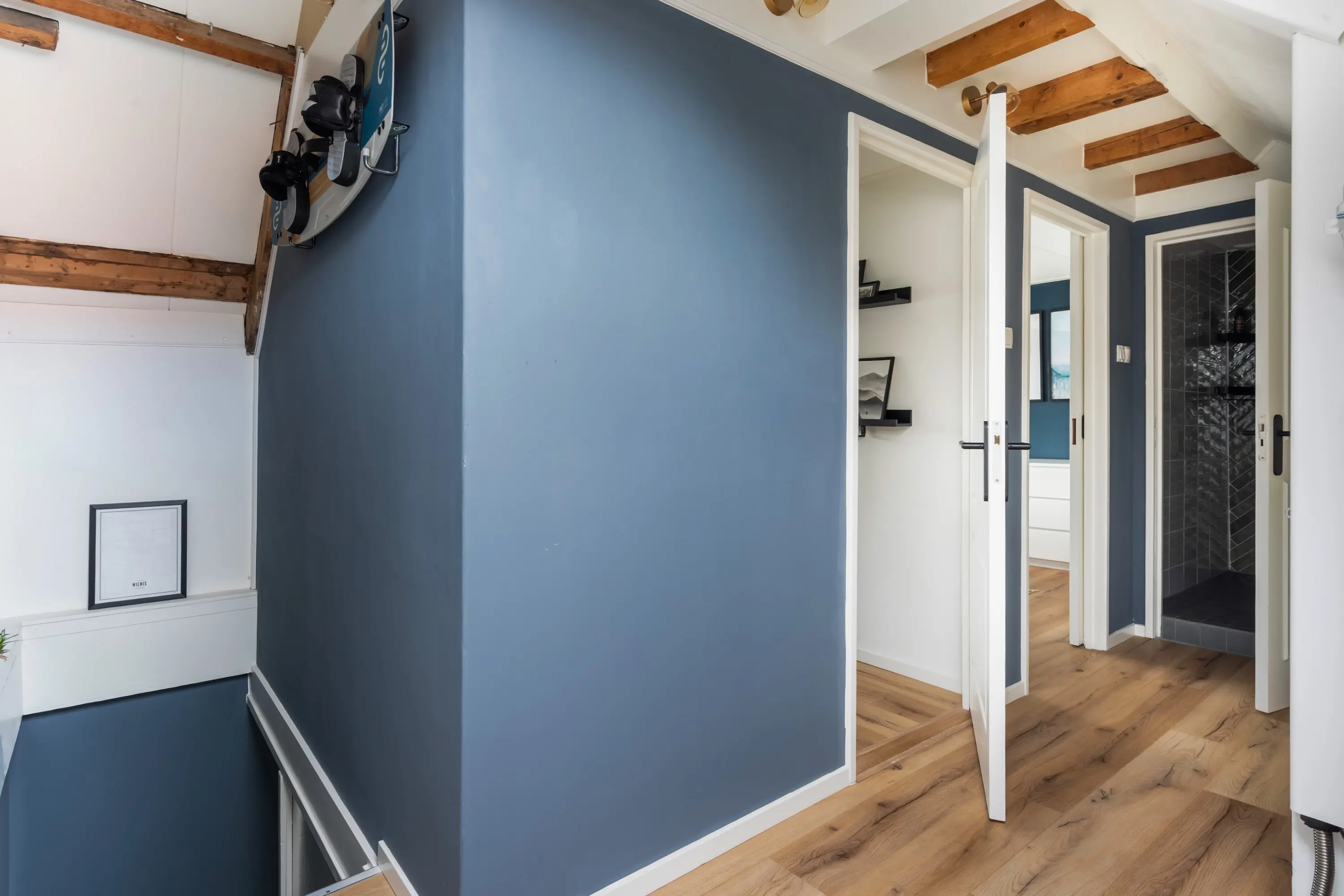 Op de overloop vind je de aansluiting voor de wasmachine en de opstelplaats voor de CV-ketel (2021). Daarnaast beschikt de woning over een hybride warmtepomp (2023) en zonnepanelen (2023). De moderne badkamer is voorzien van een inloopdouche, wastafelmeubel en handdoekradiator (2022). Aan de voorzijde liggen twee knusse slaapkamers, waarvan één met schuifdeur. Beide kamers hebben kunststof kozijnen. Boven de slaapkamers bevindt zich een handige bergzolder, bereikbaar via een losse trap.