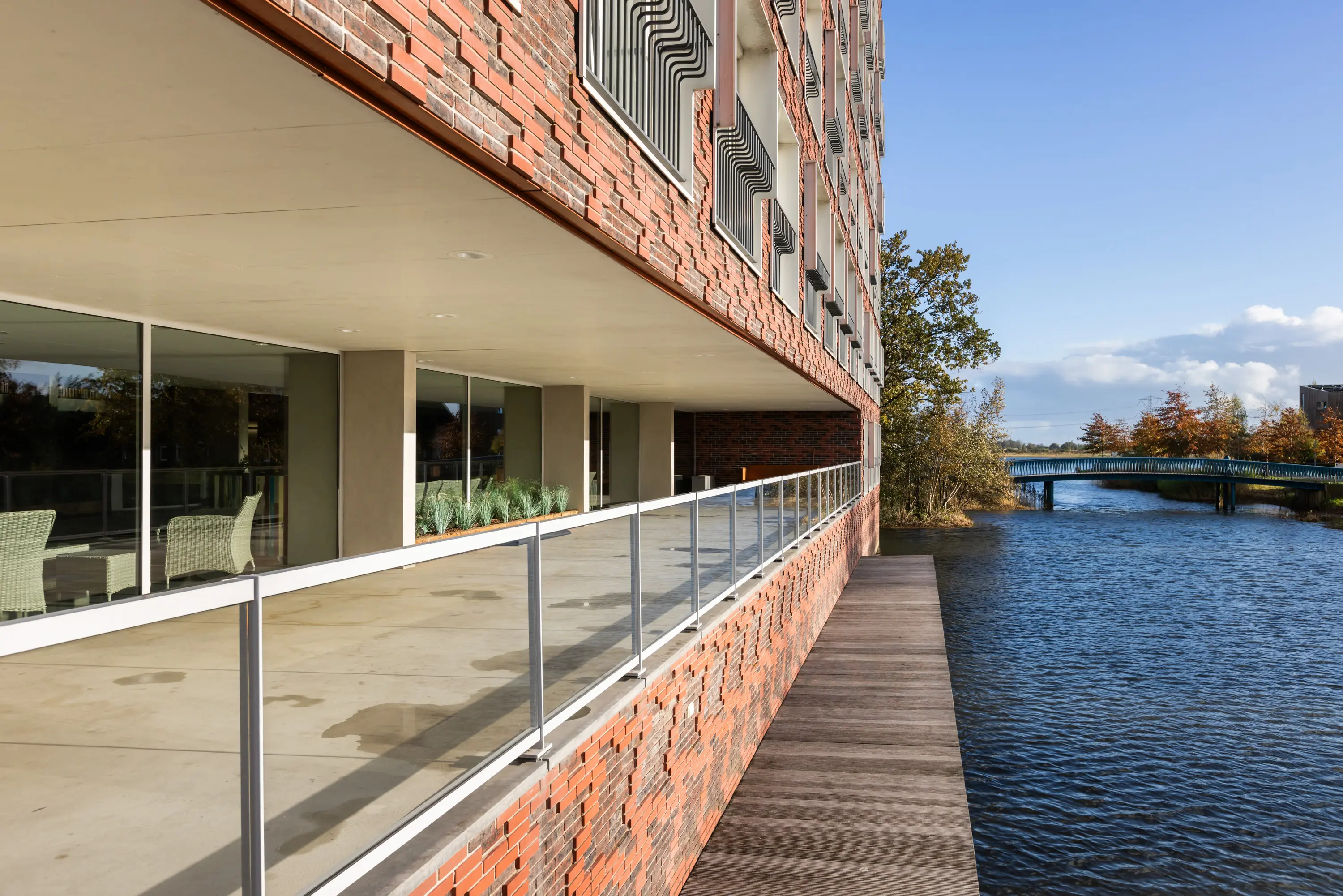 • Gezamenlijk (dak-) terras op de 3e en 5e verdieping en de vissteiger.