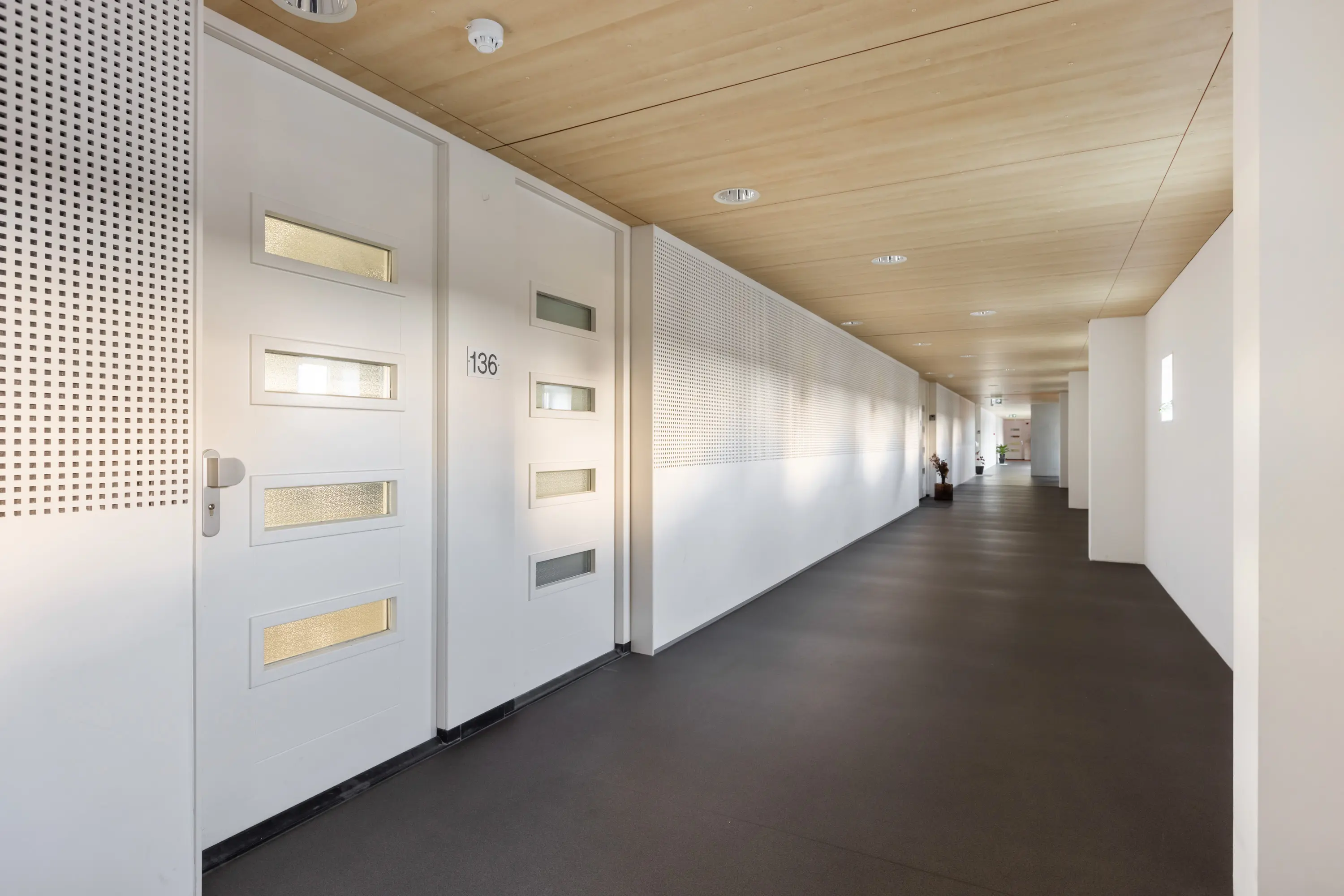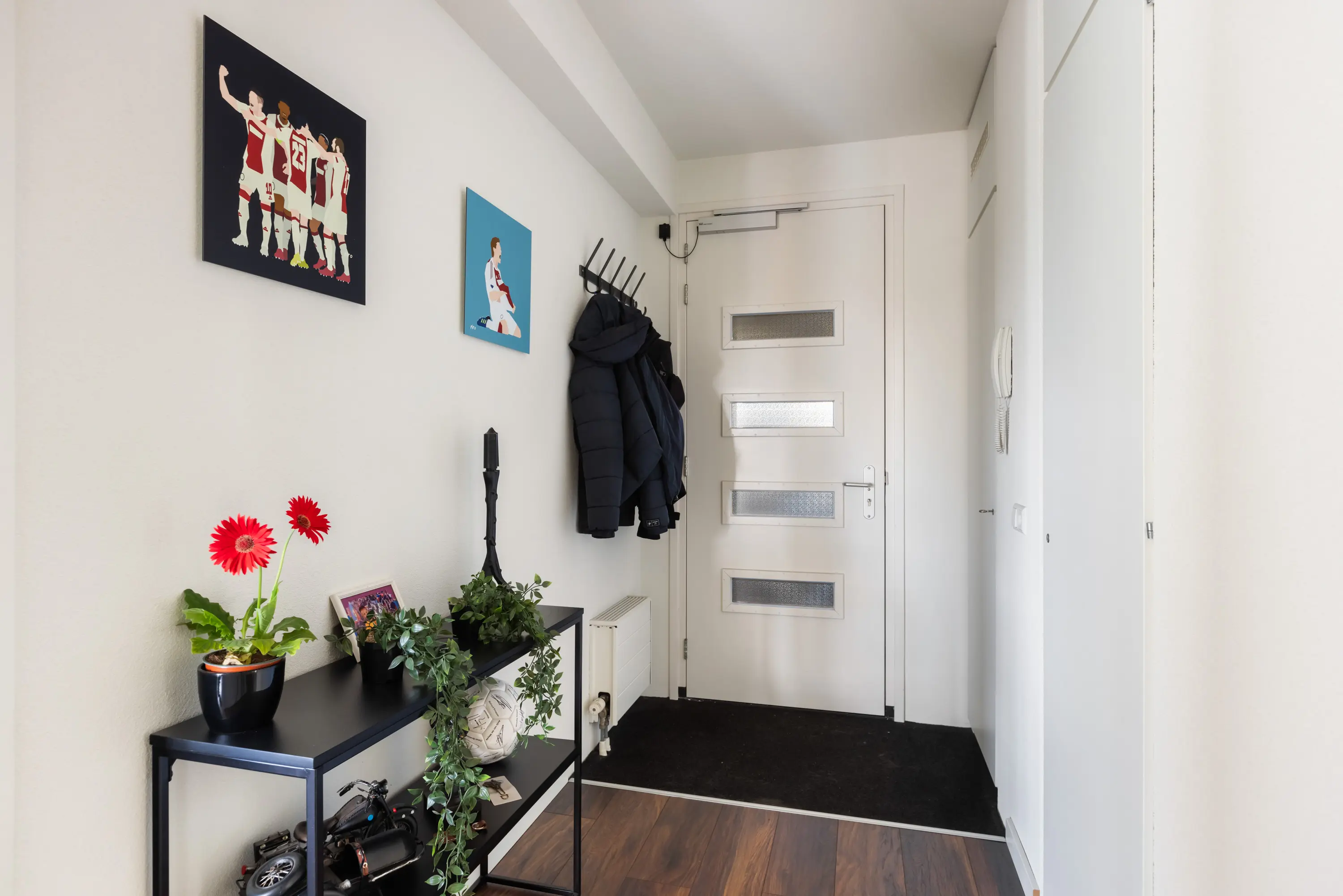 Via de interne overdekte galerij bereikt u de voordeur van het appartement.
