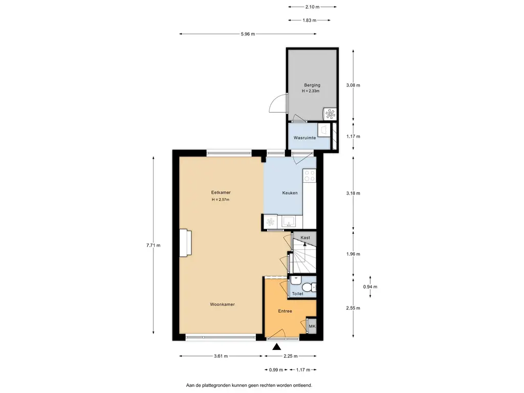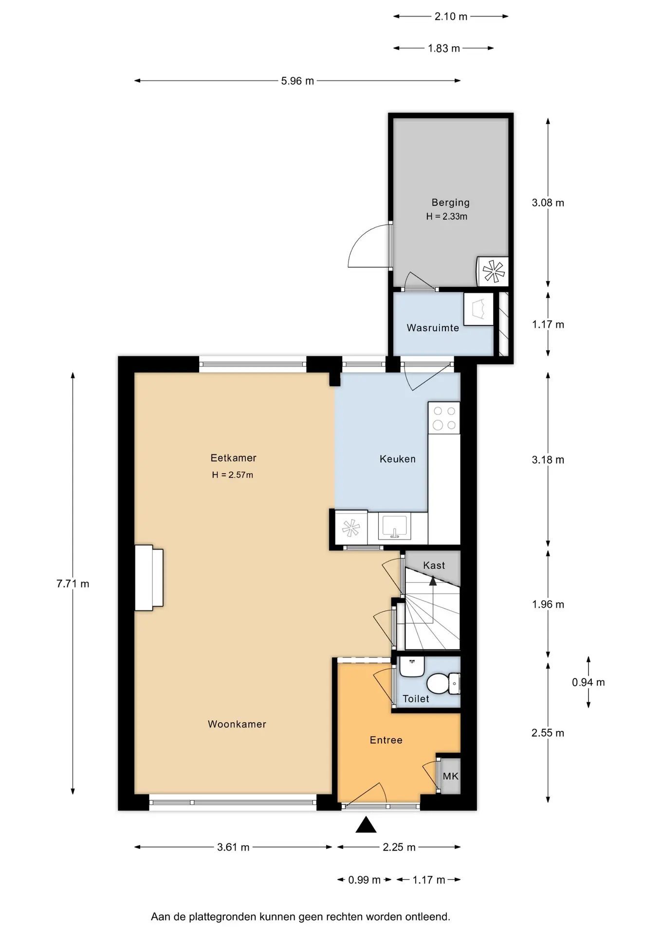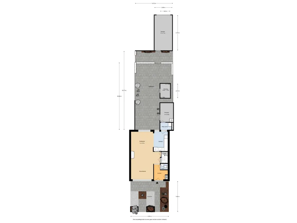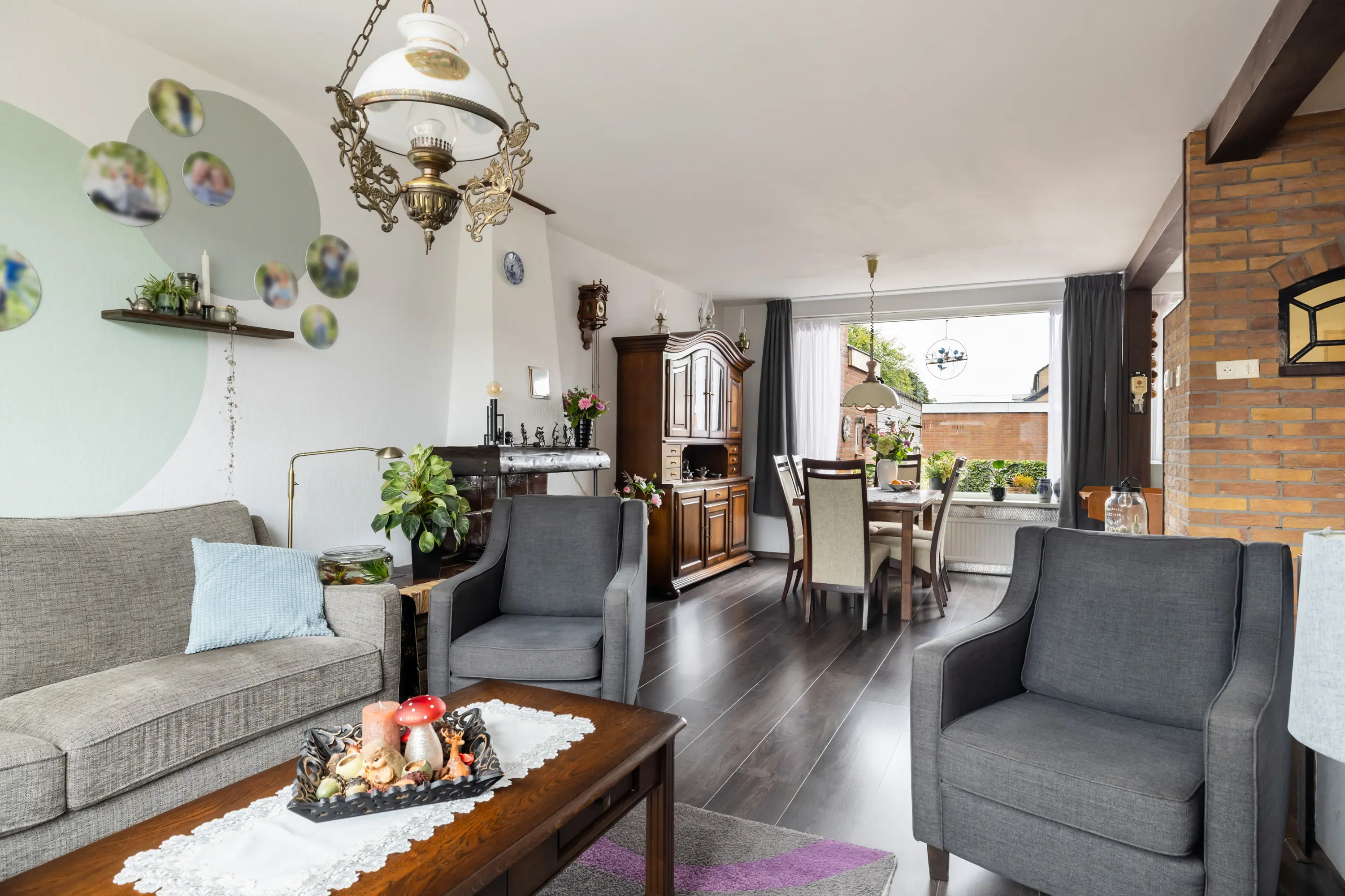 Aan de achterzijde bevindt zich de open keuken met afzuigkap en de toegang tot de berging. Via de berging stap je zo de zonnige achtertuin in, voorzien van een achterom.