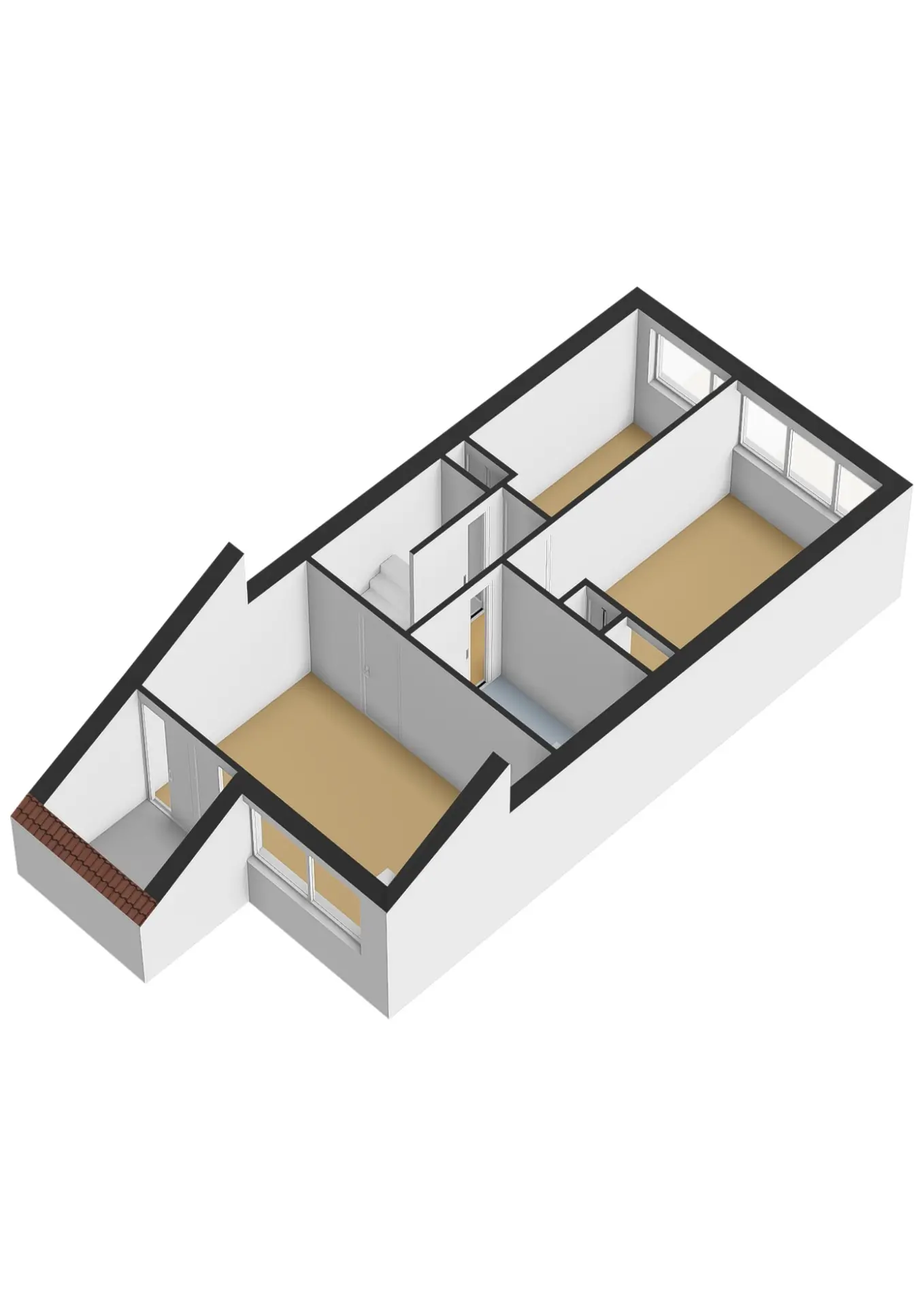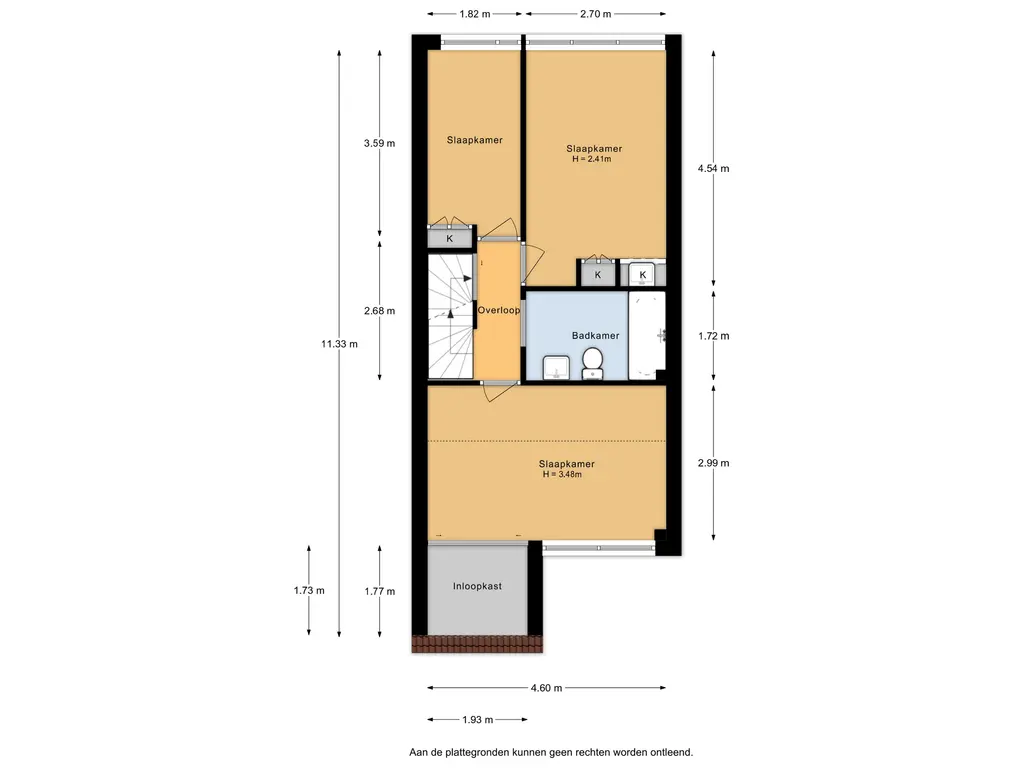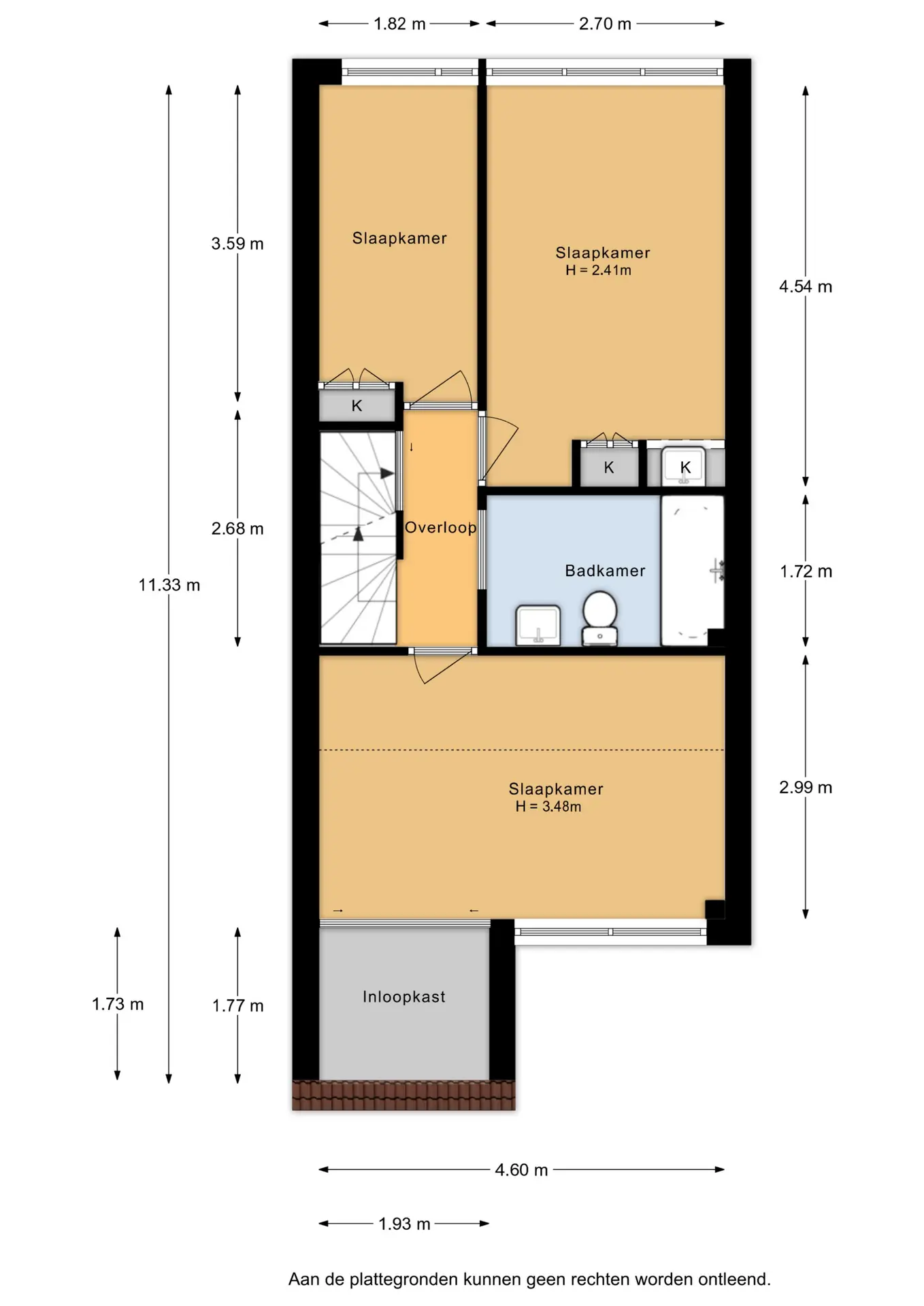 Hier vindt u drie slaapkamers en een volledig betegelde badkamer met ligbad, wastafel en toilet.